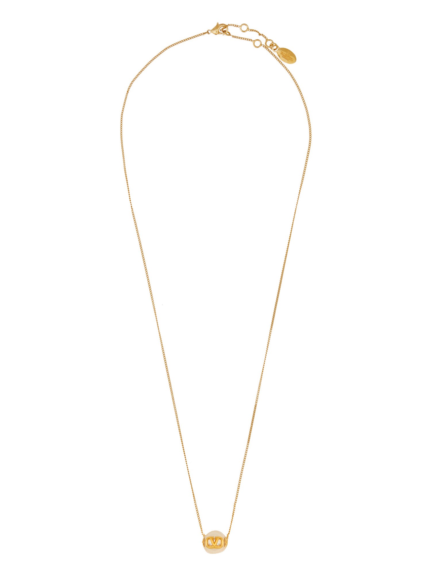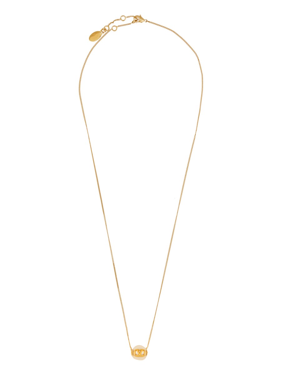 The Signature Logo Necklace from Valentino Garavani exemplifies luxury and sophistication, featuring a distinctive design that showcases the iconic Valentino logo. Crafted with high-quality materials, this necklace adds a touch of elegance to any outfit, making it a perfect accessory for both casual and formal occasions. Its adjustable chain ensures a comfortable fit, while the polished finish enhances its visual appeal, making it a must-have piece for fashion enthusiasts.