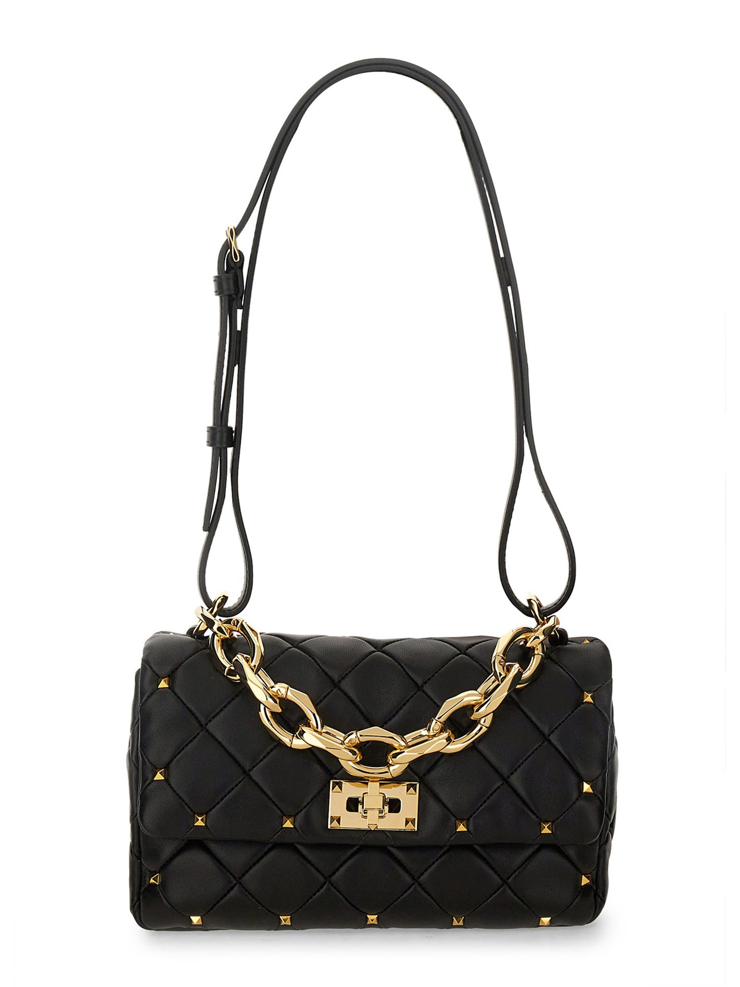 The Rockstud Spike Shoulder Bag Small from Valentino Garavani epitomizes luxury and sophistication, featuring a striking design adorned with the brand's signature pyramid studs. Crafted from premium leather, this bag combines elegance with a contemporary edge, making it a versatile accessory for any occasion. Its compact size is perfect for carrying essentials, while the adjustable chain strap allows for effortless styling, whether worn on the shoulder or crossbody. This exquisite piece is a testament to Valentino's commitment to quality and timeless fashion.
