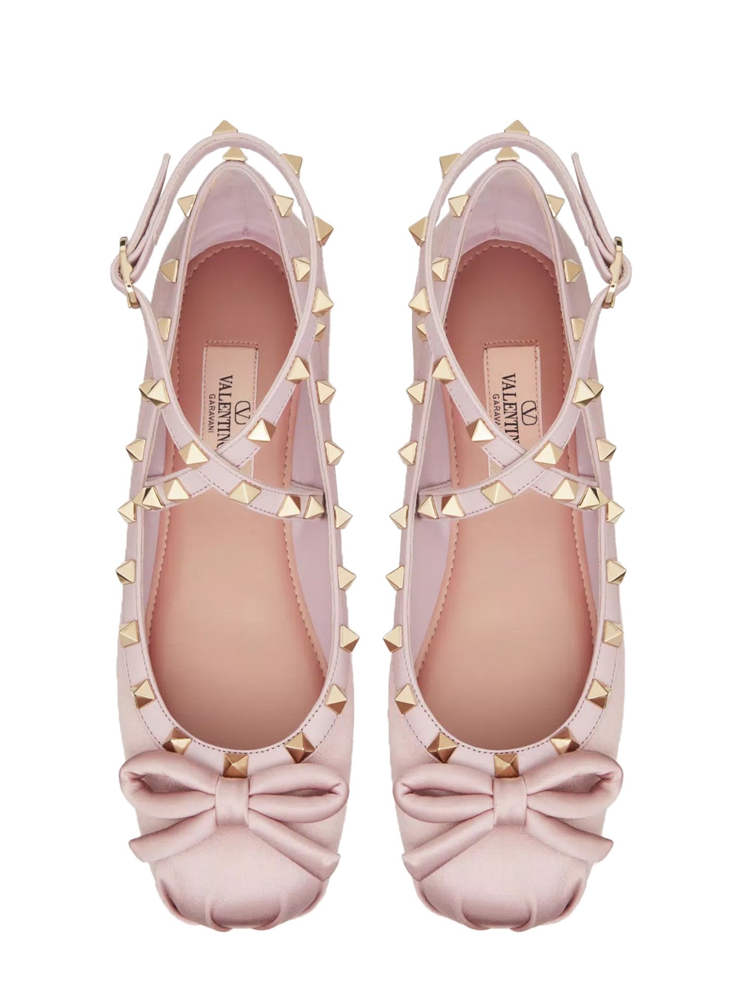 Experience the epitome of elegance with the Satin "Rockstud" Ballerina from Valentino Garavani. This exquisite footwear combines luxurious satin with the iconic Rockstud detailing, offering a sophisticated yet edgy aesthetic. The soft, supple material ensures a comfortable fit, while the signature studs add a touch of boldness to your ensemble. Perfect for both casual outings and formal occasions, these ballerinas are a versatile addition to any wardrobe, elevating your style with every step. Indulge in timeless fashion and make a statement with Valentino Garavani's Satin "Rockstud" Ballerina.