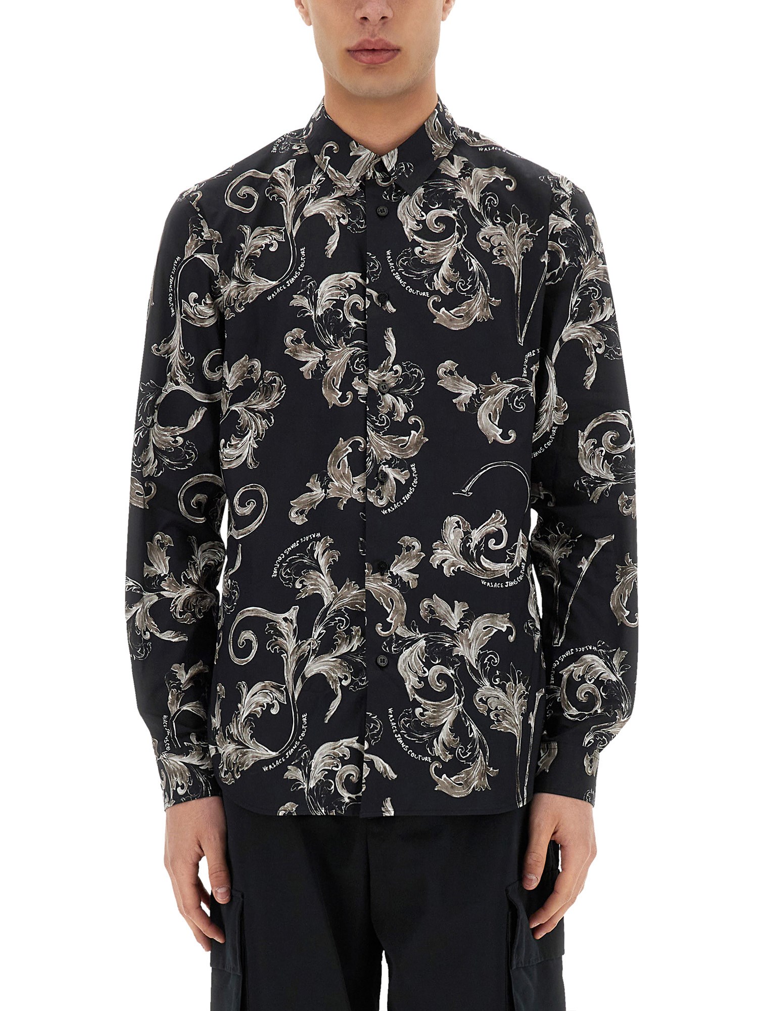 Elevate your wardrobe with the Baroque Outline Print Shirt from Versace Jeans Couture, a stunning piece that embodies luxury and sophistication. Crafted from high-quality materials, this shirt features an intricate baroque outline print that adds a touch of opulence to any outfit. Its tailored fit ensures a flattering silhouette, while the versatile design makes it perfect for both casual and formal occasions. Make a bold statement and showcase your unique style with this exquisite shirt that seamlessly blends classic artistry with modern fashion.
