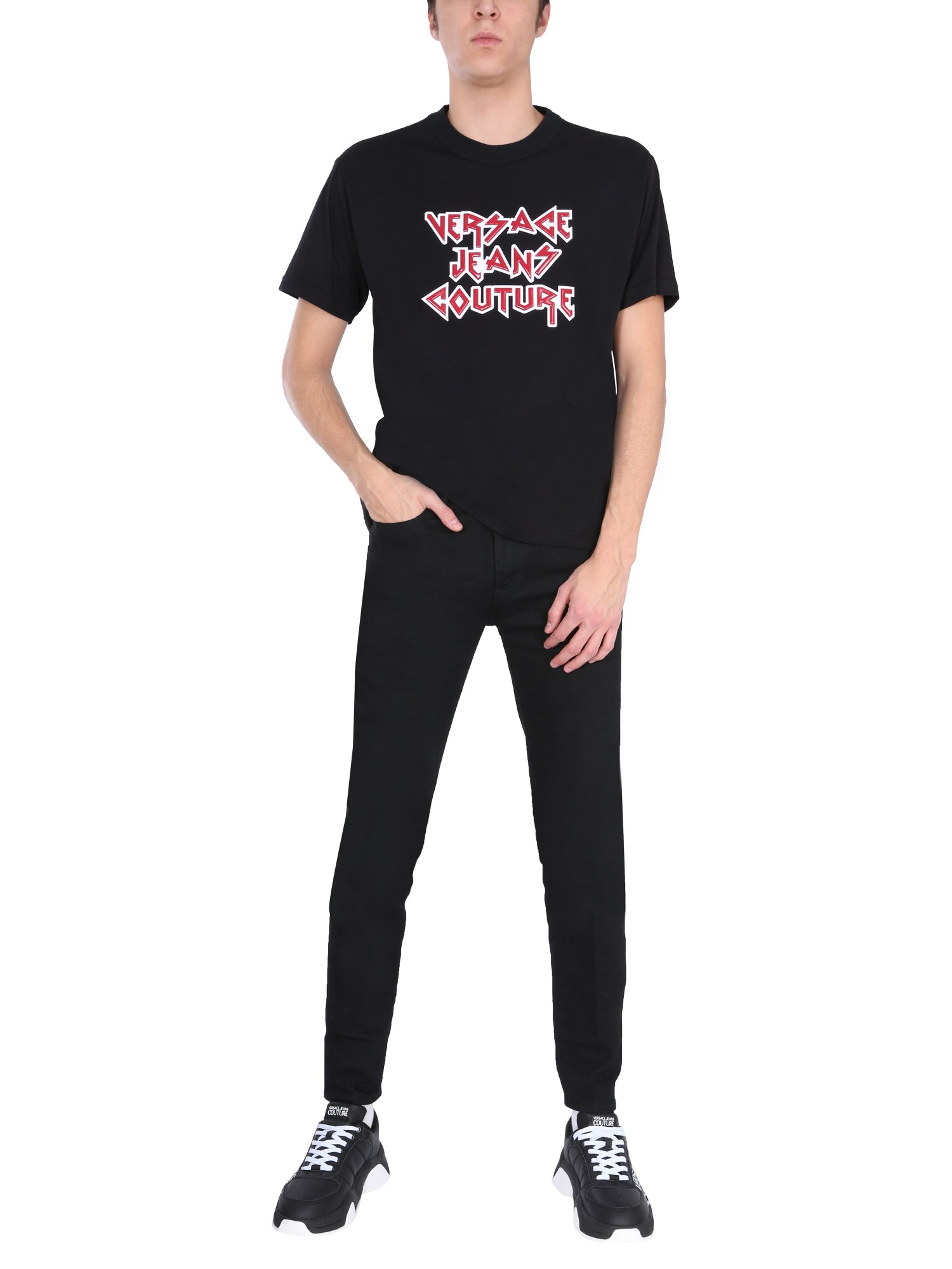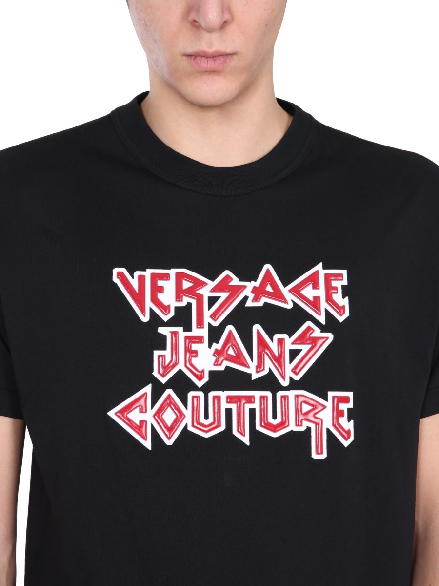 The cotton T-shirt from the Versace Jeans Couture will become your all-time favourite The shirt features a classic rock logo that makes the shirt look stylish and cool. The shirt is made of 100% cotton and can be worn as a shirt. The crew neck T-shirt flaunts a regular fit and is perfect for the summer days.