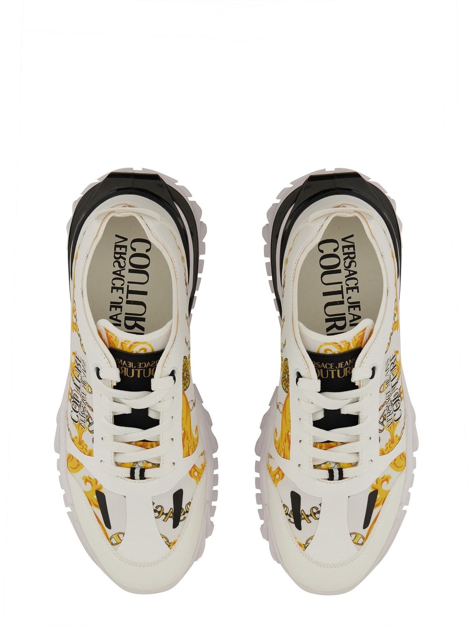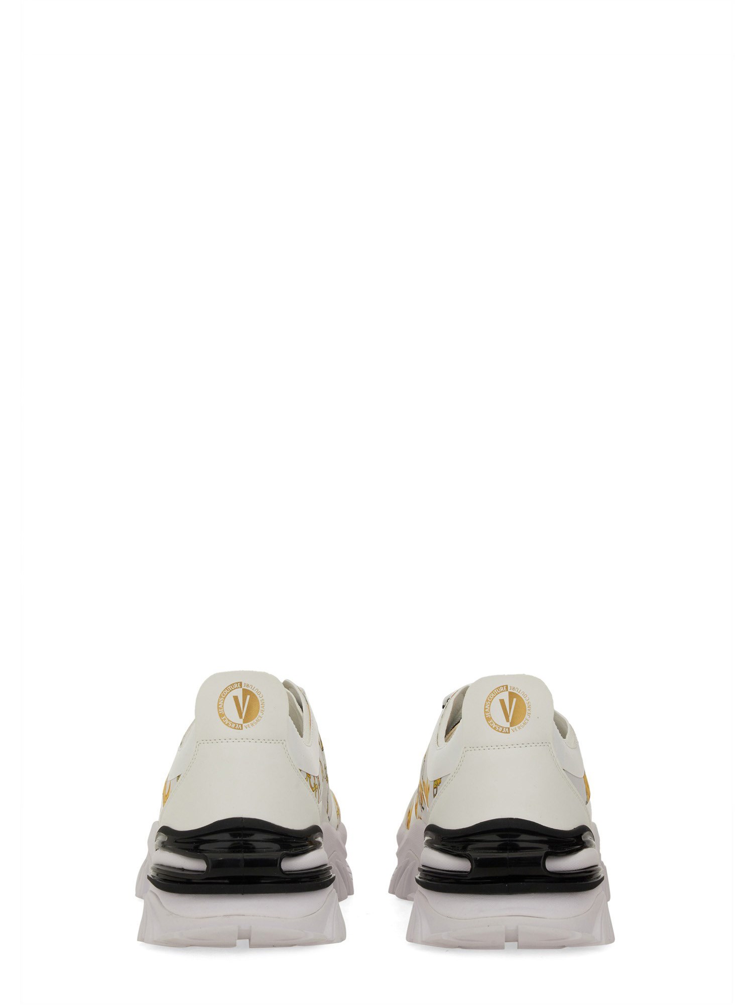 The Versace Jeans Couture sneaker features a distinctive logo design, embodying the brand's signature style and luxury. Crafted with high-quality materials, this sneaker offers both comfort and durability, making it an ideal choice for fashion-forward individuals. Its contemporary silhouette is complemented by bold branding, ensuring a statement look that seamlessly integrates into any wardrobe. Perfect for casual outings or elevating everyday attire, this sneaker is a must-have for those who appreciate elegance and modernity in their footwear.