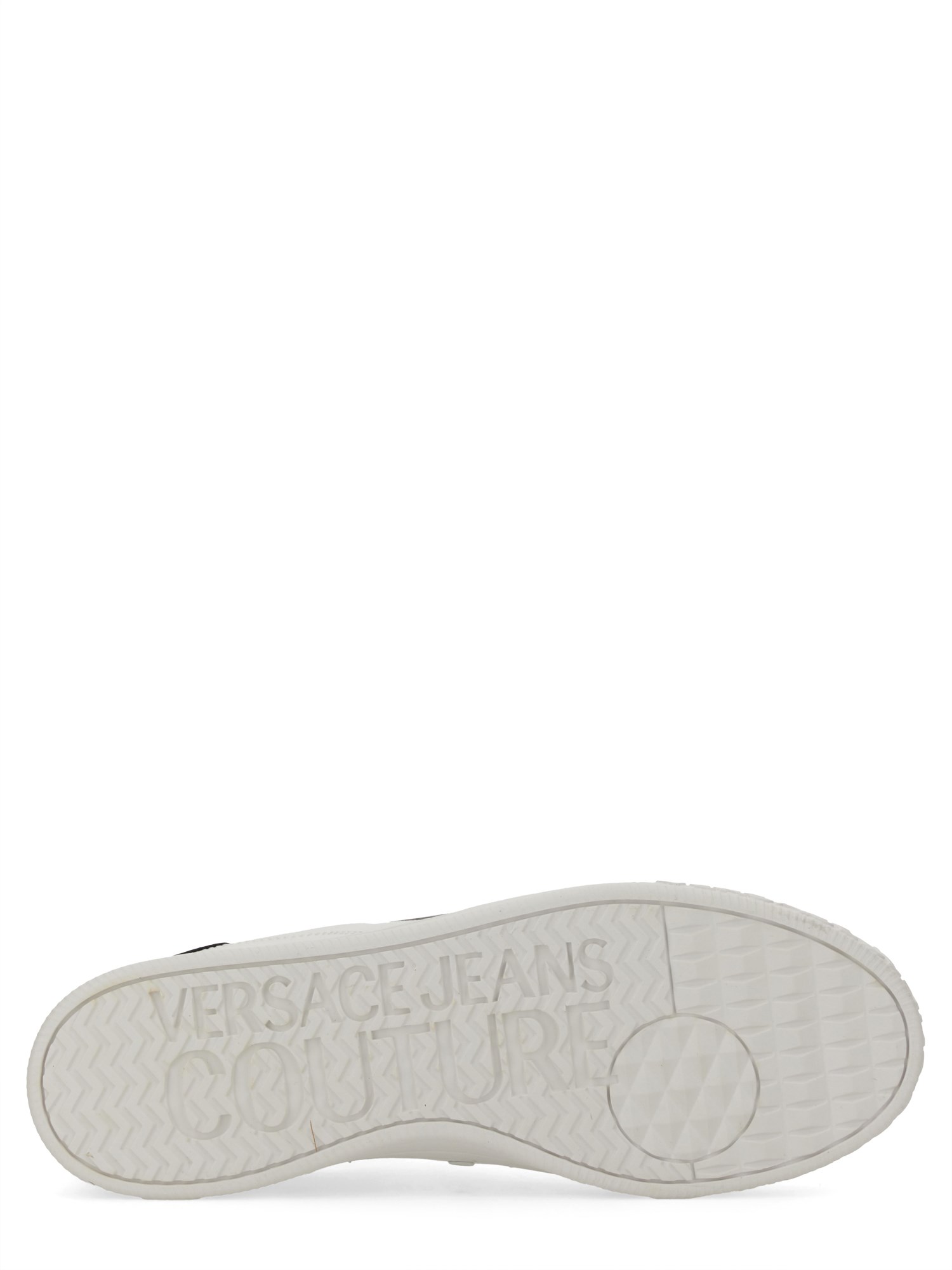 Elevate your footwear collection with the exquisite Leather Sneaker from Versace Jeans Couture. Crafted from premium leather, this sneaker combines luxury and comfort, featuring a sleek design that effortlessly complements both casual and sophisticated outfits. The iconic Versace branding adds a touch of elegance, while the cushioned insole ensures all-day wearability. Step into style and make a statement with these must-have sneakers that redefine modern fashion.