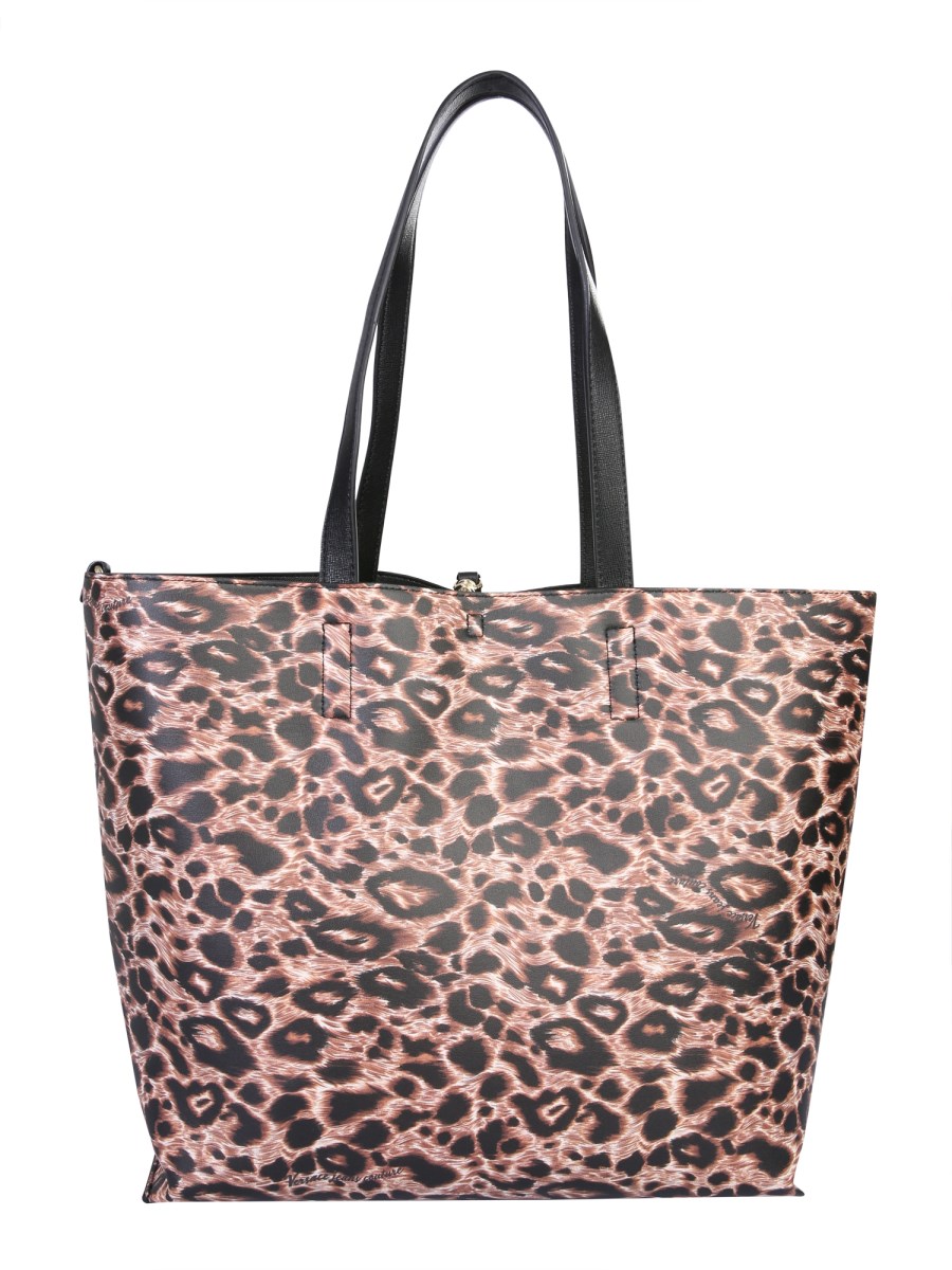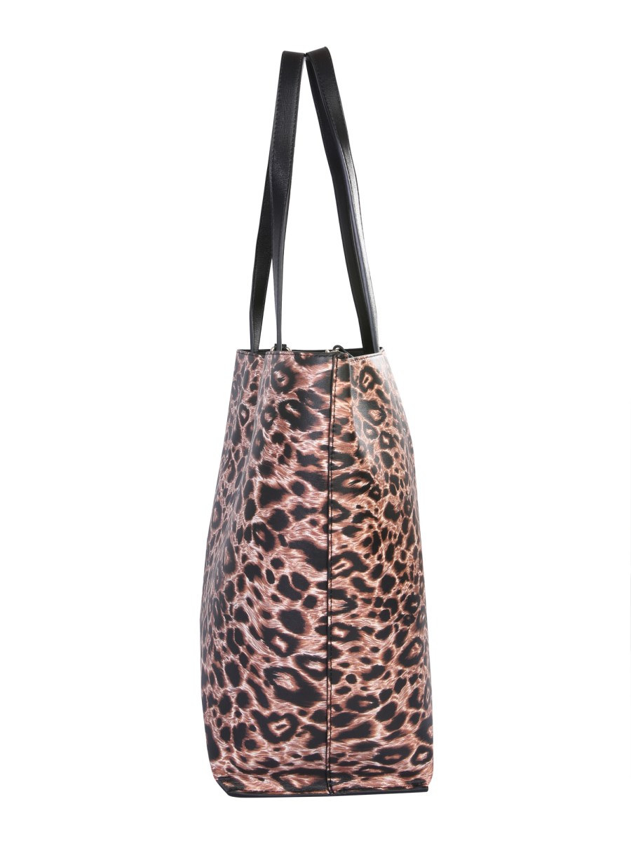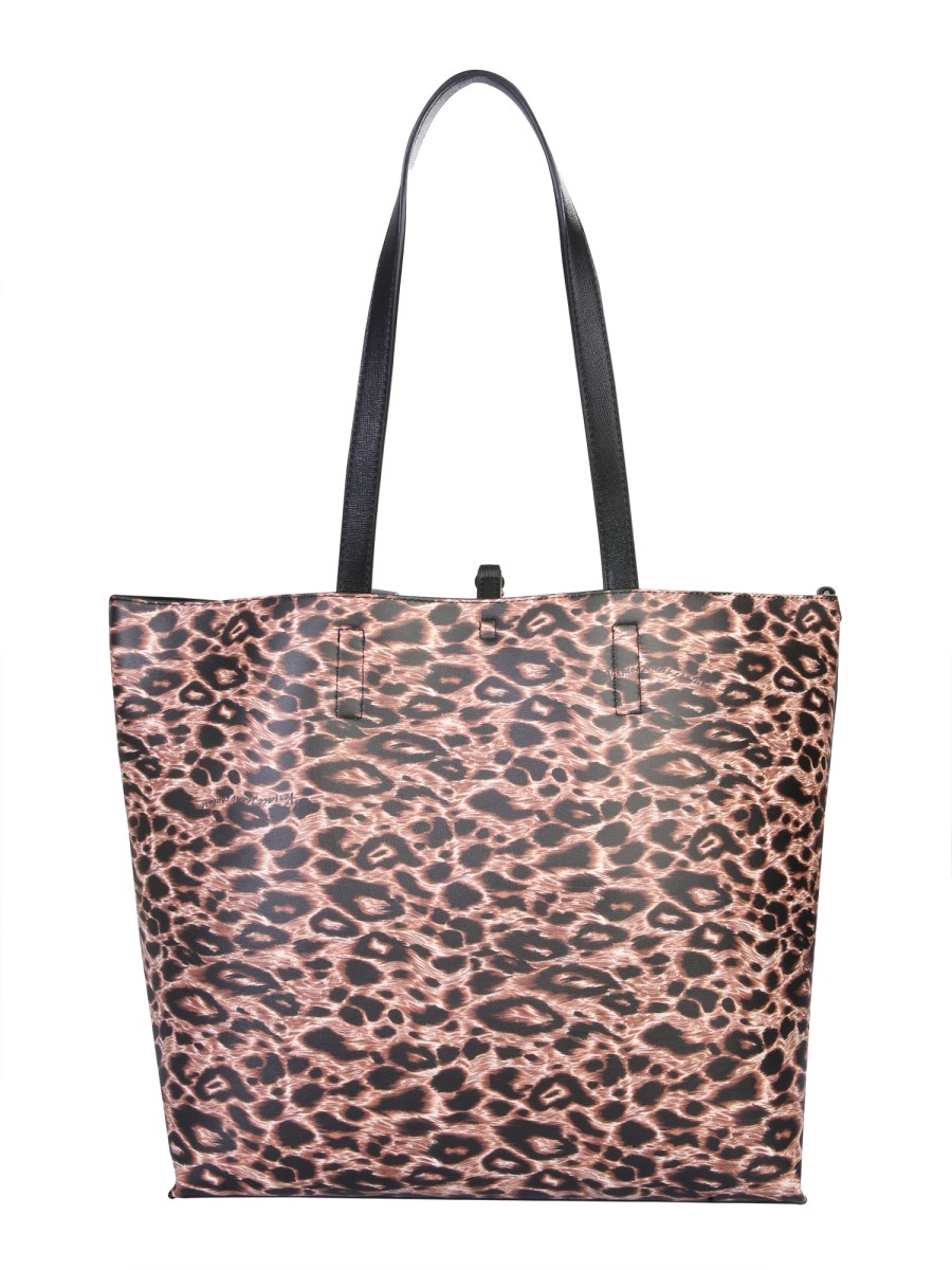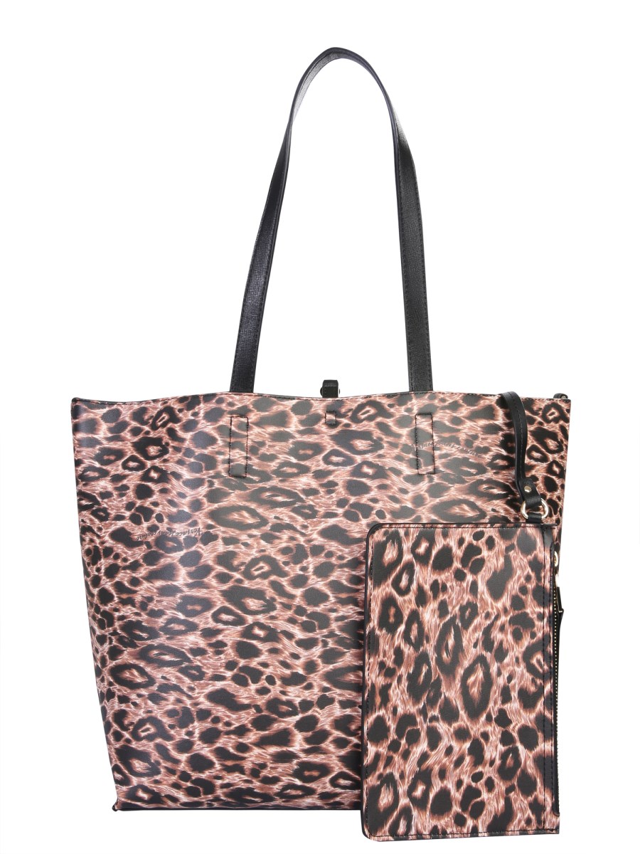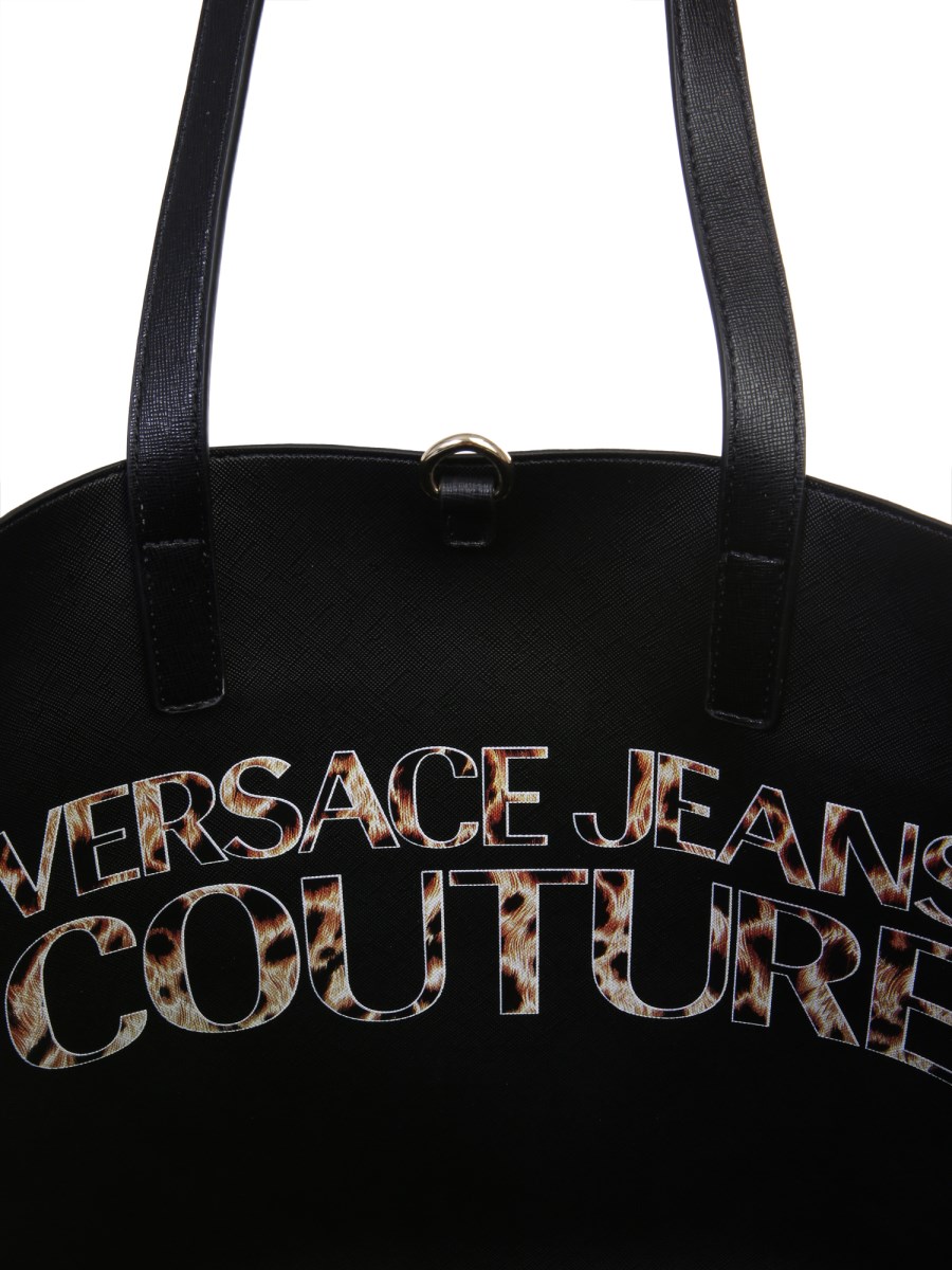Featuring an exquisite animal print throughout, the Versace Toe Couture Reversible Tote Bag has a striking appeal. This tote-style bag has a double handle along with buckle closure. It has an iconic logo in the front and metal accessories in gold finish. It includes an inner clutch with a sturdy zip. Use of polyurethane material makes it durable and lightweight.