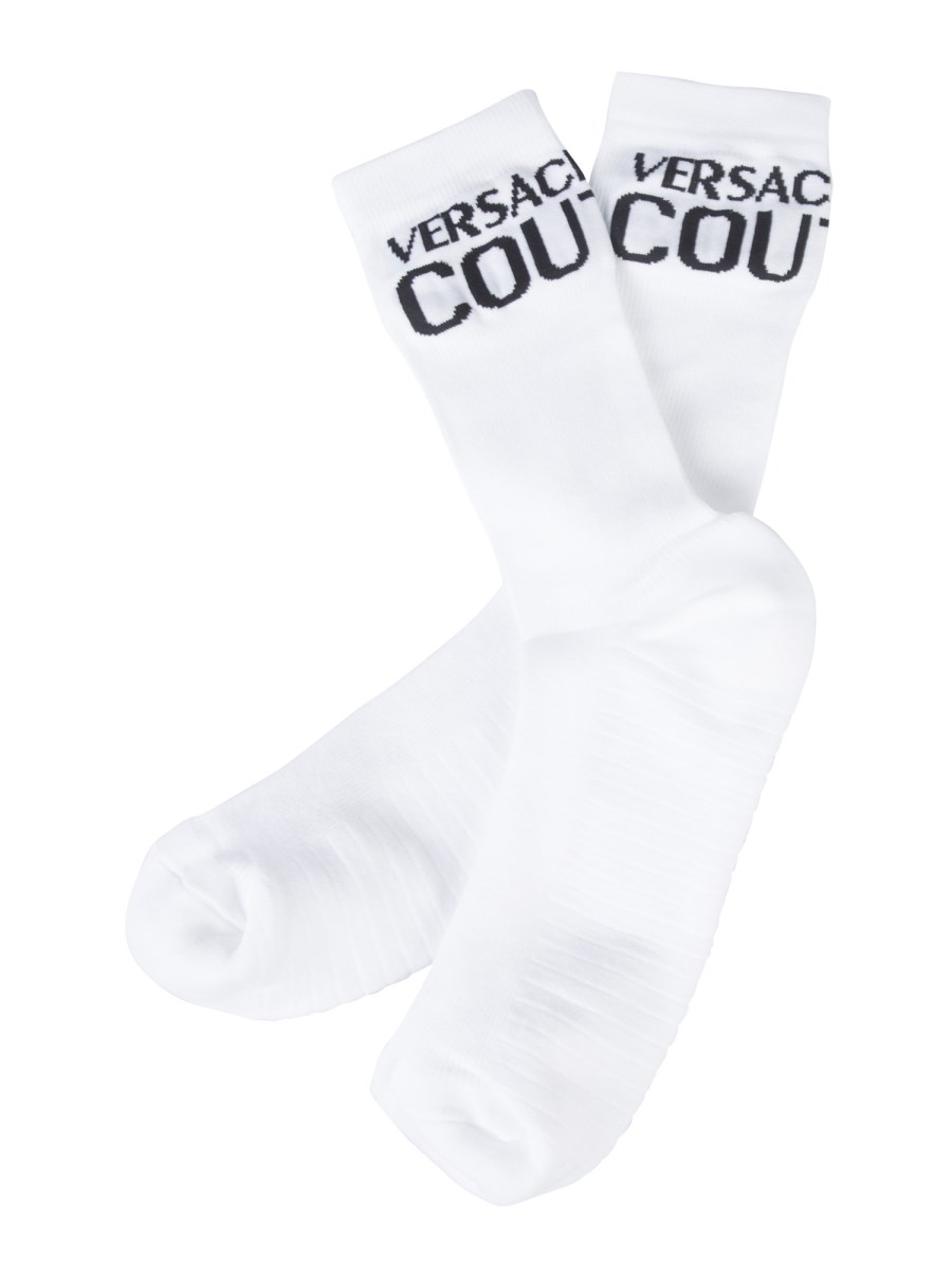 Keep your feet warm and cosy with these socks with logo from Versace Jeans Couture. These socks are made from a mix of polyamide and elastane that will feel soft against your feet. These high-leg socks feature the iconic branding with contrasting colours that refines their subtle design.