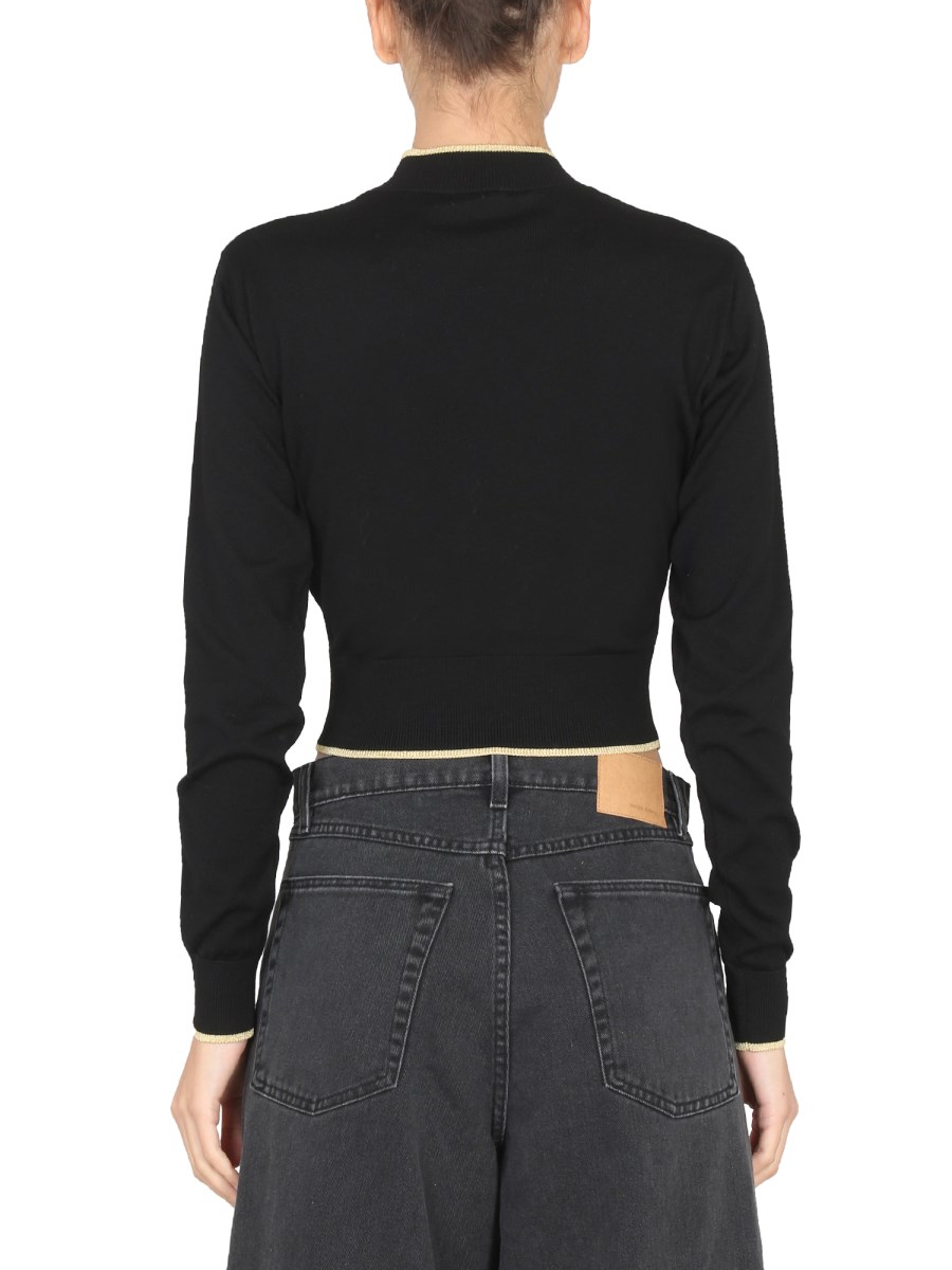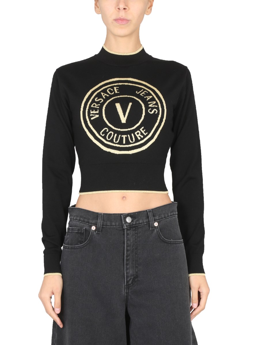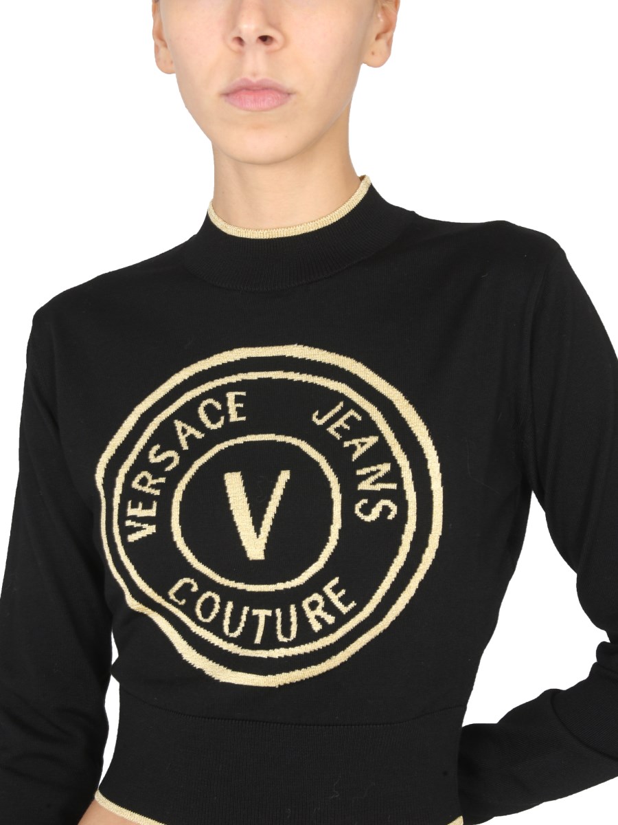 The sweater from Versace Jeans Couture is designed with a high neck and long sleeves that come to just below the wrist. The sweater is made from a wool blend with a jacquard pattern. This sweater is an absolute must-have for every woman's wardrobe.