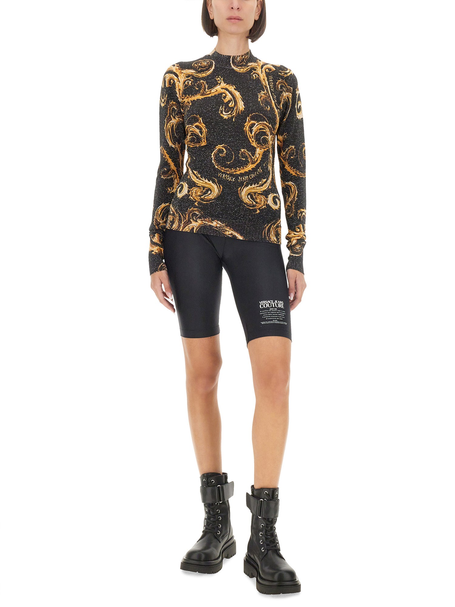 The Lurex Knit T-Shirt from Versace Jeans Couture combines luxury and contemporary style, featuring a shimmering Lurex fabric that adds a touch of elegance to a classic silhouette. This t-shirt is designed for both comfort and sophistication, making it a versatile addition to any wardrobe. With its distinctive branding and high-quality craftsmanship, it embodies the essence of modern fashion while ensuring a flattering fit for various occasions.