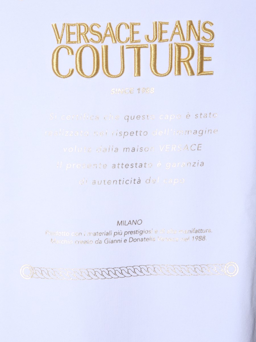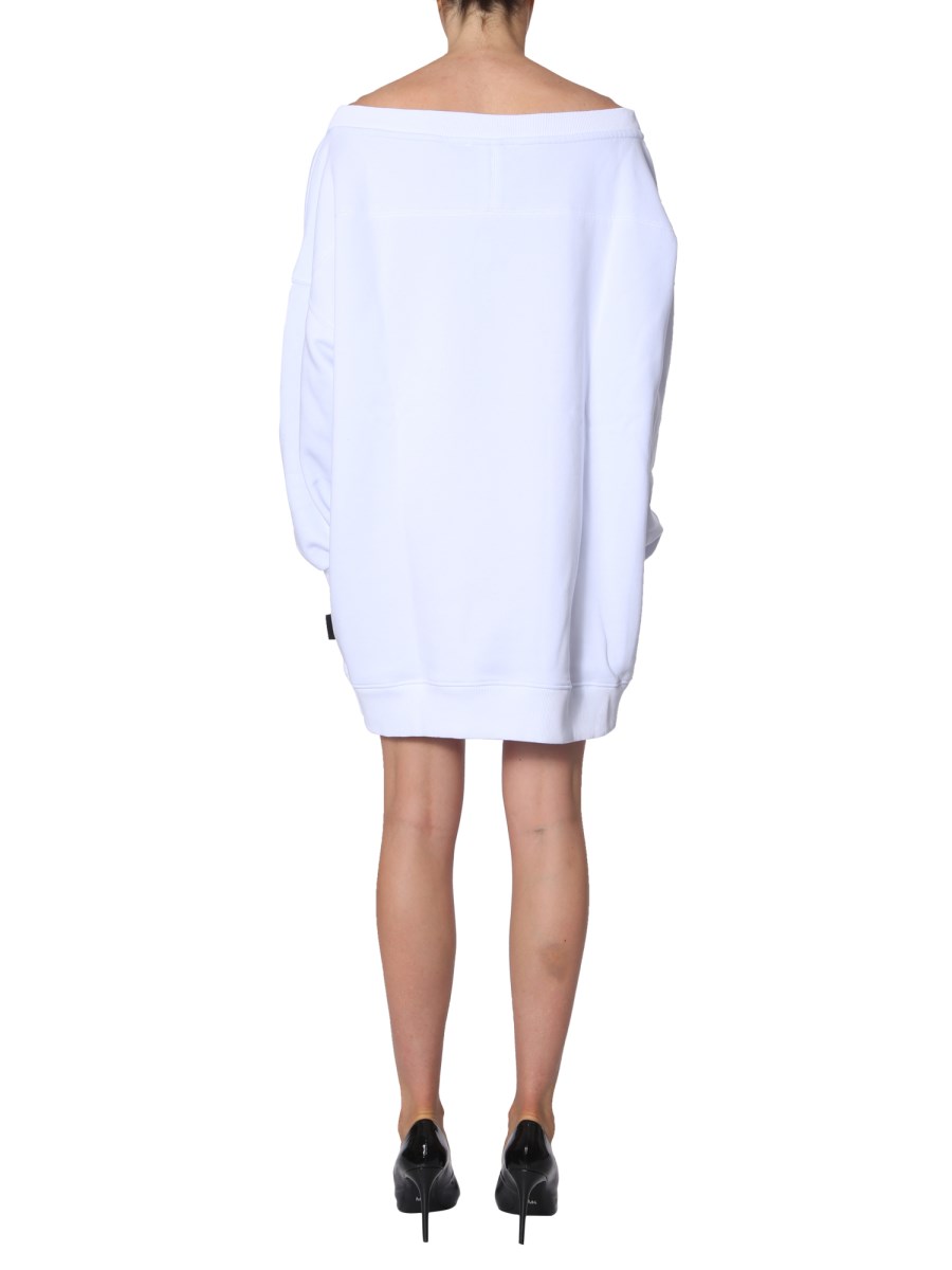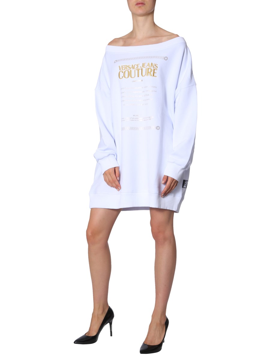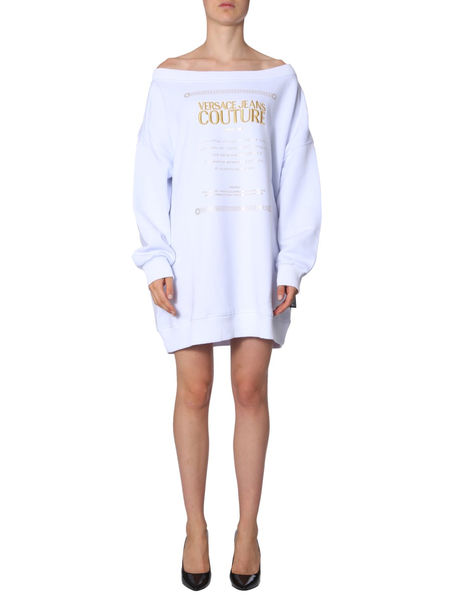 Add variety to your wardrobe with this cotton sweatshirt dress from Versace Jeans Couture. This sweatshirt promises an oversize fit that will help you to acquire a cool and trendy look. It comes with a funky and contrasting print in the front that perfectly complements its light colour scheme. Pair it with black leggings and canvas shoes for a complete look.