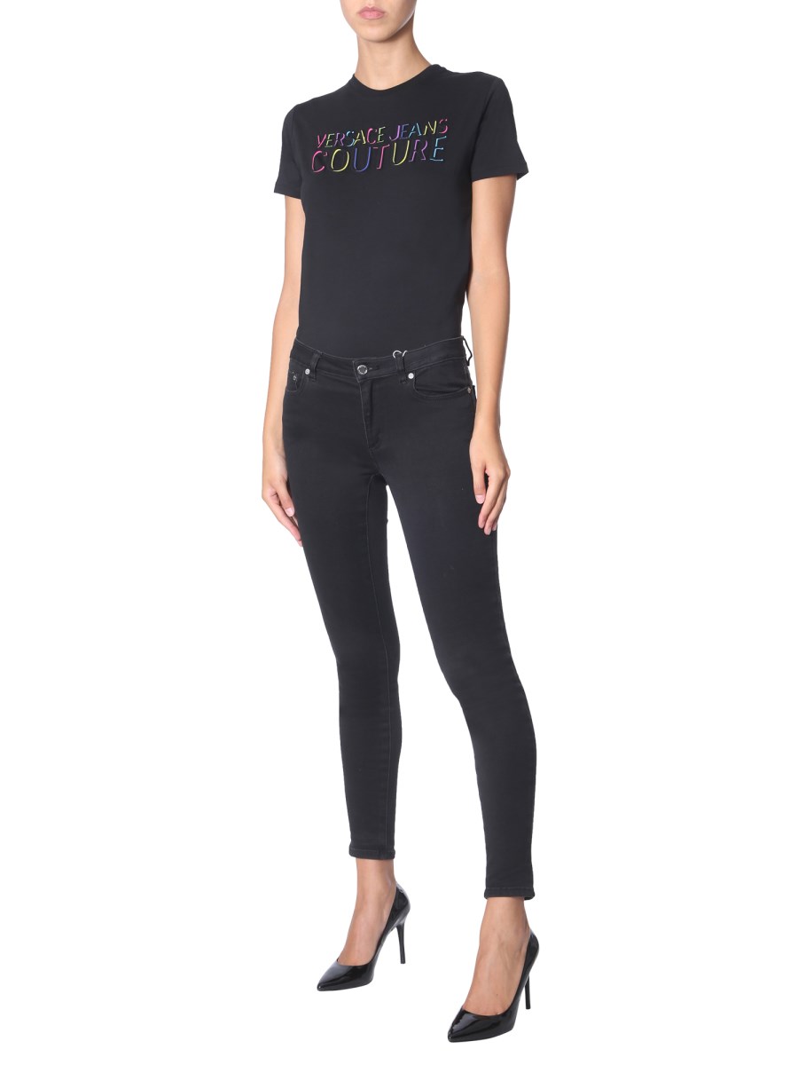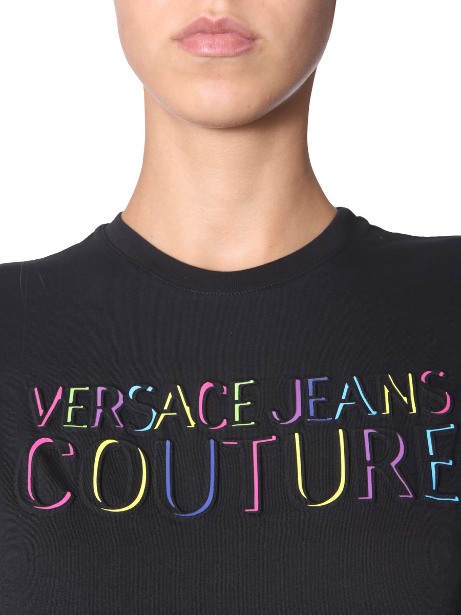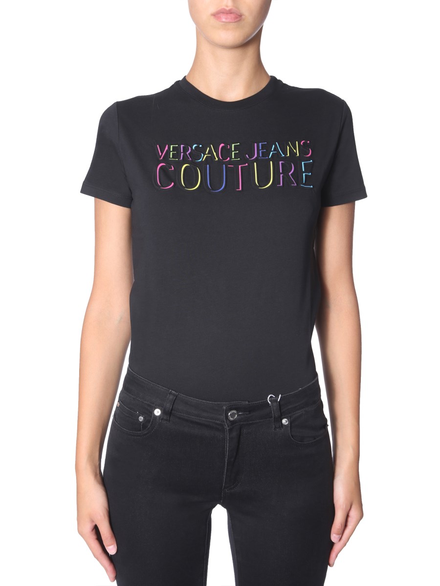 This summer, add this round neck T-shirt from Versace Jeans Couture to your closet. Owing to the fine quality cotton, the T-shirt is breathable, lightweight and feels soft on the skin. The multicolour branding at the front gives it an attractive look. This basic round neck T-shirt will look good when paired with jeans, shorts and skirt.