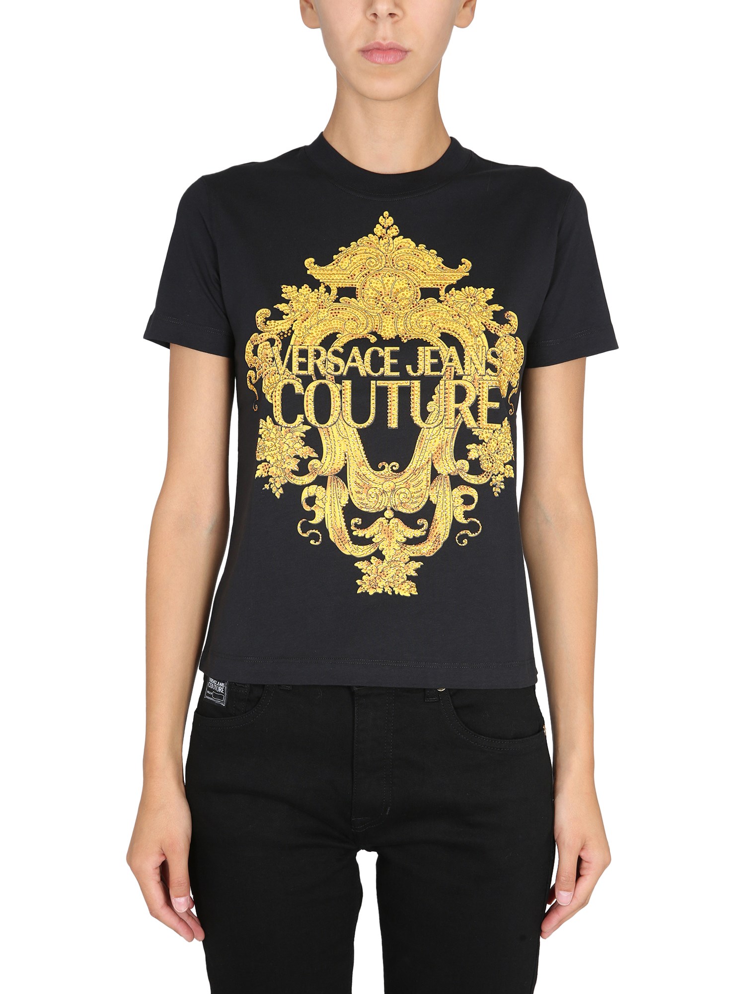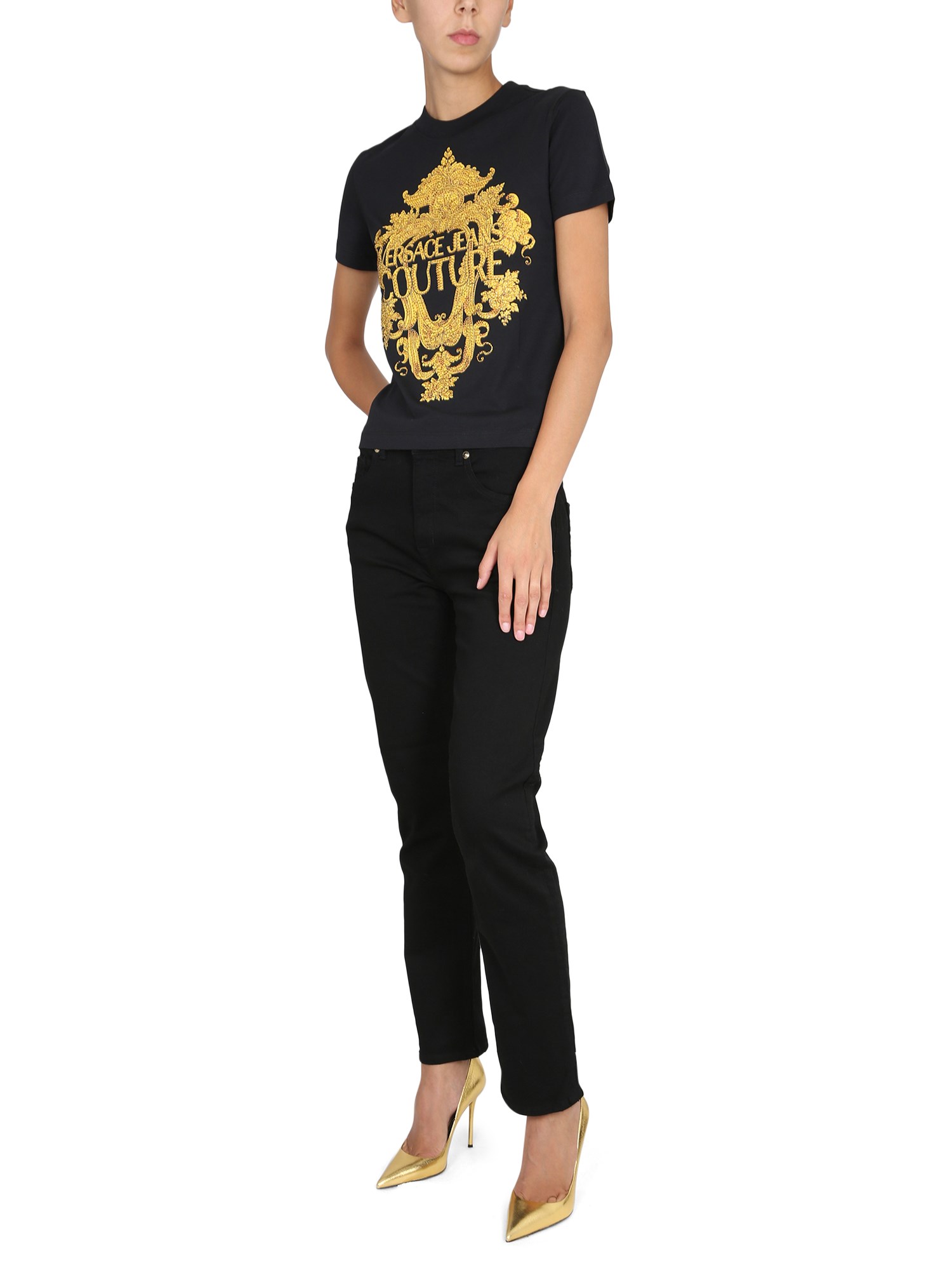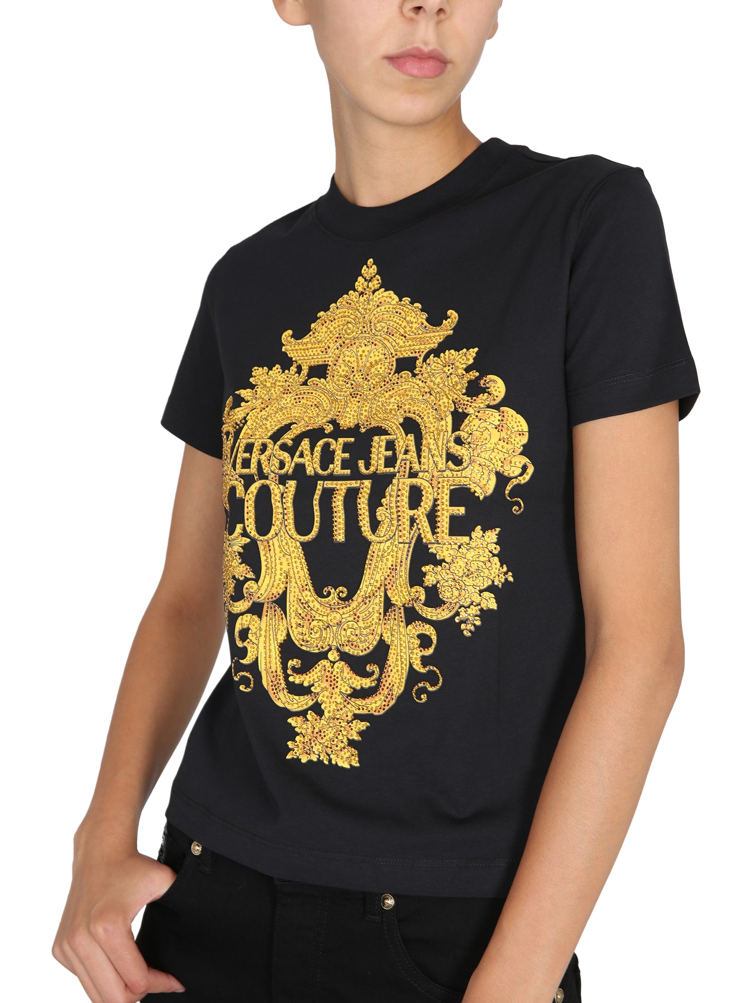 The cotton baroque print T-shirt from Versace Jeans Couture is a classic tee in the style of a historic era. The T-shirt features the classic print that is often found on dresses, blouses, and coats of the baroque period. This classic cotton baroque print T-shirt is a perfect staple to add to your wardrobe.