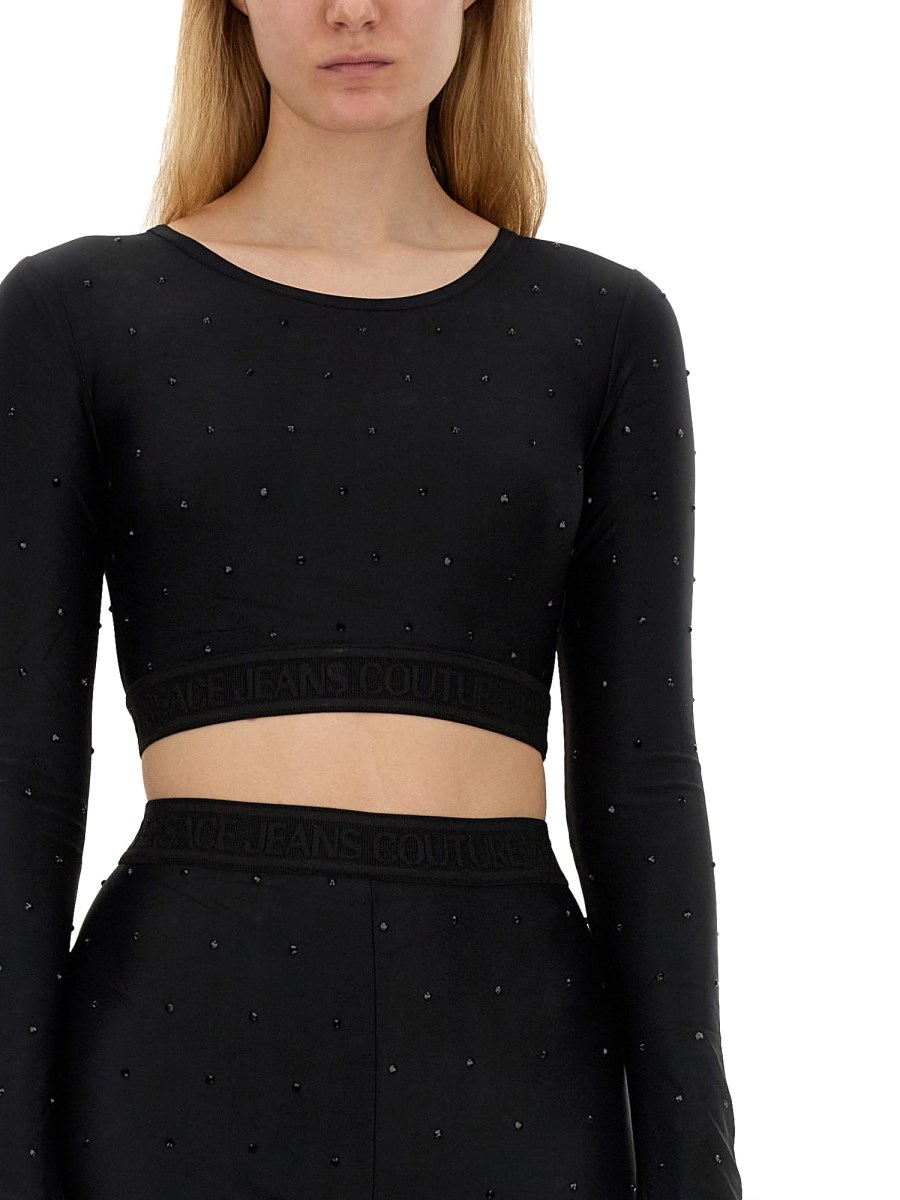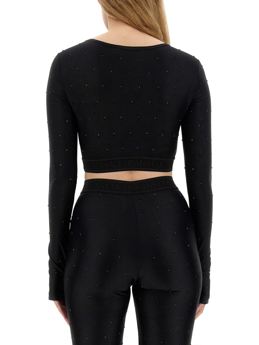 Elevate your wardrobe with this stunning top cropped from Versace Jeans Couture. Crafted with the finest materials and attention to detail, this piece exudes luxury and sophistication. The iconic Versace logo is prominently displayed, adding a touch of glamour to any outfit. Perfect for a night out or a special occasion, this top is sure to make a statement wherever you go.