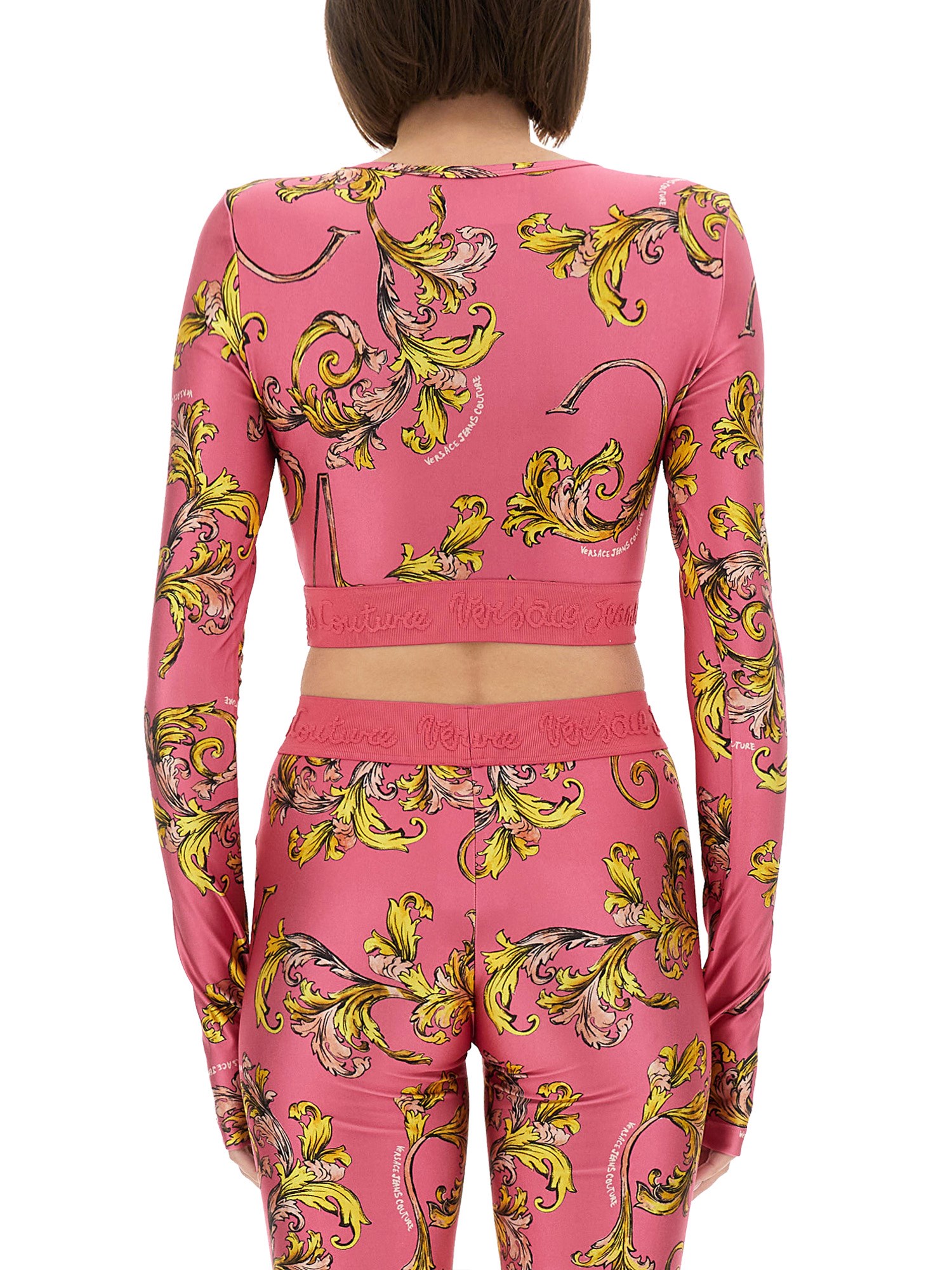 Experience the elegance of the OUTLINE BAROQUE short top from Versace Jeans Couture, a stunning piece that effortlessly combines luxury and contemporary style. Crafted with intricate baroque patterns, this top showcases a bold design that makes a statement while providing a flattering fit. Perfect for both casual outings and upscale events, it pairs beautifully with high-waisted jeans or a chic skirt. Elevate your wardrobe with this versatile and eye-catching top that embodies the essence of high fashion.