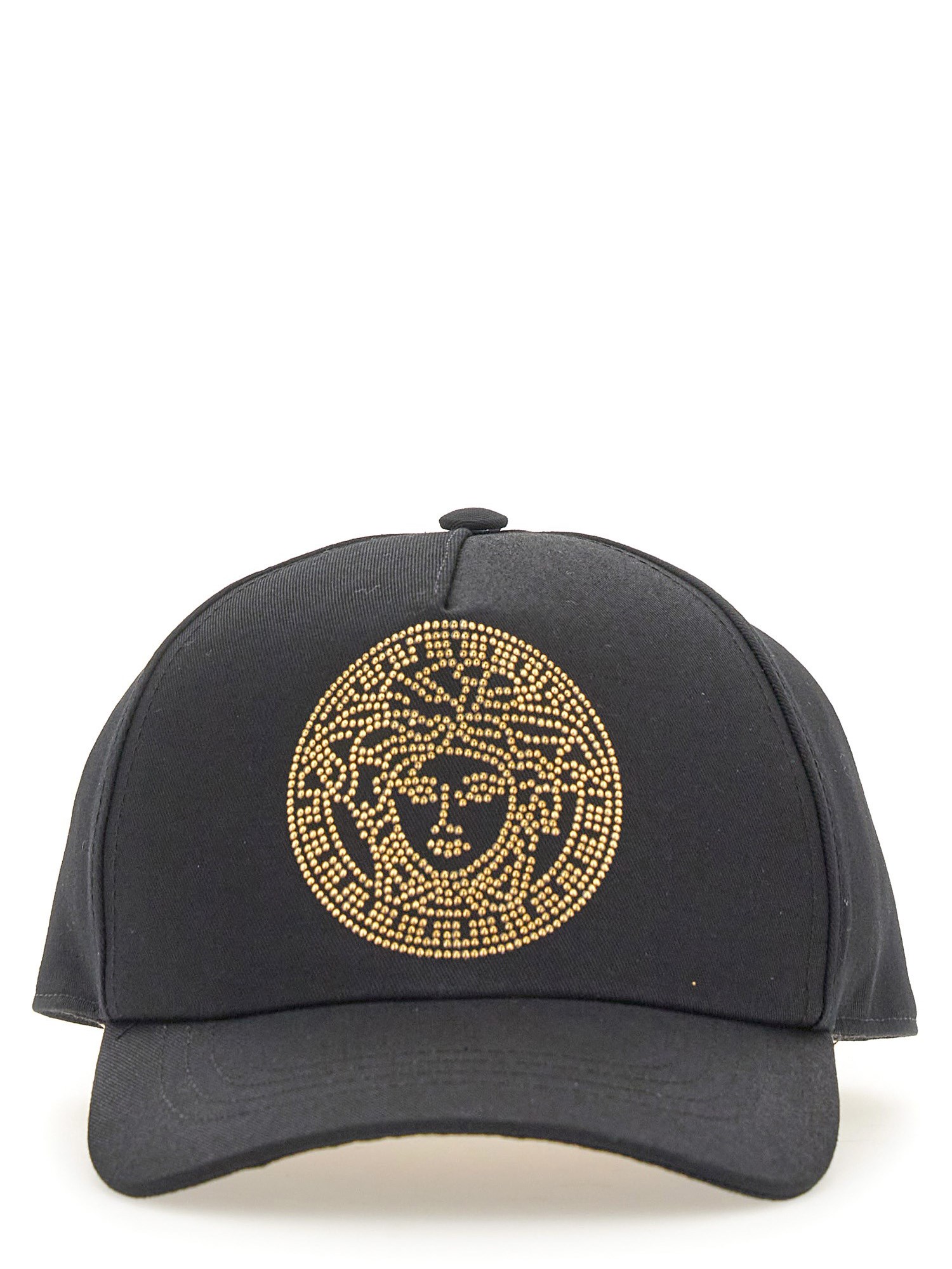 This baseball cap from Versace is a great addition to any laid-back ensemble. It's made of comfy cotton, so you may wear it all day without getting any chafing. A luxurious touch is provided by the embroidered Versace logo on the front. This timeless cap will keep your head cool and shielded from the sun.