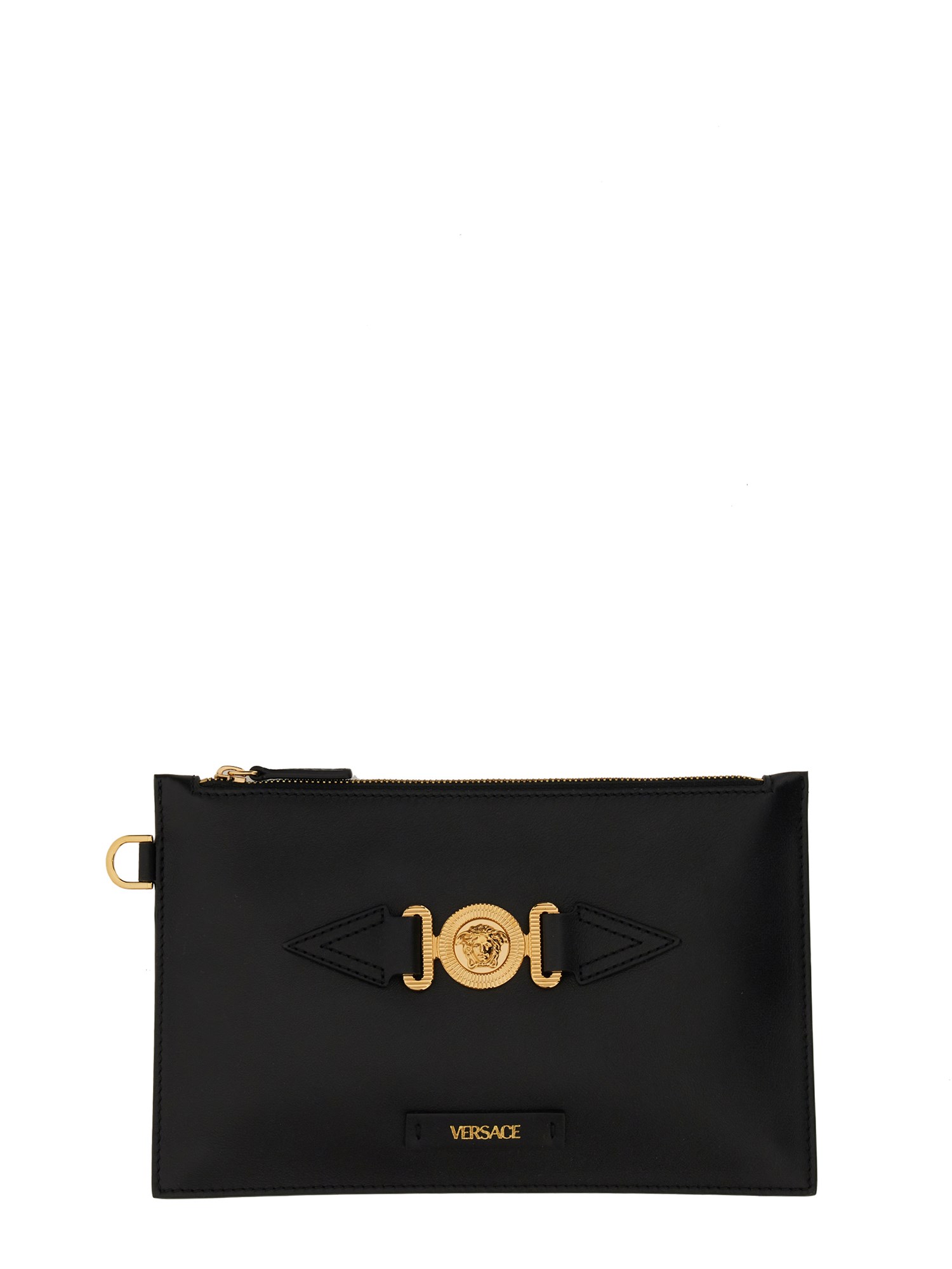 - REMOVABLE STRAP- ZIPPER CLOSURE- BIGGIE MEDUSA ELEMENTS- DIMENSIONS: H 17 CM X W 26 CM- 100% CALFSKIN LEATHER- MADE IN ITALY