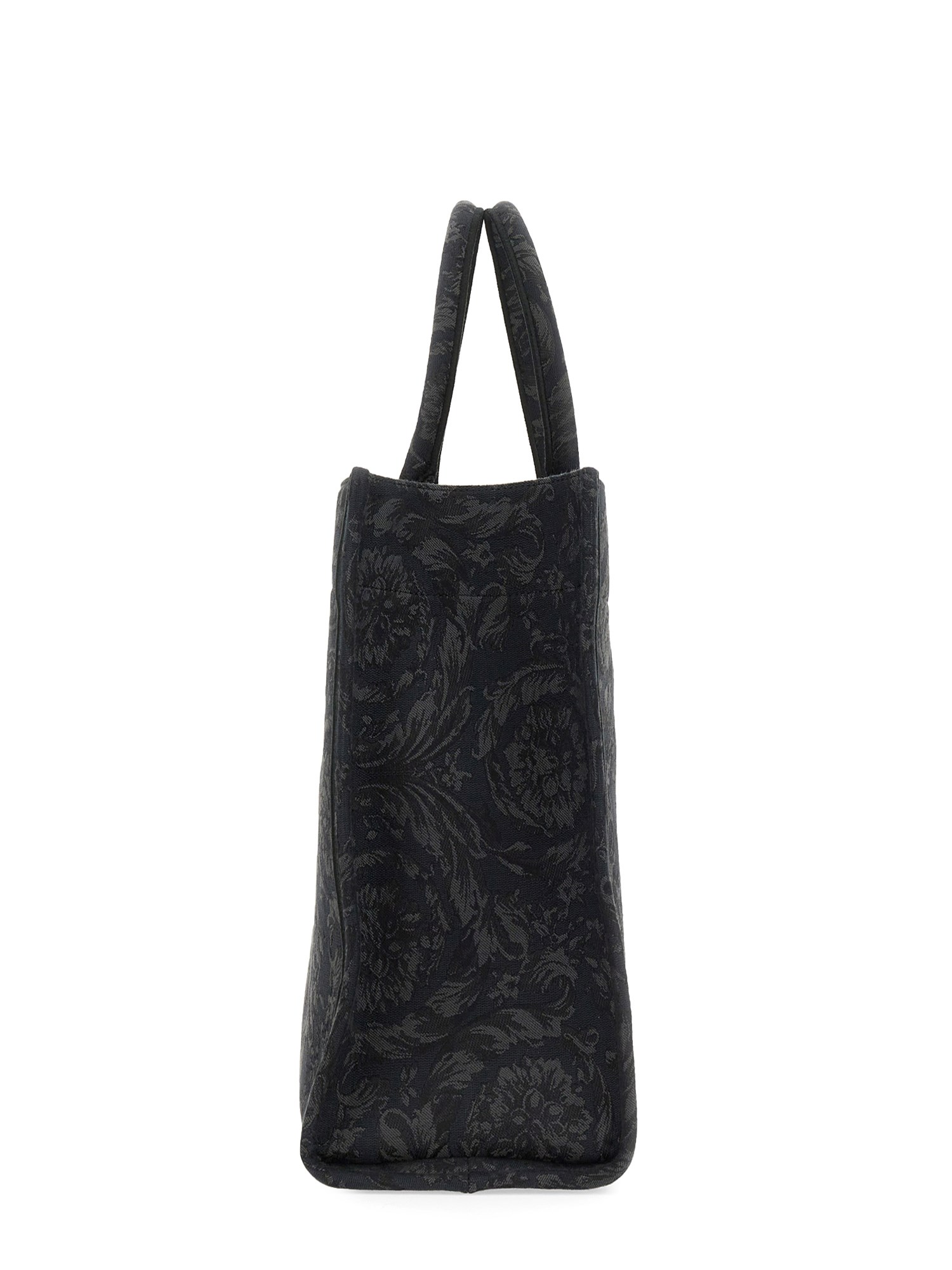 This spacious and functional bag from Versace is the perfect companion for busy individuals who are always on the go. Made from a blend of high-quality polyamide and cotton materials, this bag offers durability and strength, ensuring it will withstand the test of time. With its generous size, this large shopper bag provides ample space for all your essentials, making it ideal for shopping trips, beach outings, or even as an everyday carry-all.