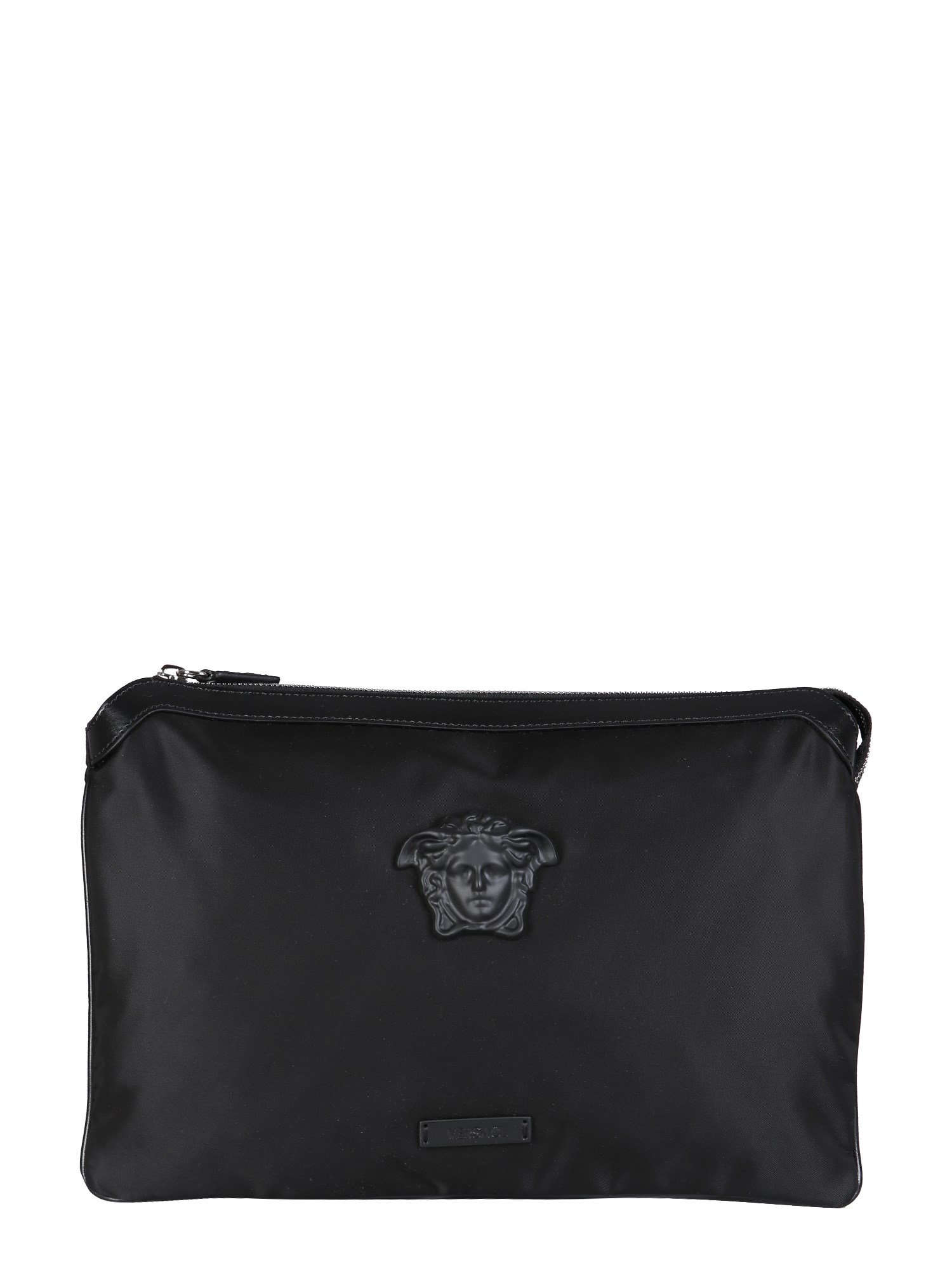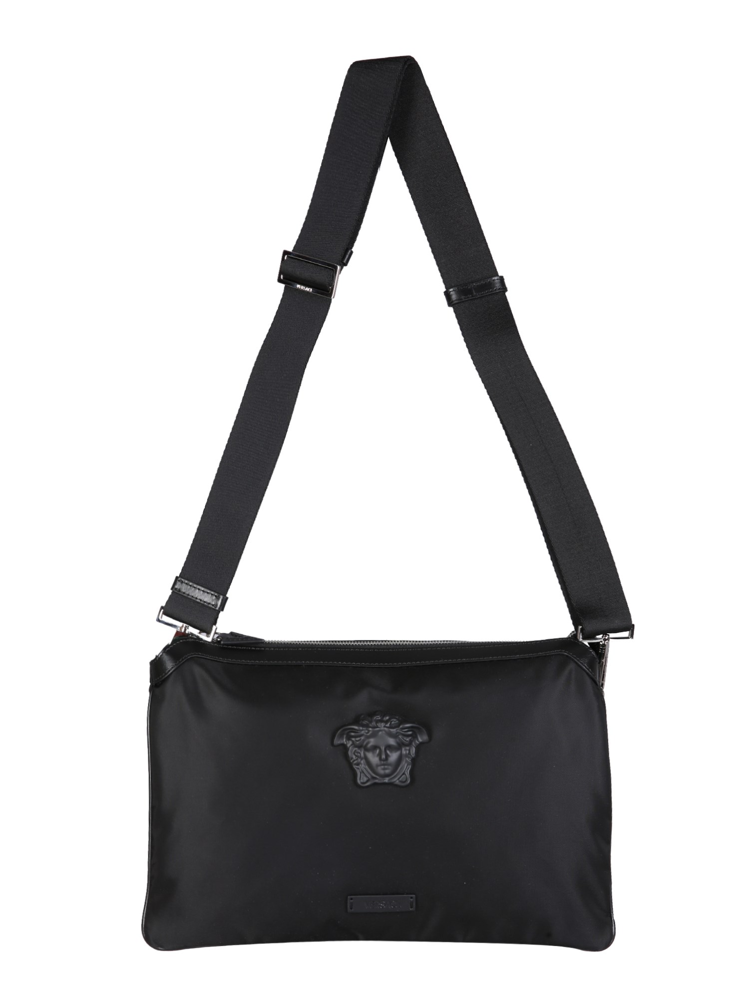 The La Medusa nylon shoulder bag from Versace is an easy-to-carry and spacious bag with a convenient zippered closure. The bag features a lined inner with three compartments and a leather pocket with card slots. It has taped shoulder strap and is adorned with a La Medusa plaque.