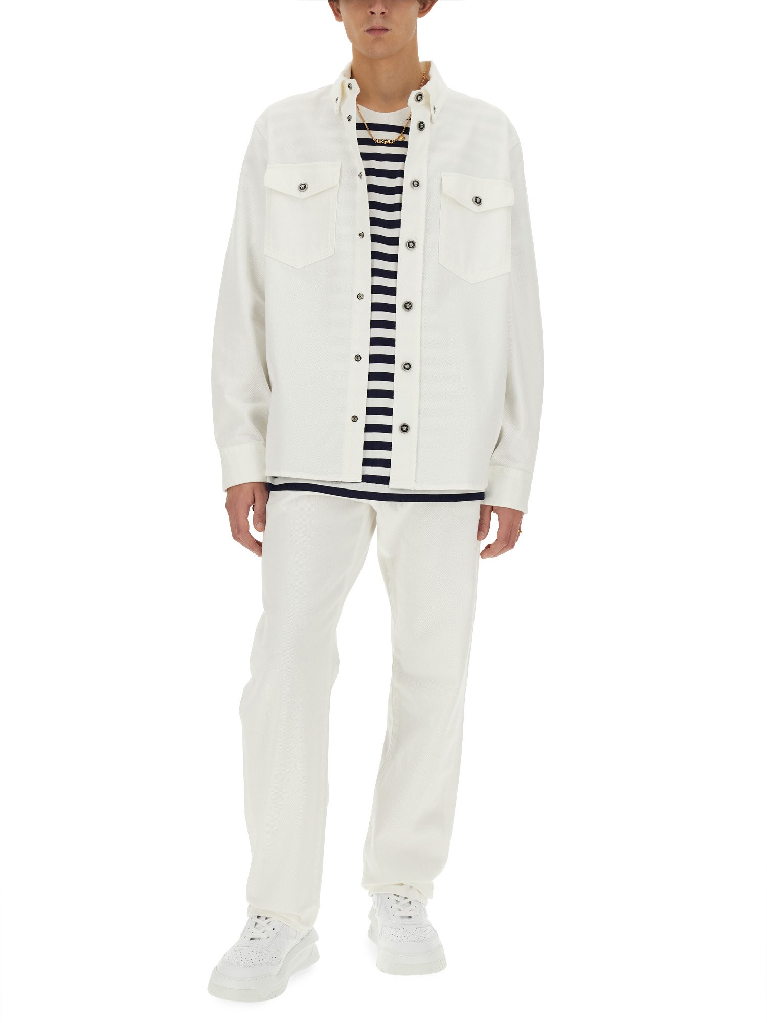 These jeans from Versace are designed to provide a flattering fit and timeless style. Made with high-quality denim fabric that ensures durability and long-lasting wear. The front button and zipper closure give these jeans a classic and secure fastening, making them easy to put on and take off. The regular fit design offers a relaxed yet stylish look, perfect for both casual and dressier occasions.