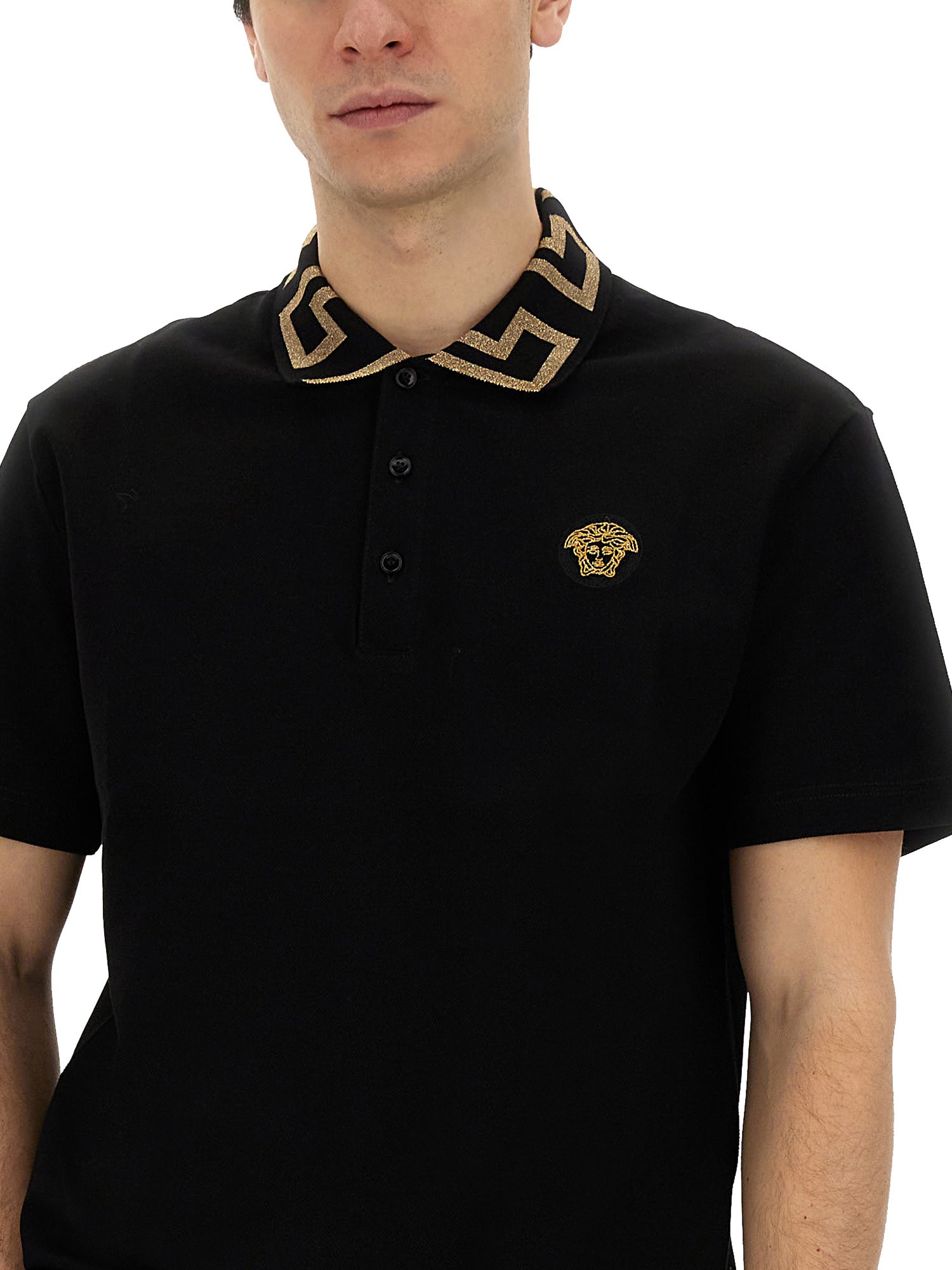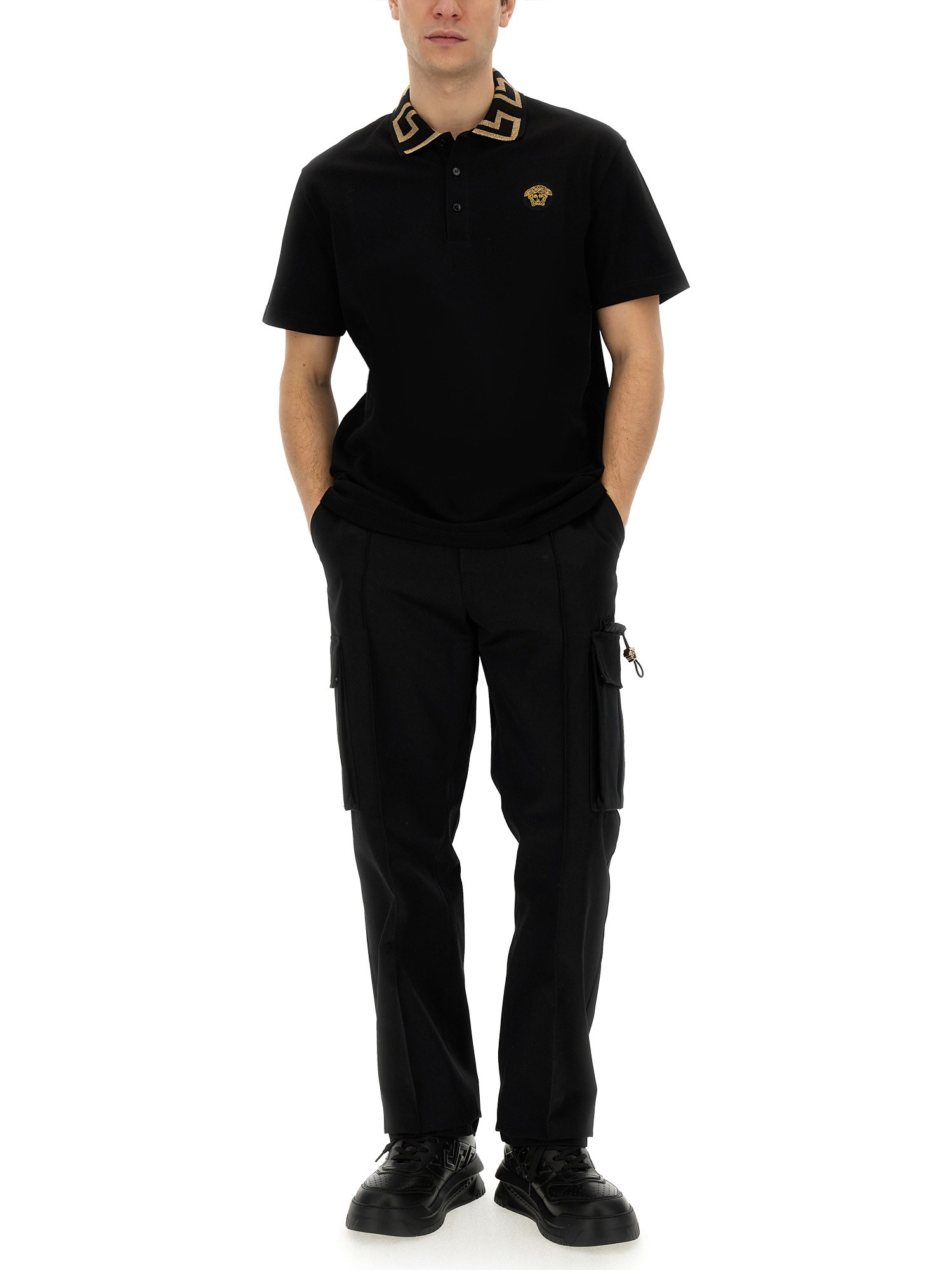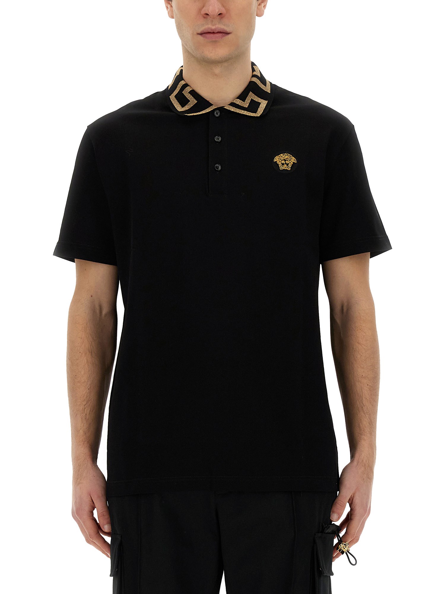 Elevate your casual wardrobe with this luxurious polo shirt crafted from bio cotton piquet fabric featuring a stylish Greca design on the neck. The iconic Medusa logo embroidery from Versace adds a touch of sophistication and elegance to this classic piece. Upgrade your style with this high-quality and fashionable polo shirt.