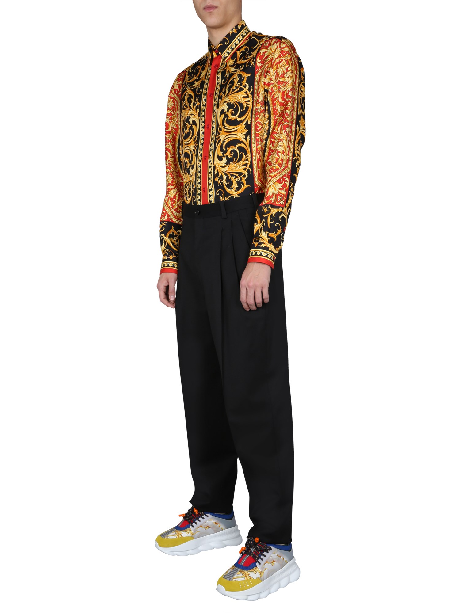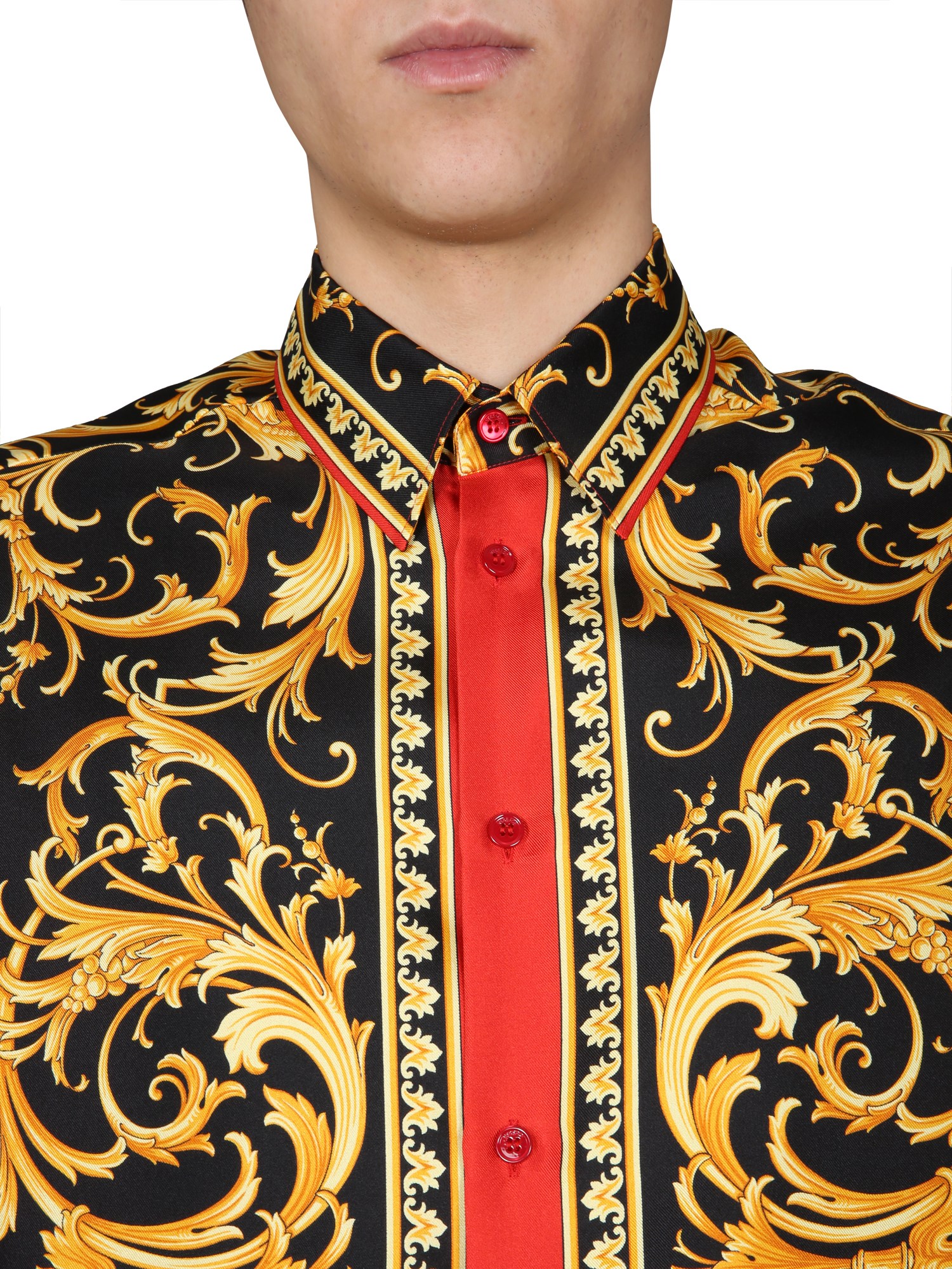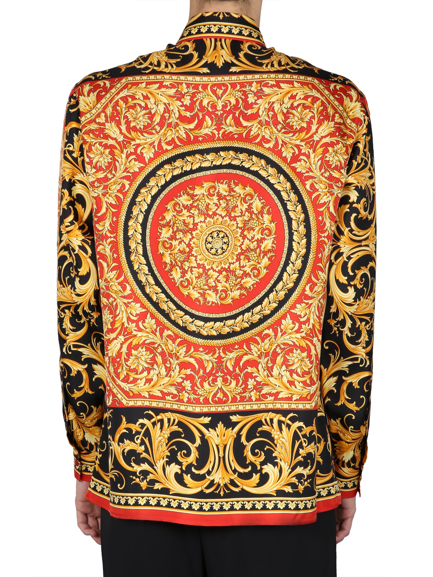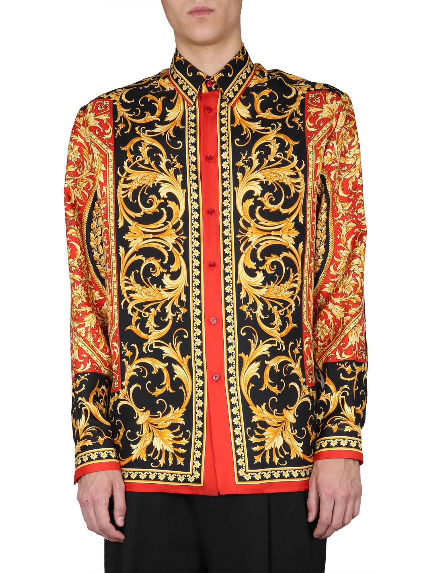 You’ll love the trendiness and funky appeal of this printed shirt from Versace. Its abstract printed surface is something that’ll surely make the heads turn wherever you go. Plus, it is made of pure silk fabric that has lustre of its own and drapes gracefully around the body.