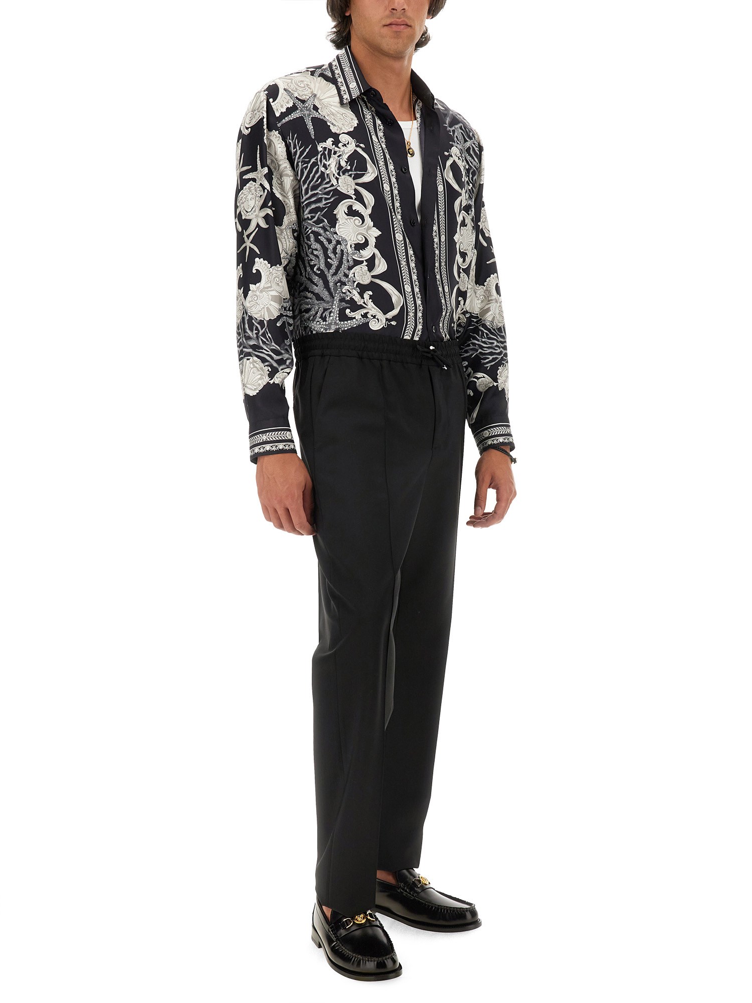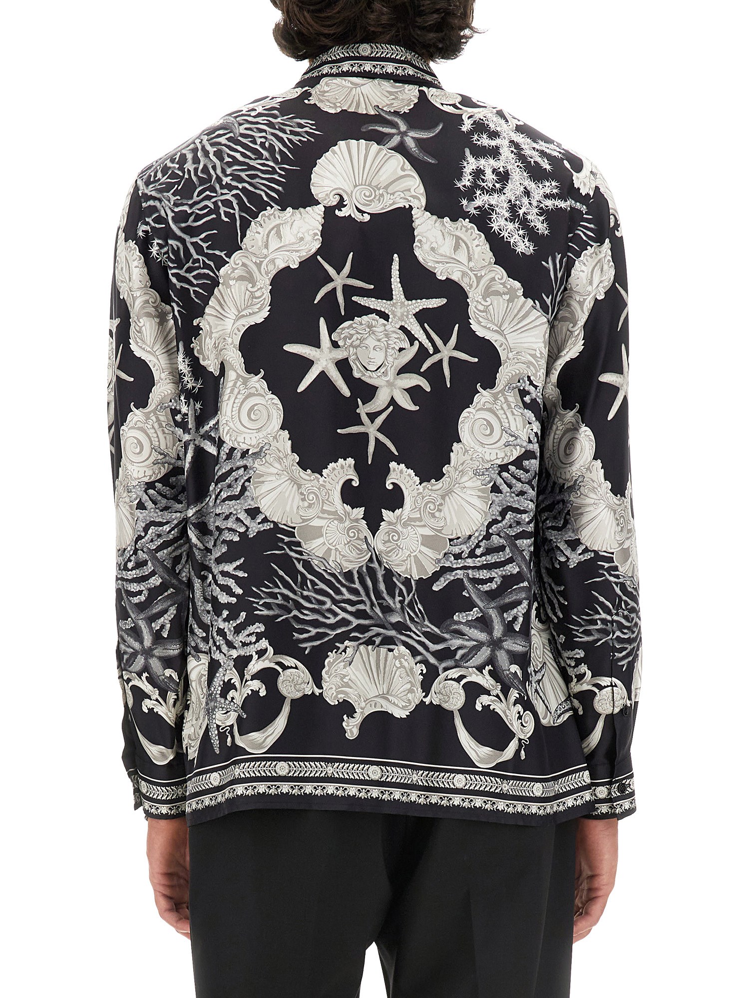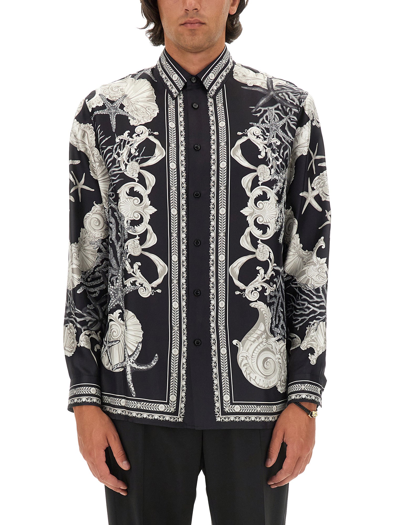 The Silk Baroque Sea Shirt from Versace exemplifies luxury and sophistication, featuring an intricate baroque print that captures the essence of opulence. Crafted from high-quality silk, this shirt offers a soft, smooth texture and a comfortable fit, making it ideal for both casual and formal occasions. The vibrant colours and detailed design reflect Versace's signature style, ensuring that the wearer stands out with elegance and flair. Perfect for those who appreciate high fashion, this shirt is a statement piece that elevates any wardrobe.