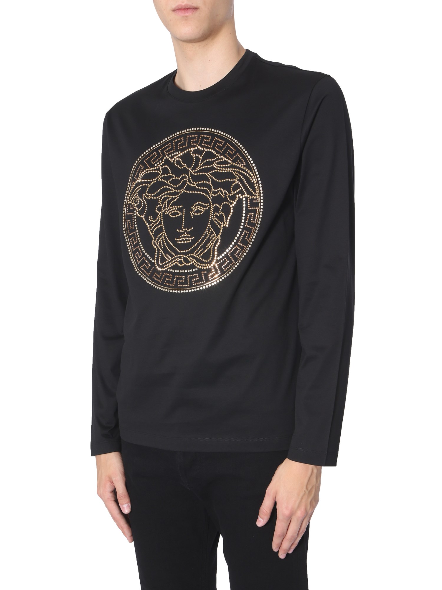 LONG-SLEEVED COTTON T-SHIRT WITH CRYSTAL MEDUSA LOGO