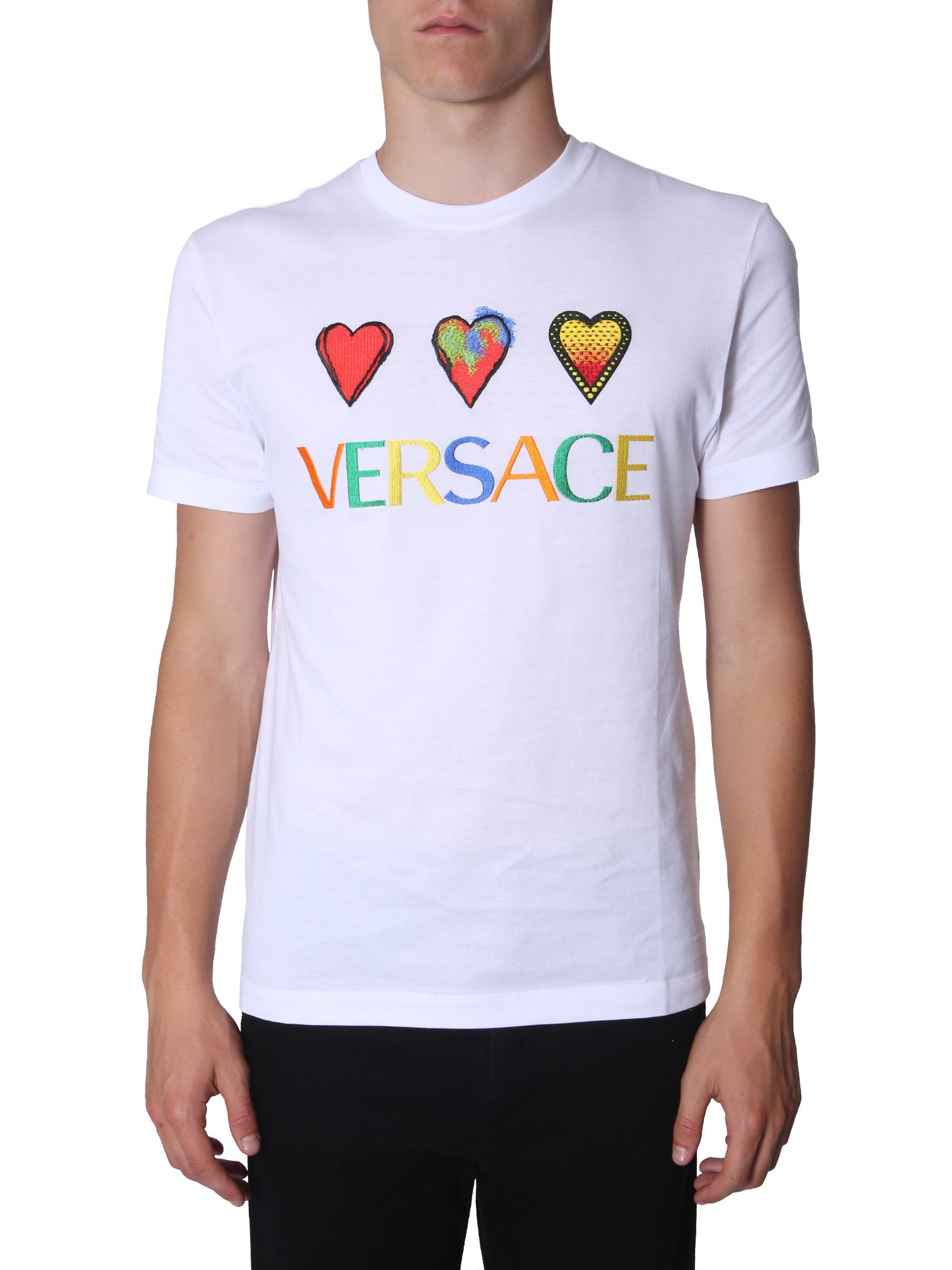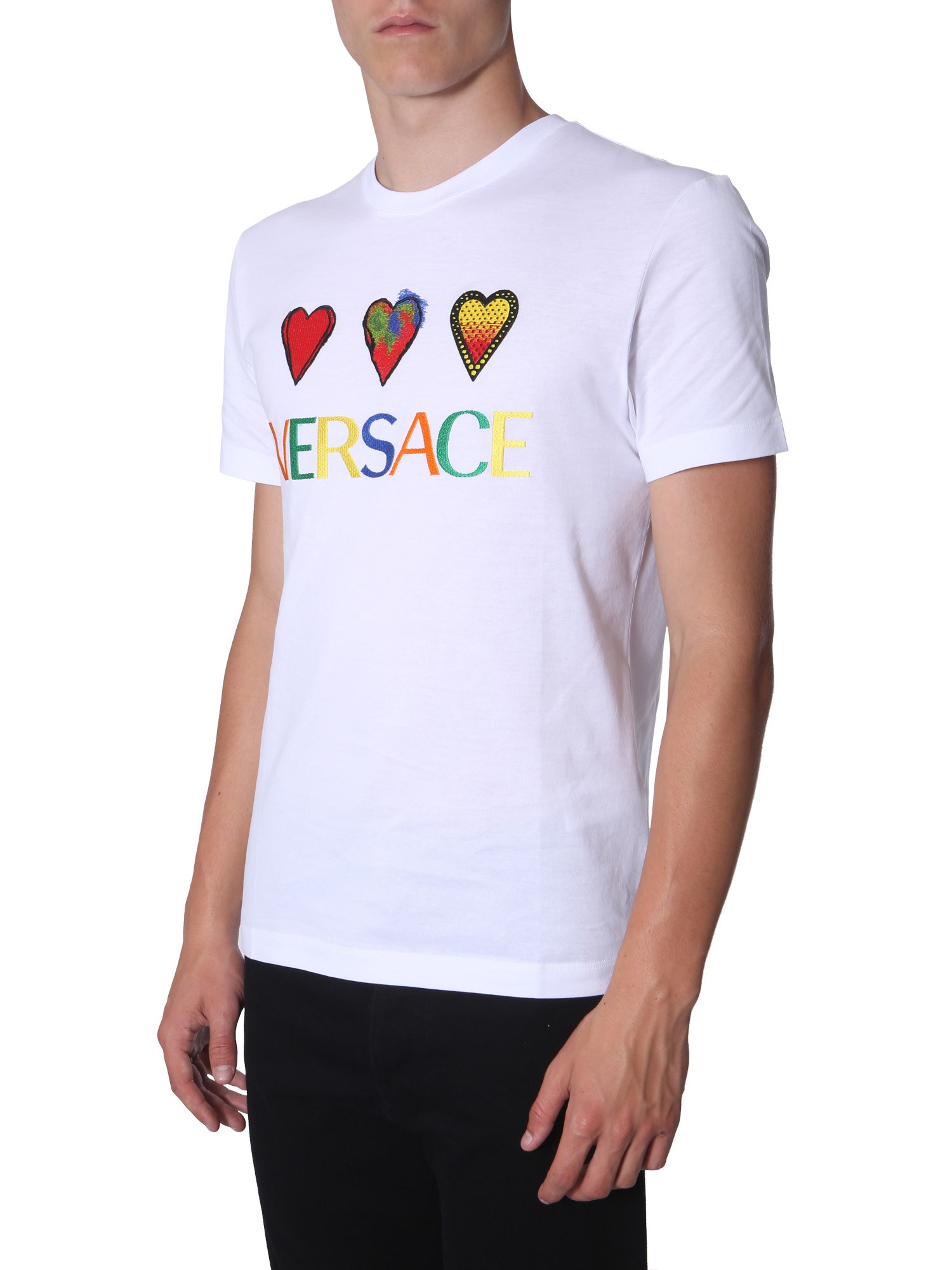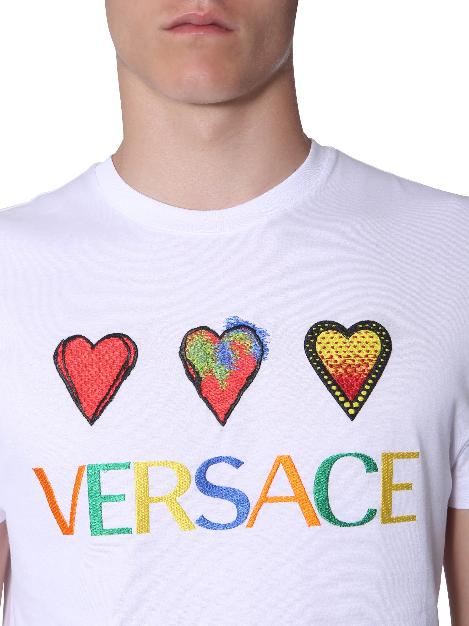 From grocery shopping to movie nights, this T-shirt with embroidered logo from the house of Versace will cover all your casual occasions. Made from good quality cotton, this T-shirt offers breathability and feels soft against your skin. It has reflective print detailing on the front that adds a quirky and funky touch to its design.