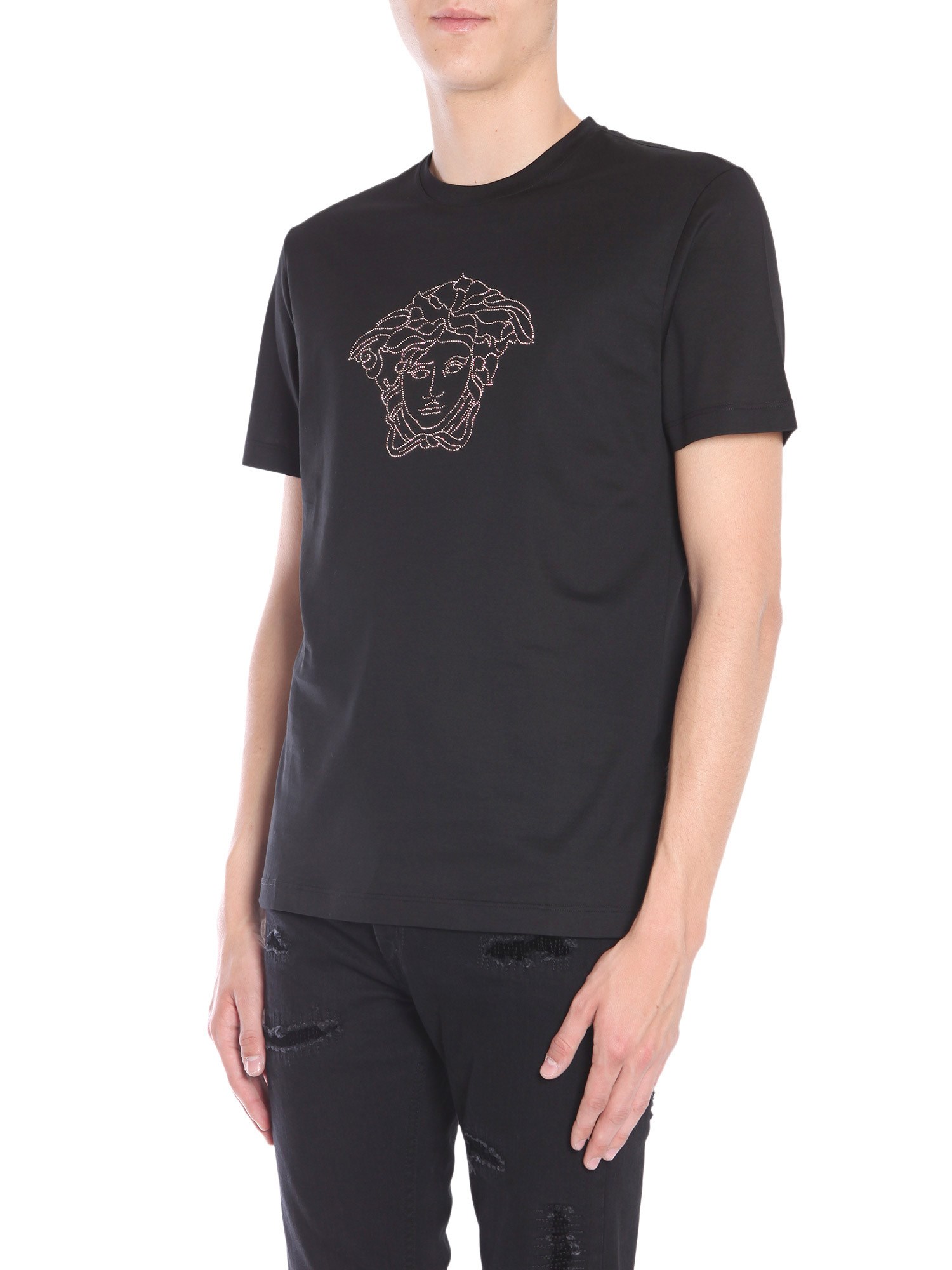 This summer, add this round neck T-shirt from the house of Versace. The T-shirt is tailored from good quality cotton that allows breathability. Set with short sleeves and a round neck, it will easily become your favourite summer apparel. You can also wear this T-shirt in winters after pairing it with a denim jacket.