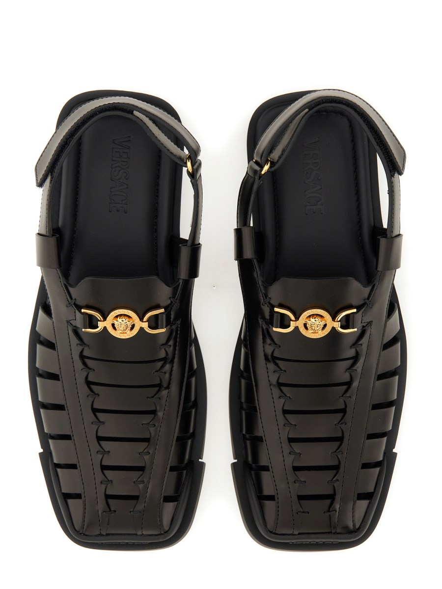 The Medusa Slingback Sandal '95 from Versace is a luxurious and stylish footwear option that exudes elegance and sophistication. Crafted with high-quality materials, these sandals feature the iconic Medusa logo embellishment on the front strap, adding a touch of glamour to any outfit. The slingback design ensures a secure and comfortable fit, making them perfect for both casual and formal occasions. Elevate your look with these timeless sandals from Versace.