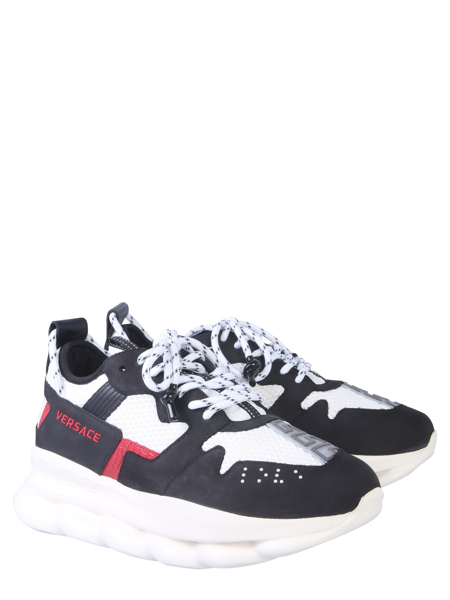 Wear the Versace Chain Reaction 2 sneakers to your next gym session for a comfortable as well as stylish experience. A knit-like mesh upper and side quarters make these shoes breathable and comfortable to wear. The laced-up closure is easily adjustable while the pull up loop tab makes you wear them readily.