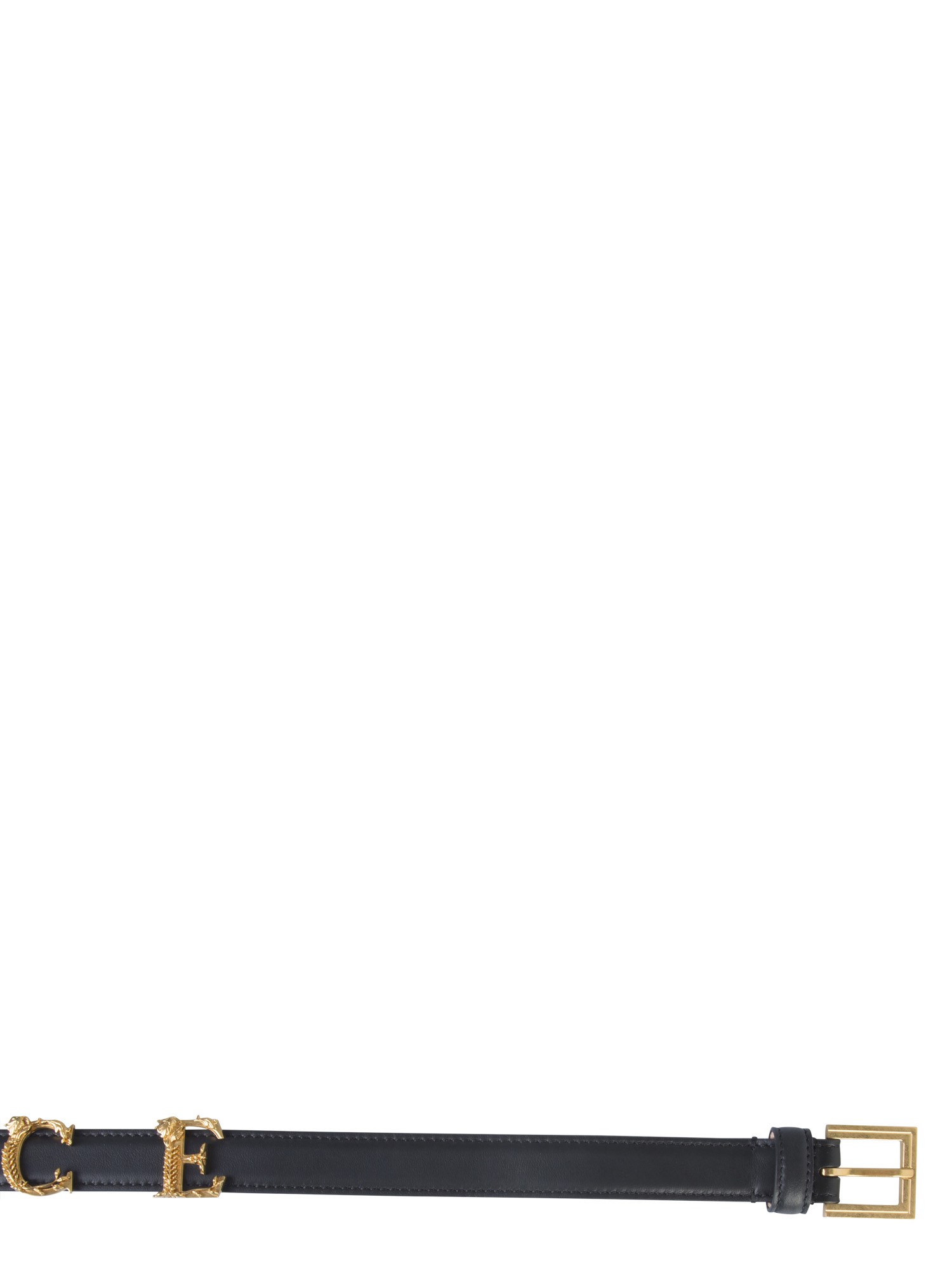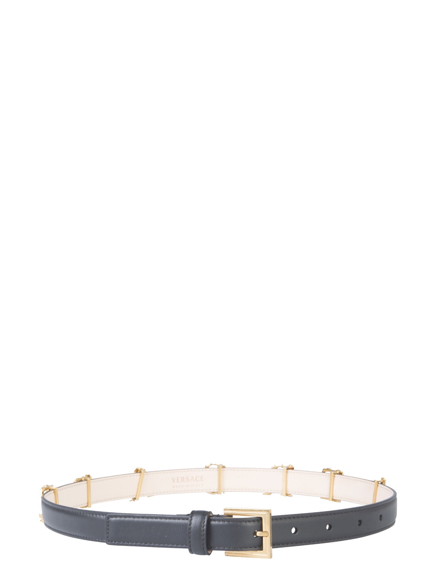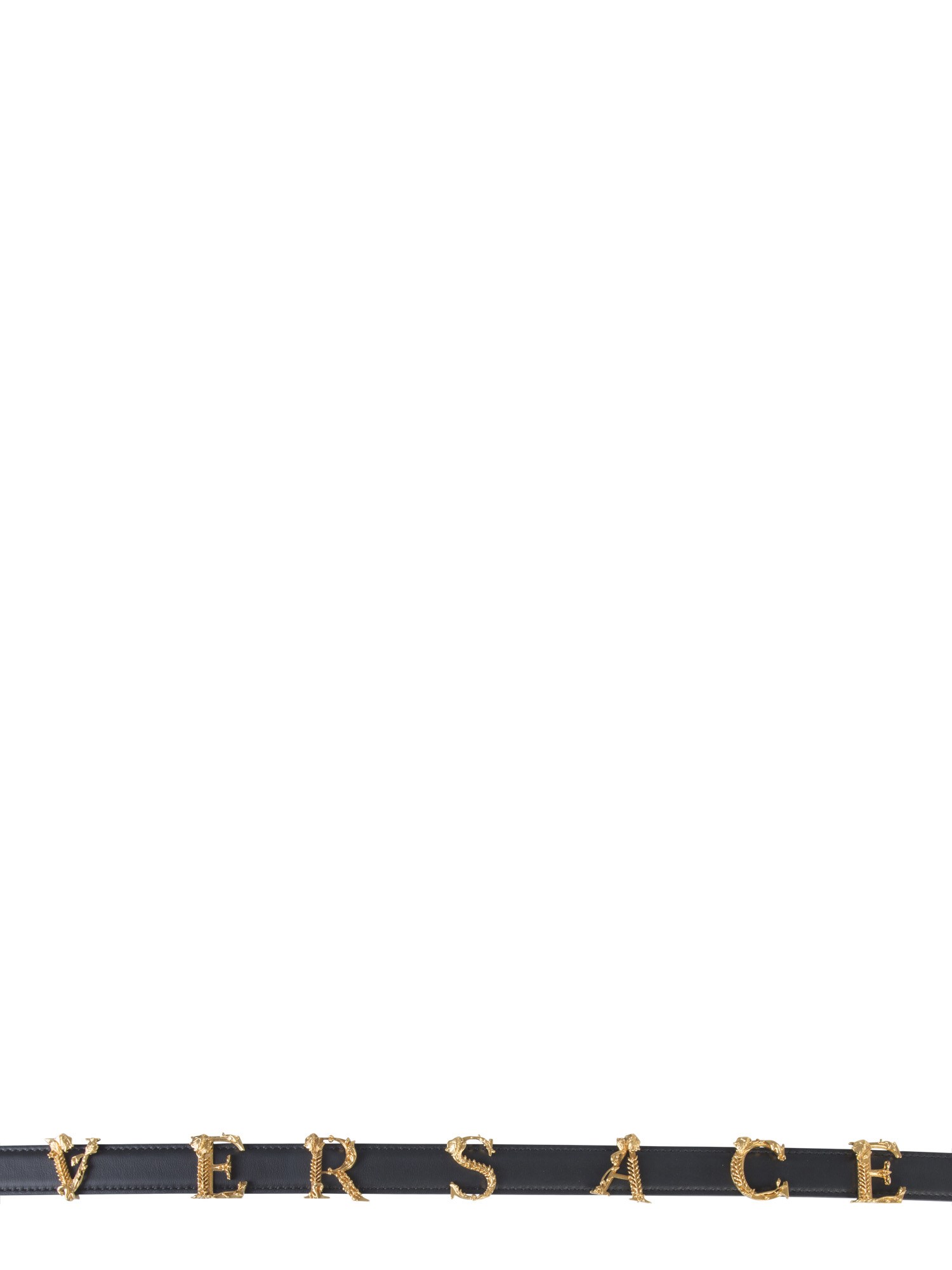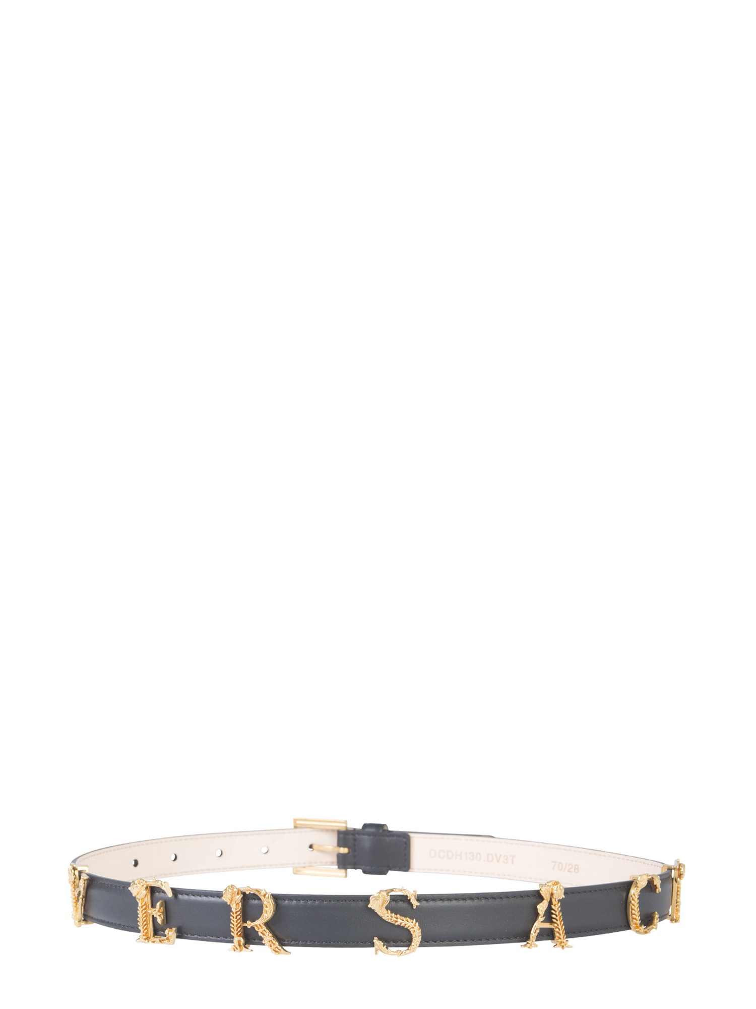 Buckle up your pants or trousers with this stylish and trendy belt with logo letters from the house of Versace. The belt is made using calf skin leather and easily wraps around your waist. The metal buckle renders it a fashionable and trendy look. The metallic letter detailing ensures a classy and quirky finish to this belt.