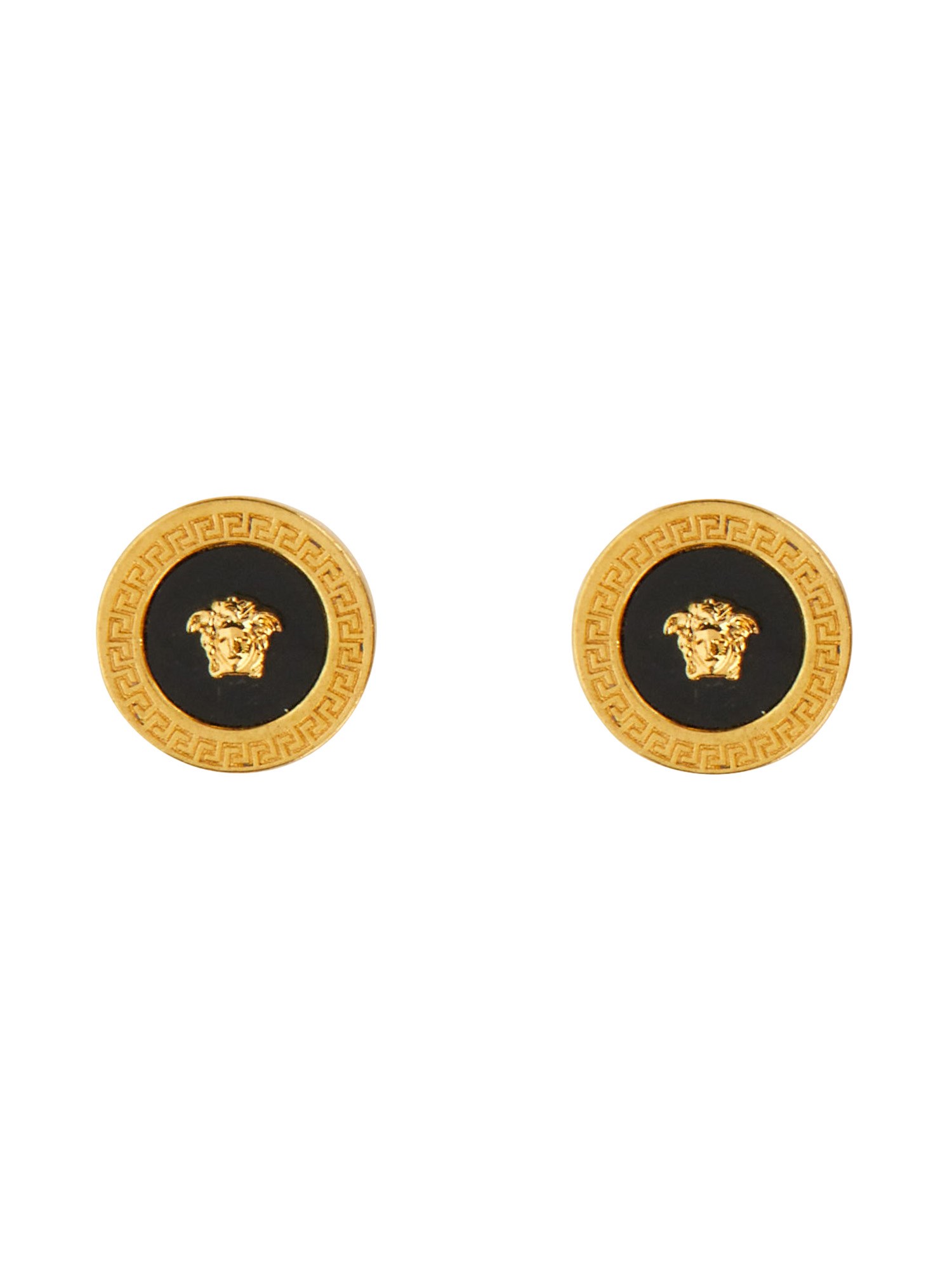 These Versace studs showcase the iconic Versace logo, exuding a sense of luxury and sophistication. Made from high-quality golden brass, these studs boast an exquisite shine, adding a touch of glamour to any outfit. The Versace logo, engraved on each stud, is a symbol of elegance and refinement, making a bold statement wherever you go.