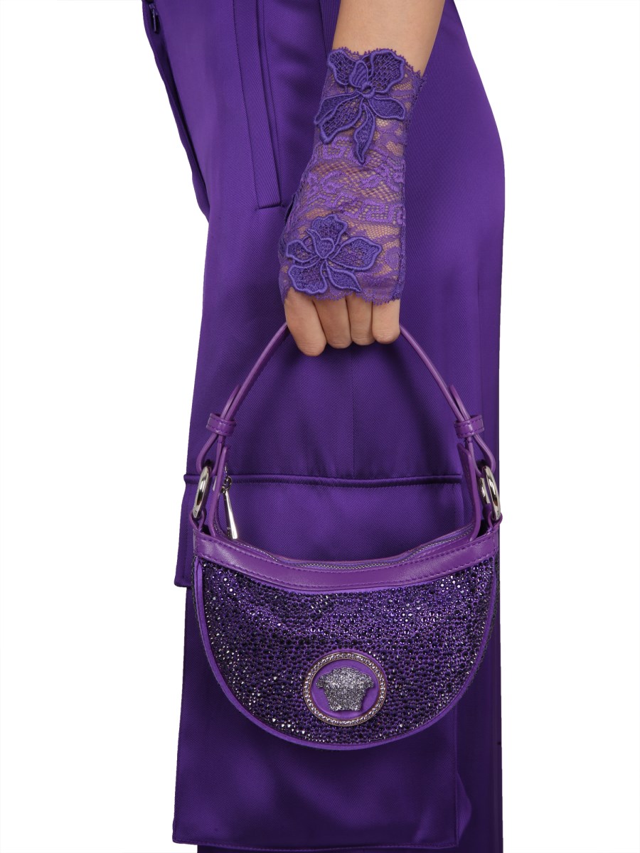 - WITHOUT FINGERS- FLORAL MOTIFS- DECORATION WITH CRYSTALS- 100% NYLON- MADE IN ITALY
