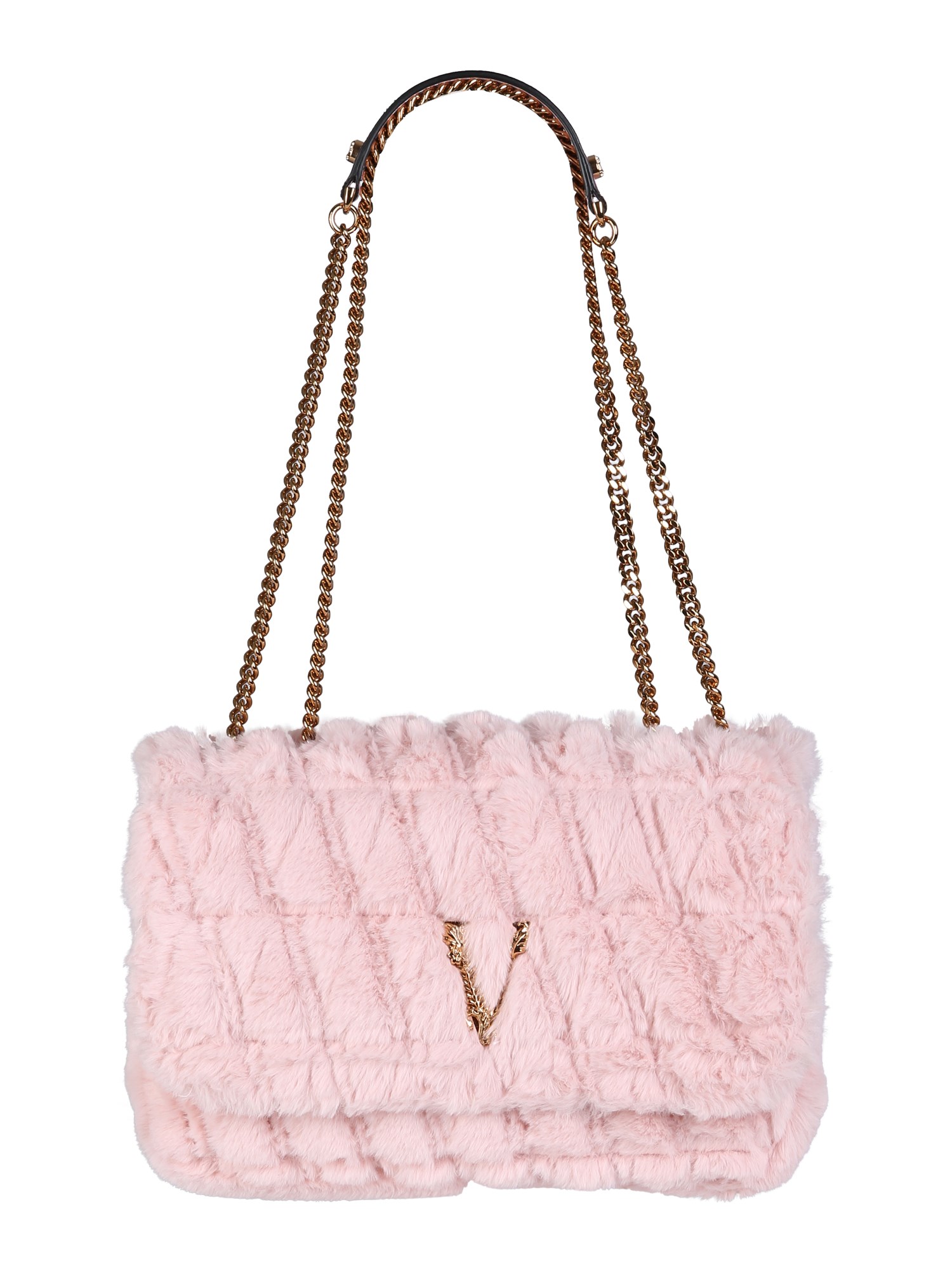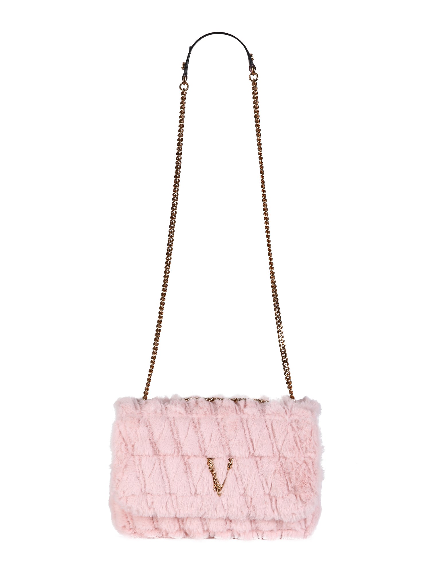 This Virtus shoulder bag from Versace is perfect for anyone who wants to look stylish, yet comfortable and practical. The bag features a magnetic button closure, and an inner pocket and is adorned with metal baroque V elements. The bag is spacious and has a variety of compartments to hold all your items and a stylish chain shoulder strap with a leather insert.
