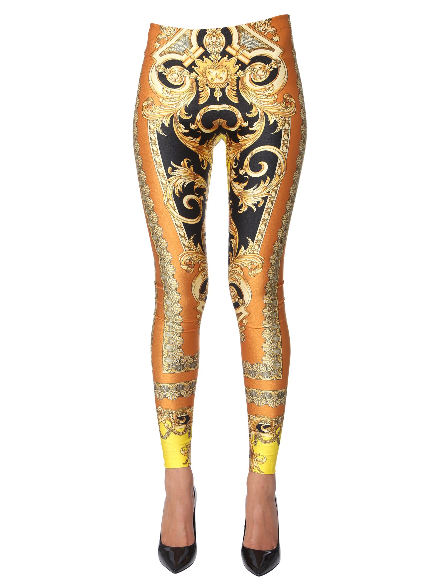 Carry an unusual style statement with these printed leggings from Versace. Made of 80% polyamide, 20% elastane, the leggings are stretchable and comfortable. These slim fit leggings are perfect to flaunt your well-toned legs. The abstract printed leggings can be paired with a crop top for a stylish look.