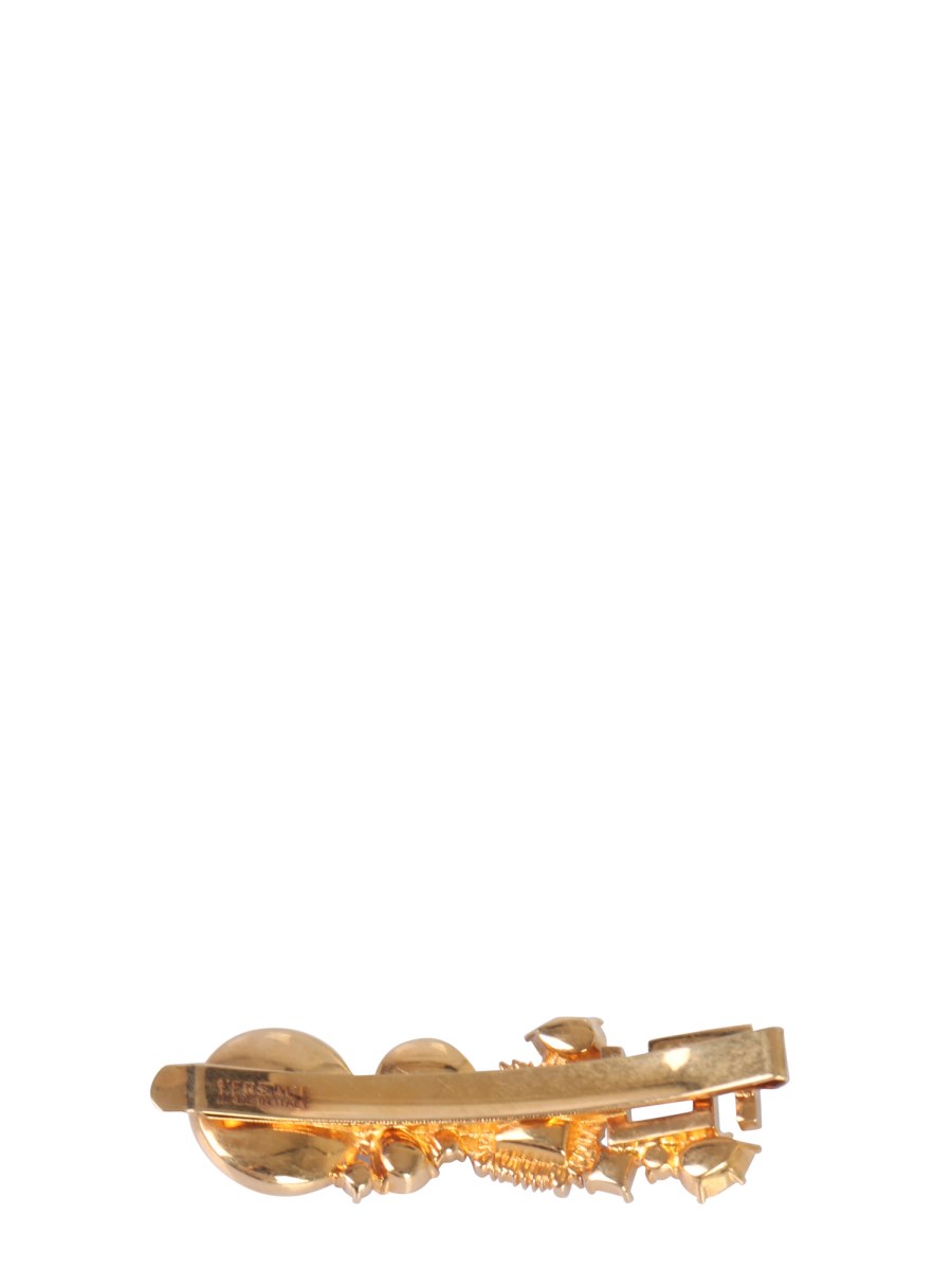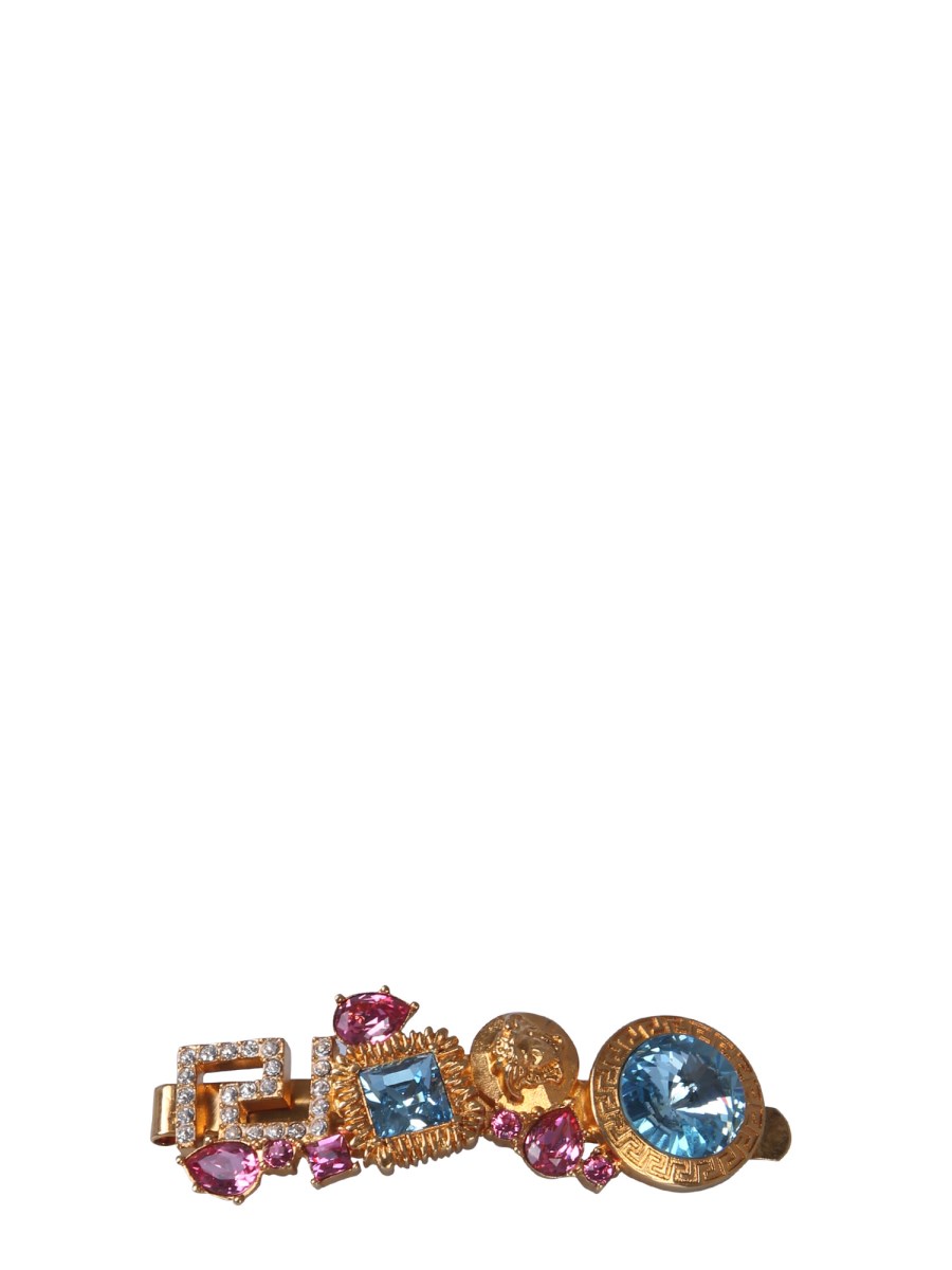 Style your hair beautifully and gather compliments with the crystalhair clip from Versace. This hair accessory is made of 100% metal for strength and durability. It has crystal detailing throughout to enhance its grace. You can wear this hair clip with indo-western or party outfits to enhance its look.