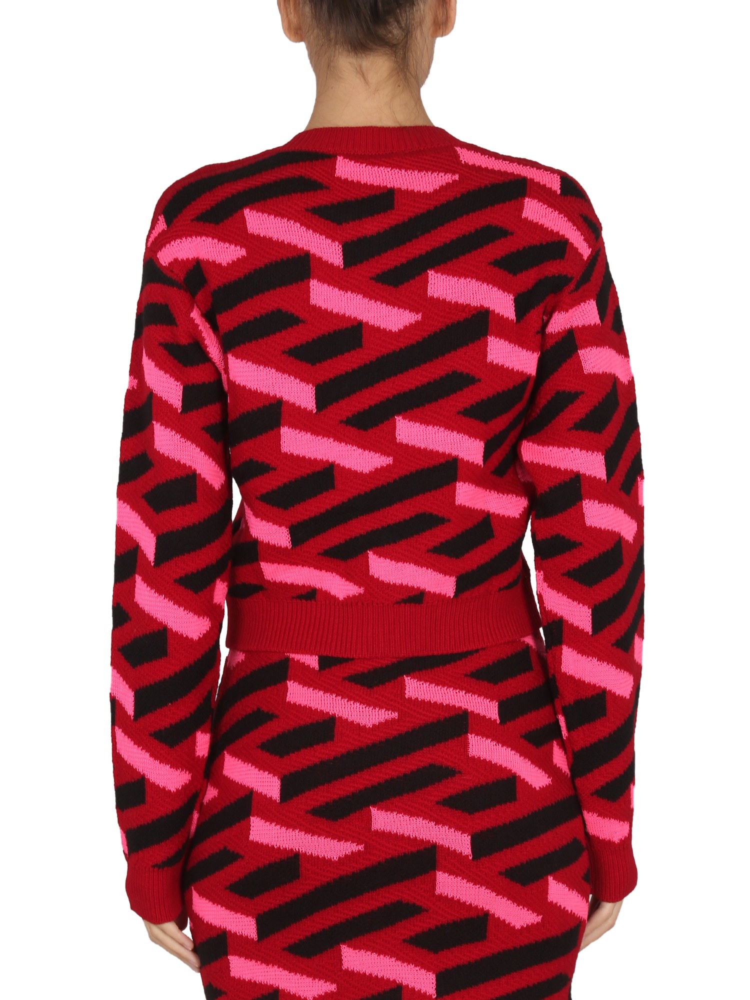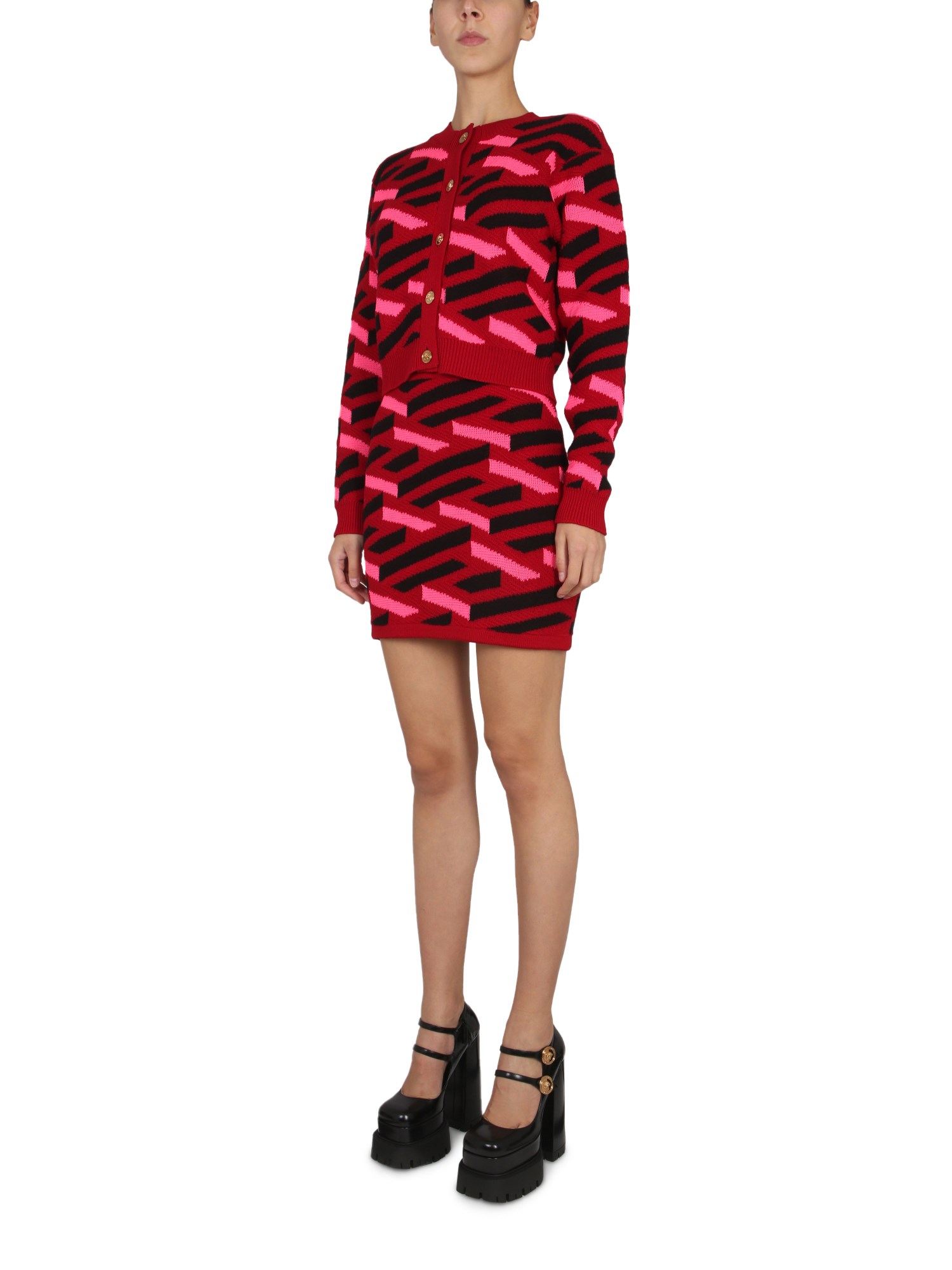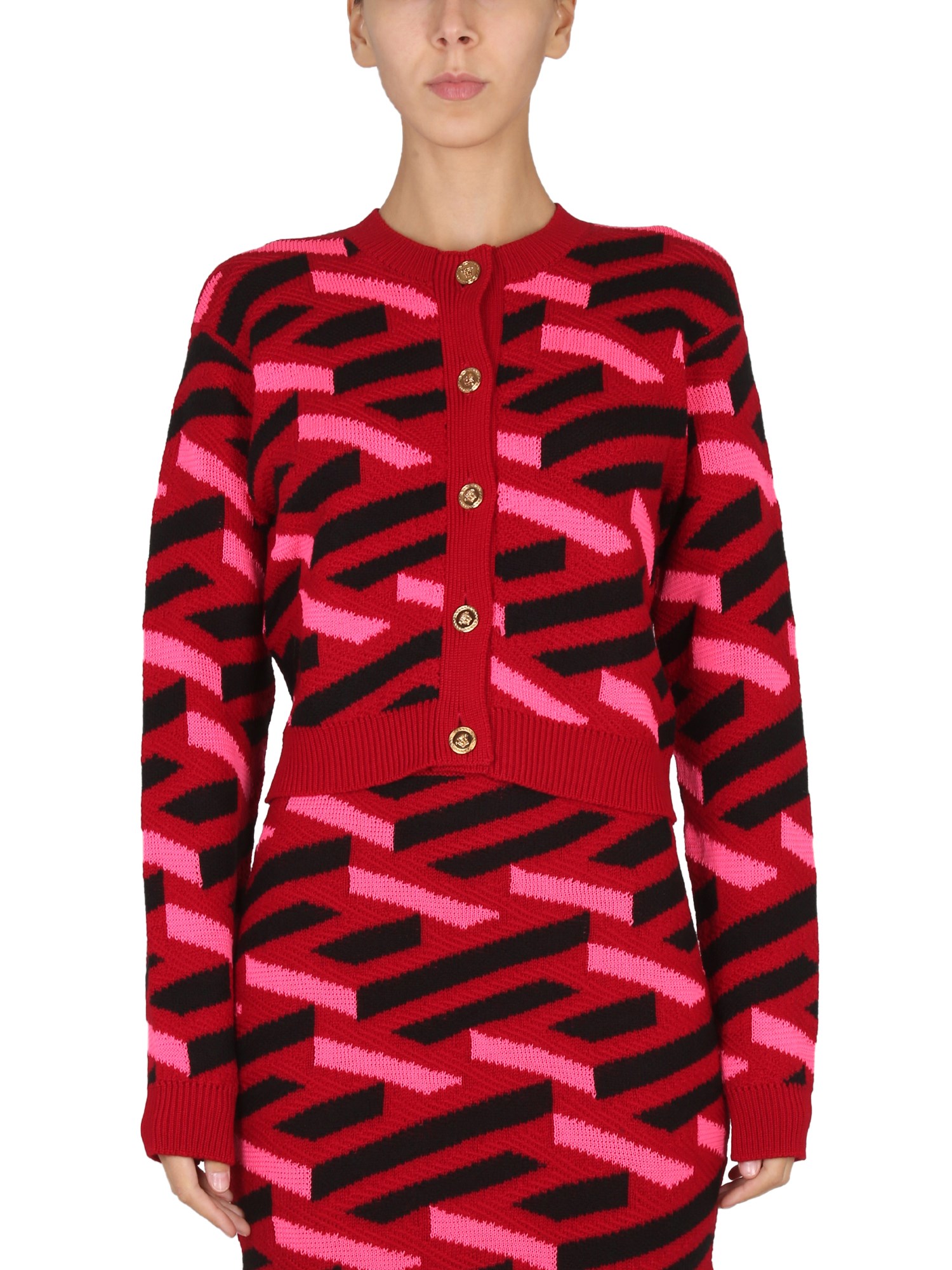 A versatile wool blend cardigan from Versace that is a little bit dressy, a little bit casual, and a lot of fun to wear. Made from 100% virgin wool and woven with a ribbed texture, this cardigan will look great with a collared shirt or a blouse. This cardigan is perfect for anyone who loves the texture and warmth of wool.