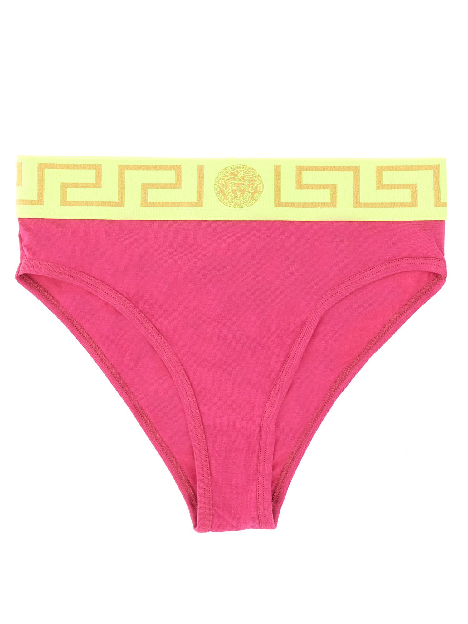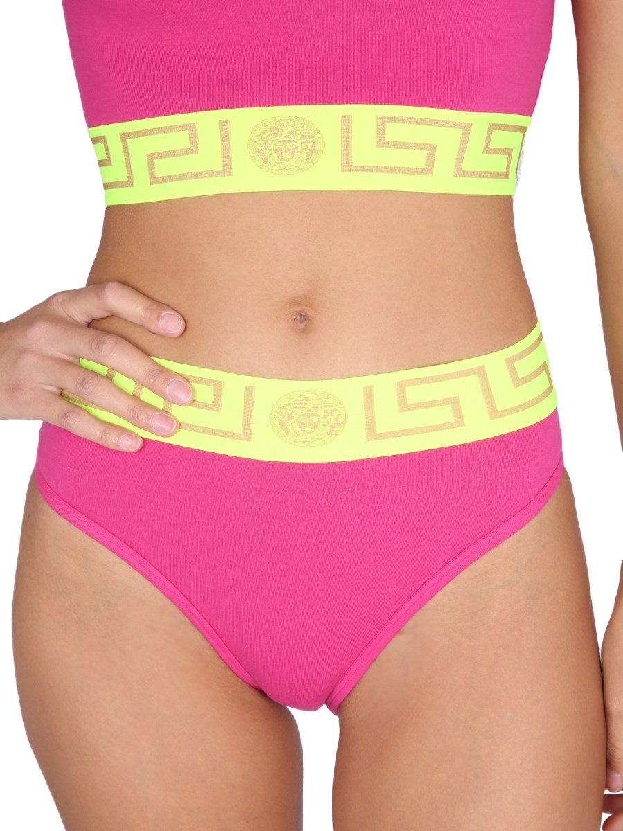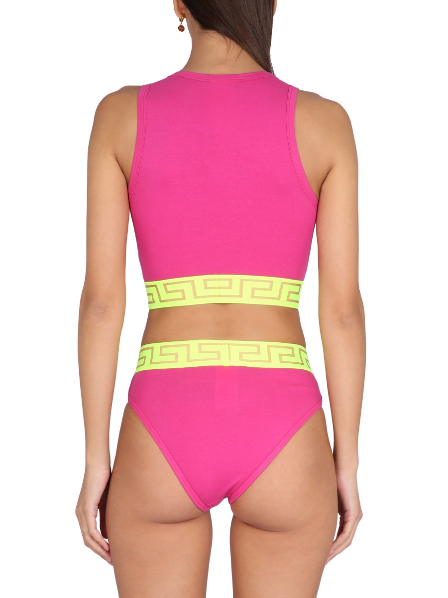 - ELASTIC BAND WITH GREEK PATTERN- 94% COTTON, 6% ELASTANE- THE MODEL IS 180 CM TALL AND WEARS SIZE 1
