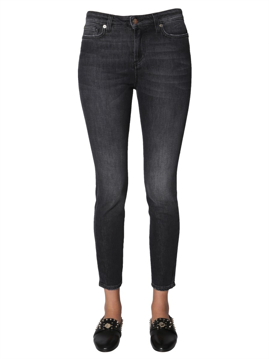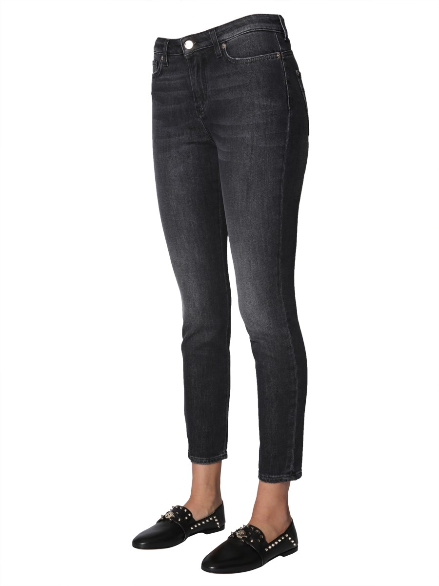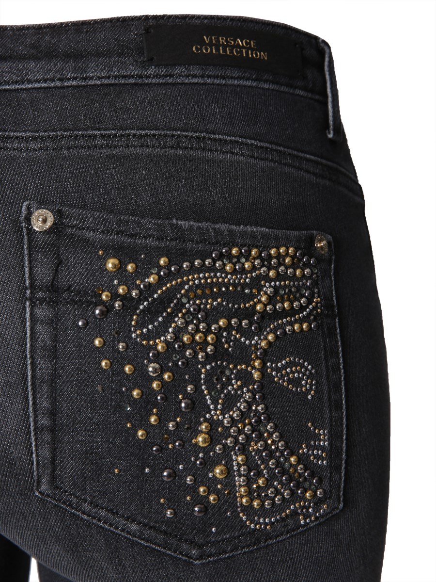 Faded texture dominates the design of this skinny fit jeans by Versace Collection. Made with cotton and elastane, the jeans are comfortable and provides a better fit. The jeans have five pockets. Medusa’s logo sits on one of the back pockets, emphasizing that the creation belongs to Italy’s luxury fashion house, Versace!