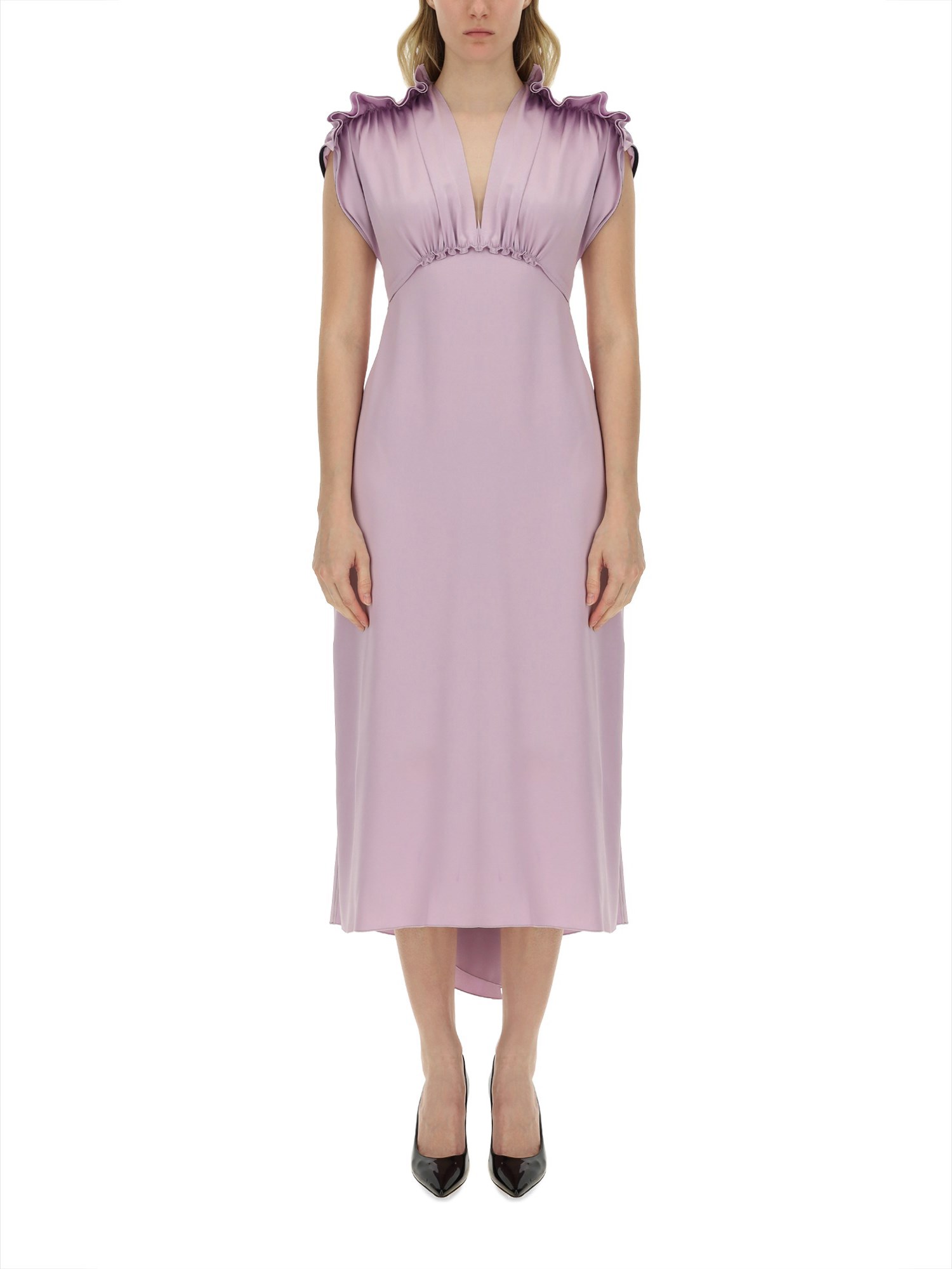 The V-neck dress from Victoria Beckham exemplifies modern elegance, featuring a sophisticated silhouette that flatters the figure. Crafted from high-quality materials, this dress offers both comfort and style, making it suitable for various occasions. The deep V-neckline adds a touch of allure, while the tailored fit ensures a polished appearance. Ideal for both daytime and evening wear, this versatile piece is a must-have addition to any wardrobe.