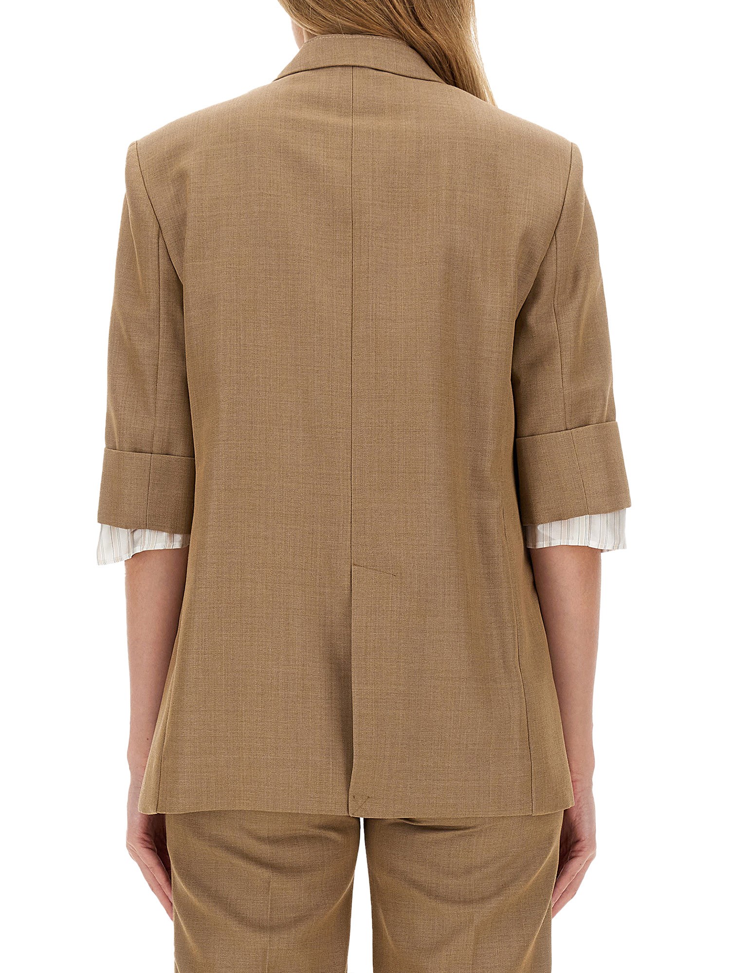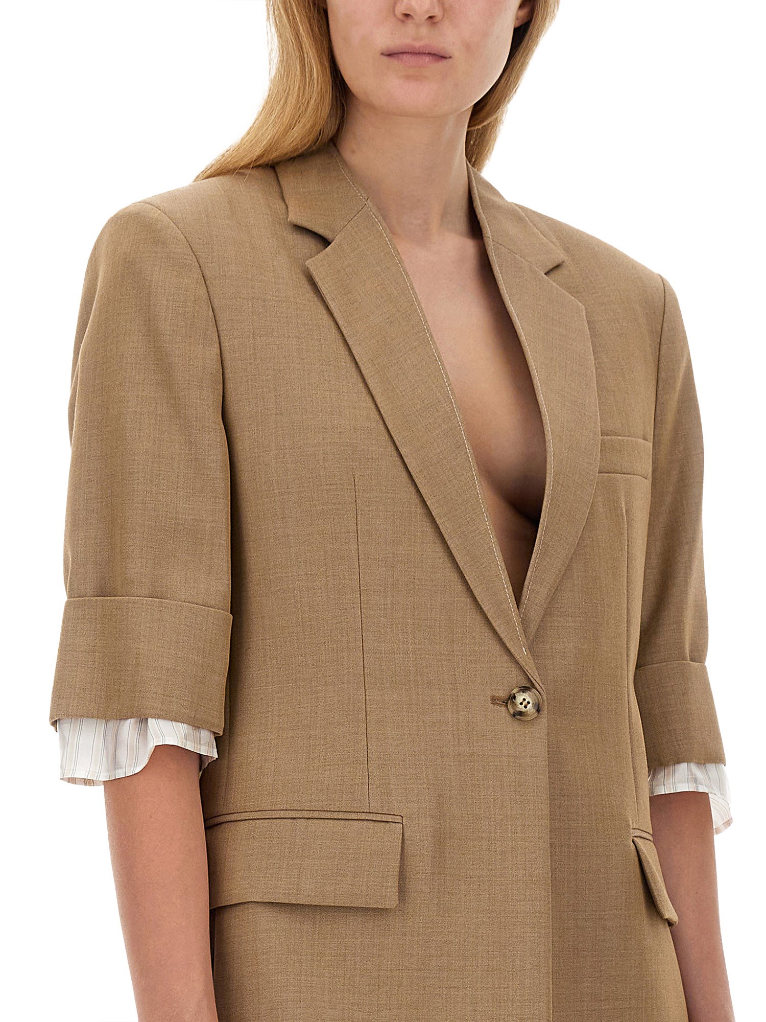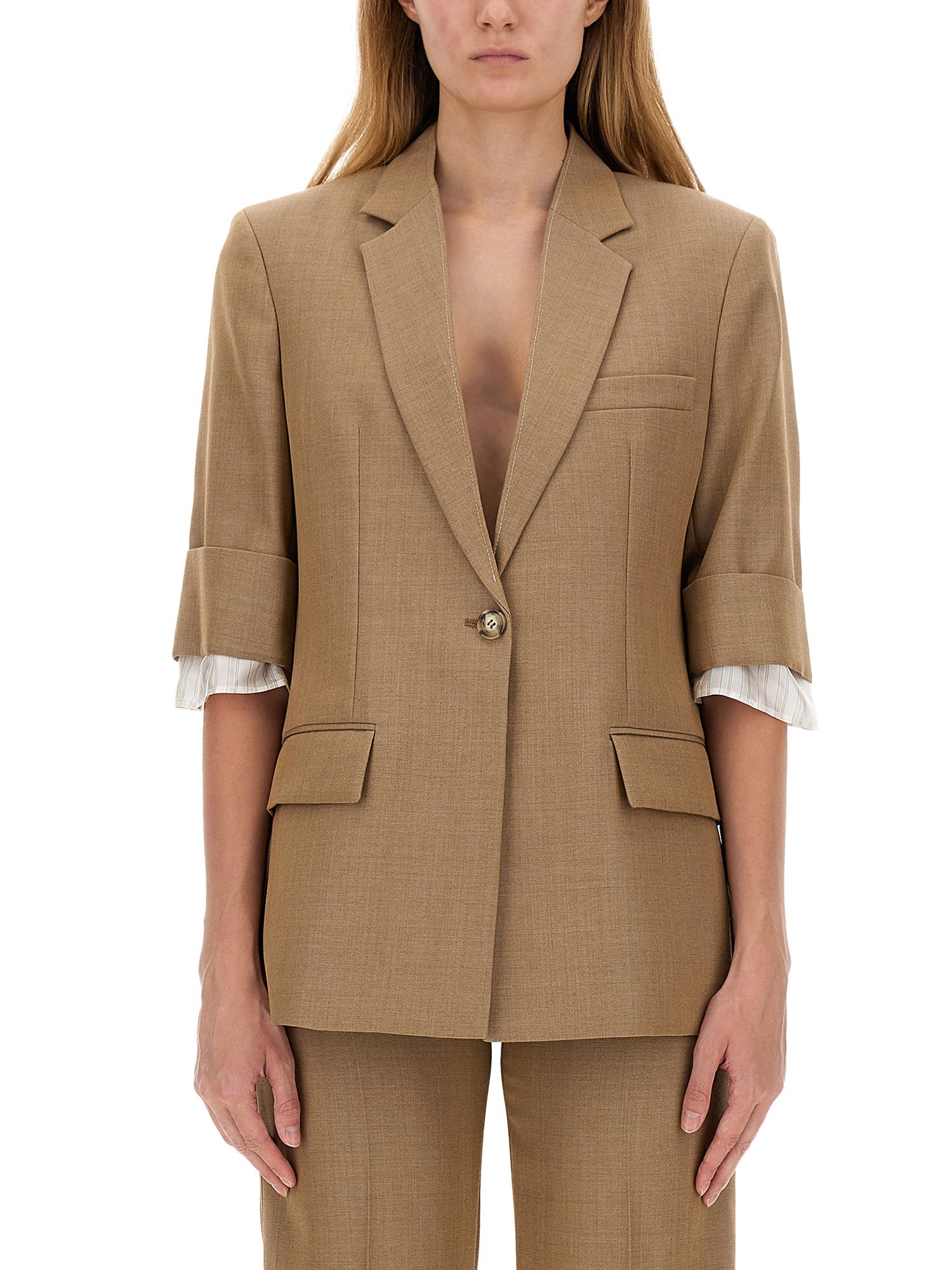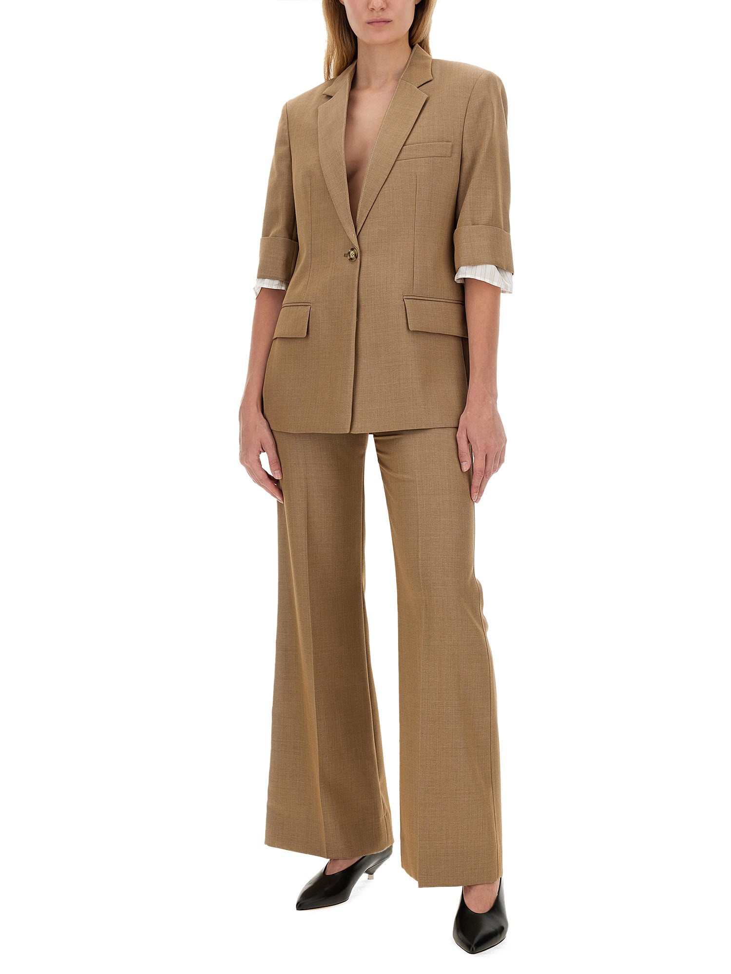 The single-breasted jacket from Victoria Beckham exemplifies modern sophistication and tailored elegance. Crafted from high-quality materials, this jacket features a sleek silhouette that flatters the figure while providing versatility for both professional and casual settings. Its minimalist design is enhanced by subtle detailing, making it a timeless addition to any wardrobe. Ideal for layering, this piece effortlessly combines style and comfort, ensuring a polished look for any occasion.