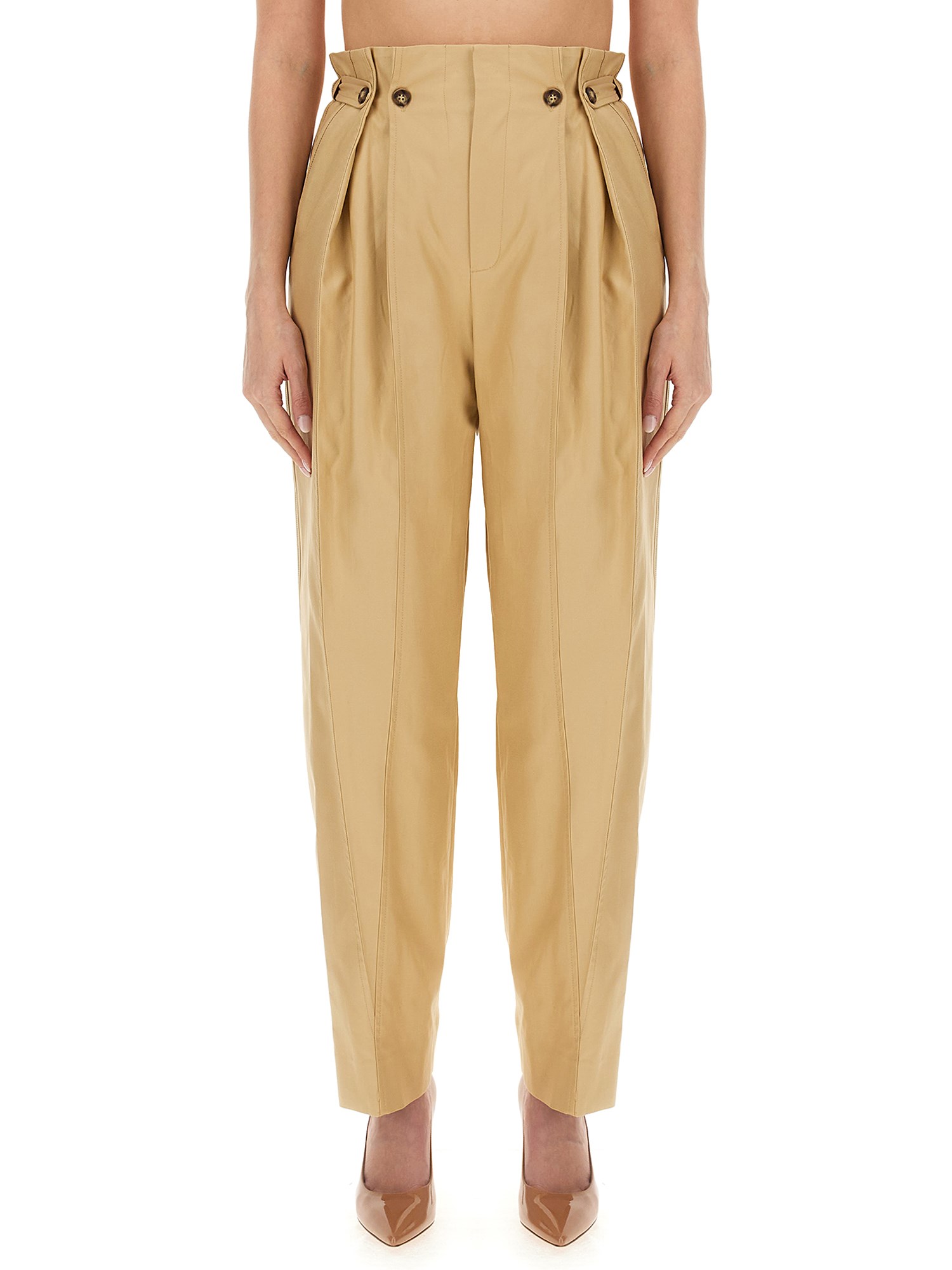 Elevate your everyday style with the Victoria Beckham Gathered Waist Cotton Pants. Made from soft and lightweight cotton fabric, these pants provide the utmost comfort without compromising style. The gathered waist detailing adds a flattering and feminine touch, while the versatile design allows for effortless pairing with any top or blouse. These pants blend comfort and sophistication, perfect for a day at the office or a weekend brunch, making them an essential addition to your wardrobe.
