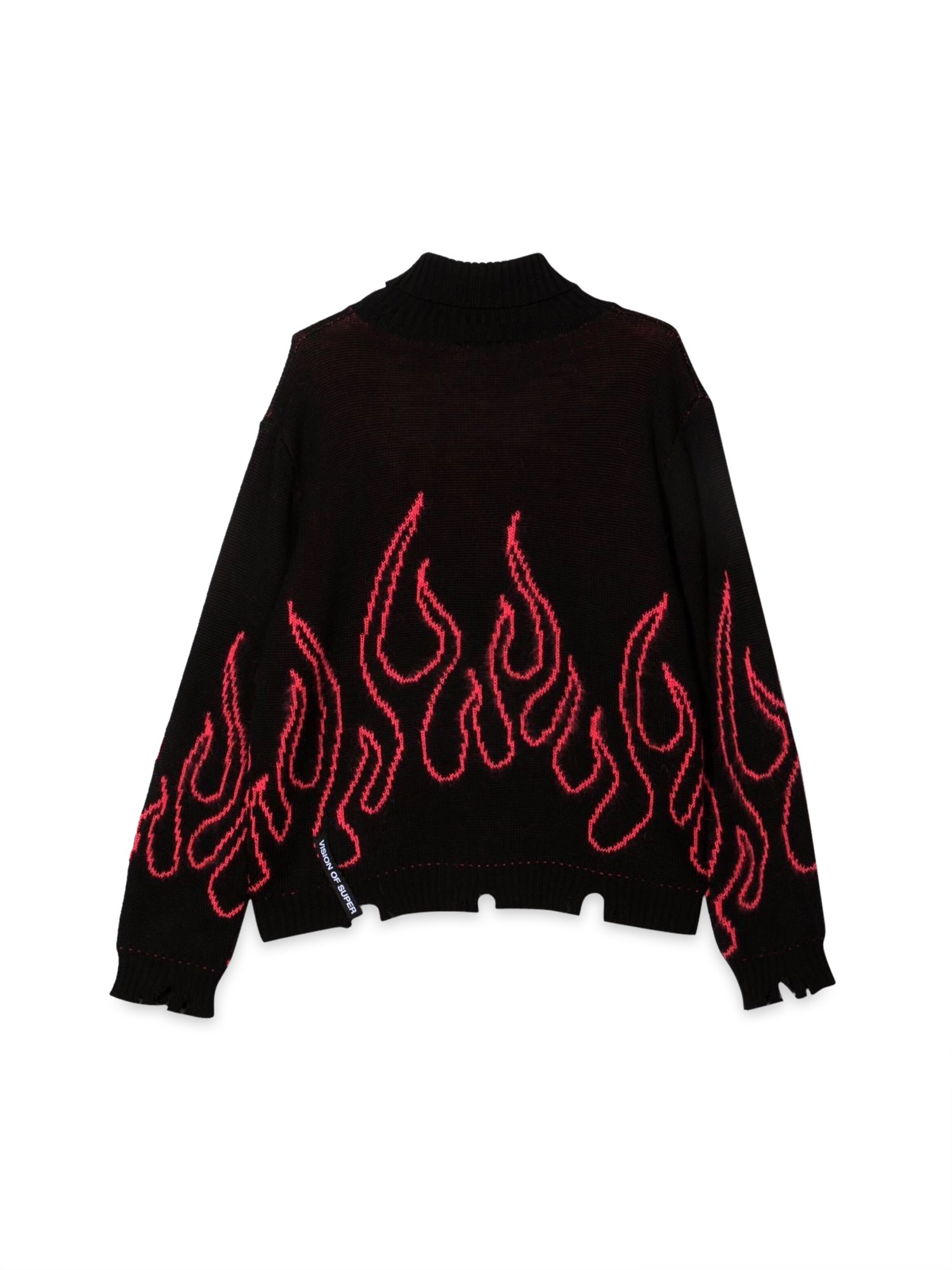 BLACK JUMPER HIGH NECK WITH PINK FLAMES