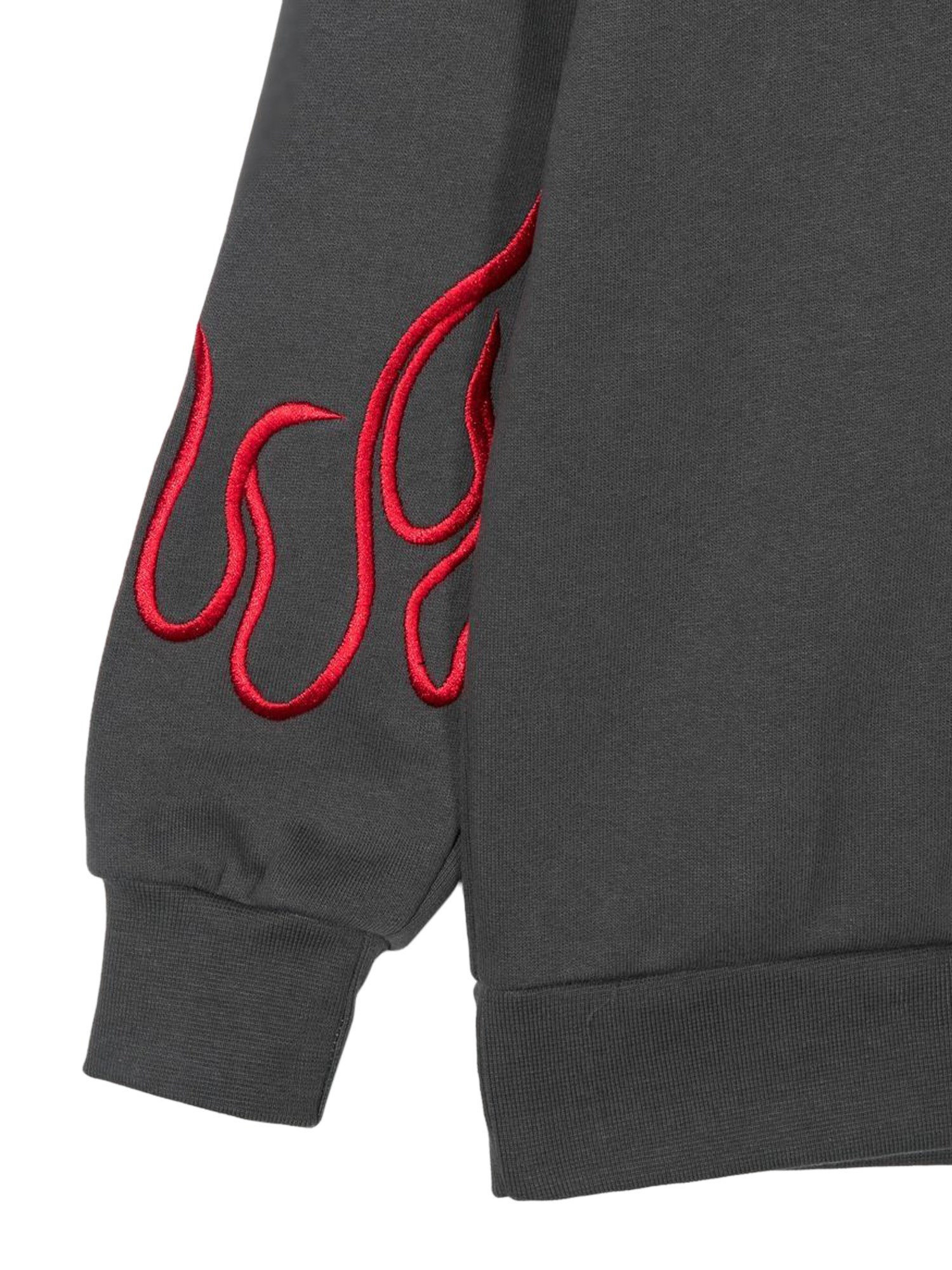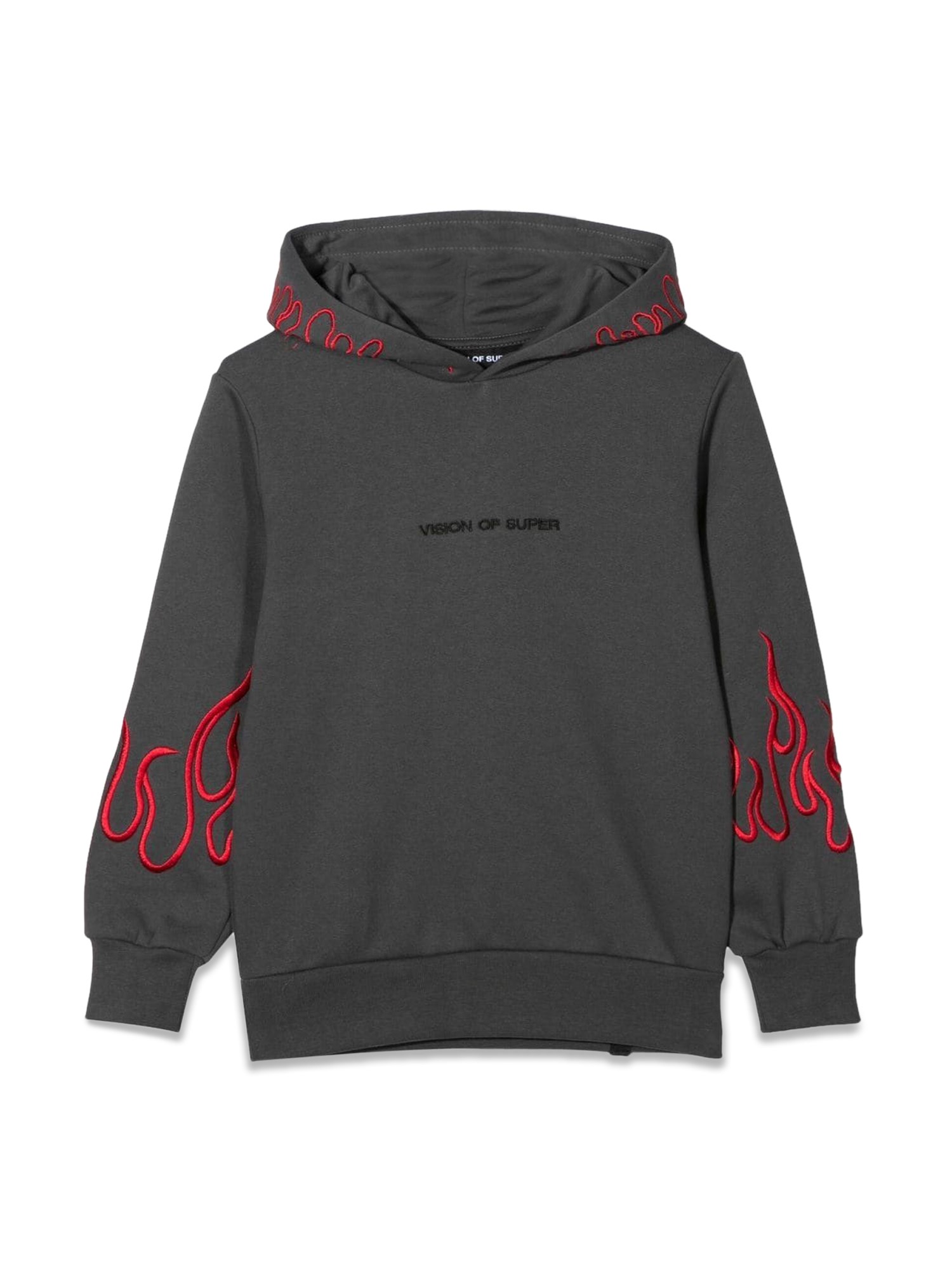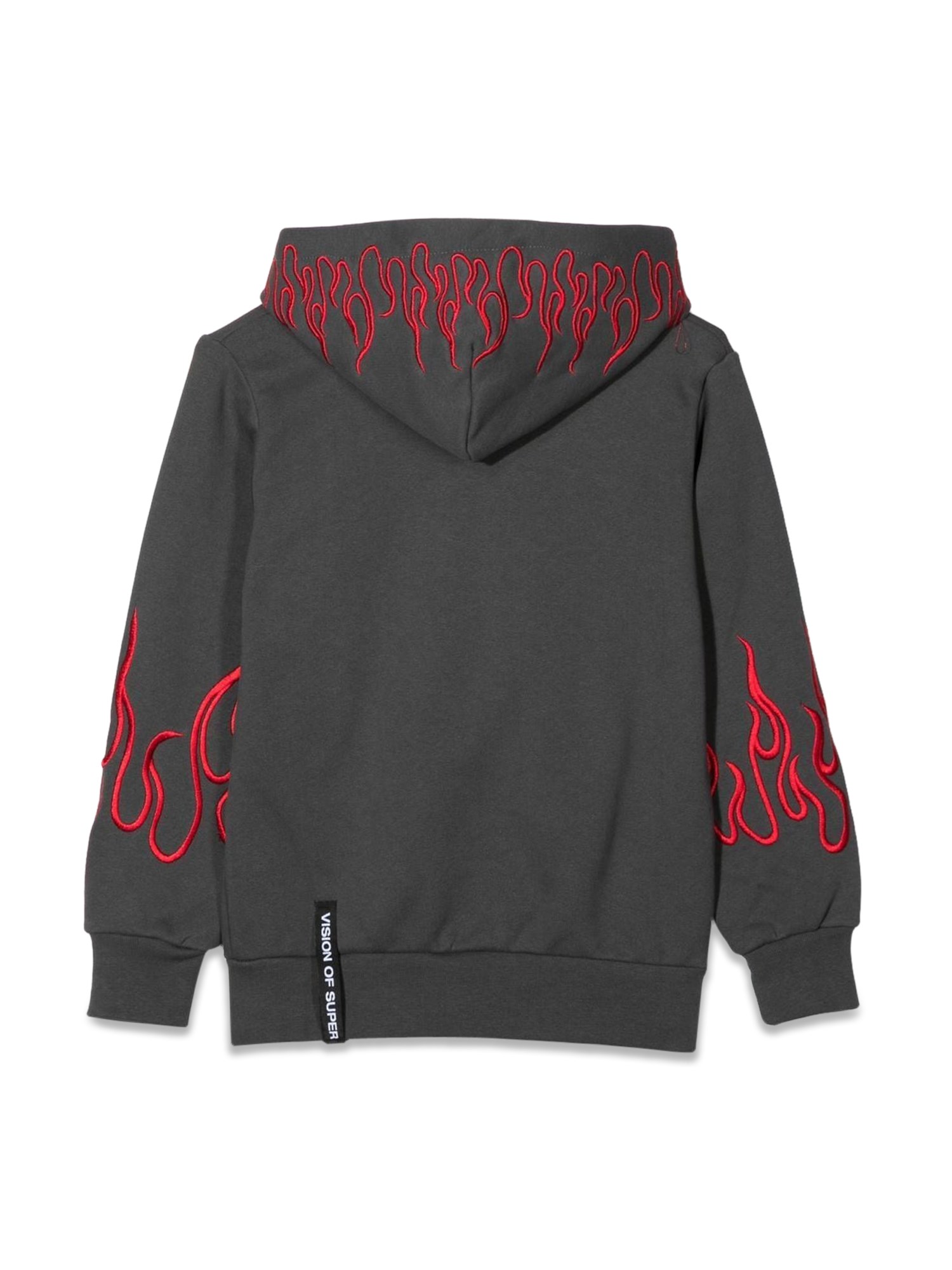 The embroidered red flames cotton sweatshirt from Vision Of Super is a comfortable, yet stylish, hoodie. The sweatshirt is made of soft cotton and has embroidered red flames along the sleeves and down the hood. Made of 100% cotton, this lightweight sweatshirt will keep you warm and comfortable all season long.