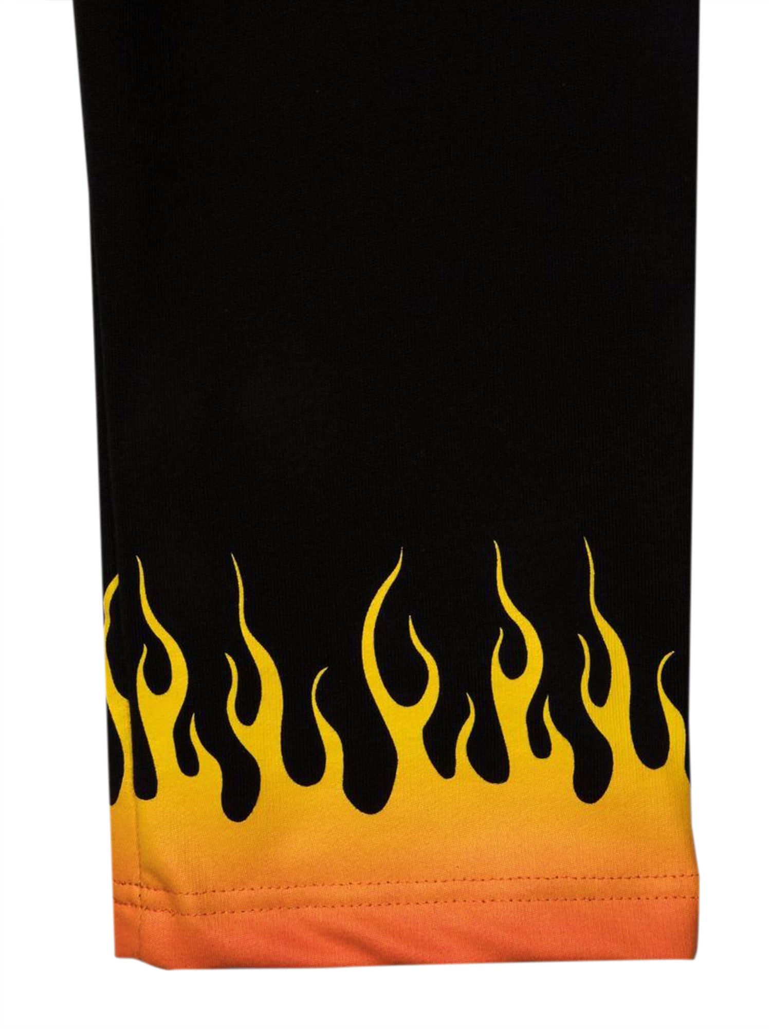 BLACK PANTS WITH RED EMBROIDERED FLAMES