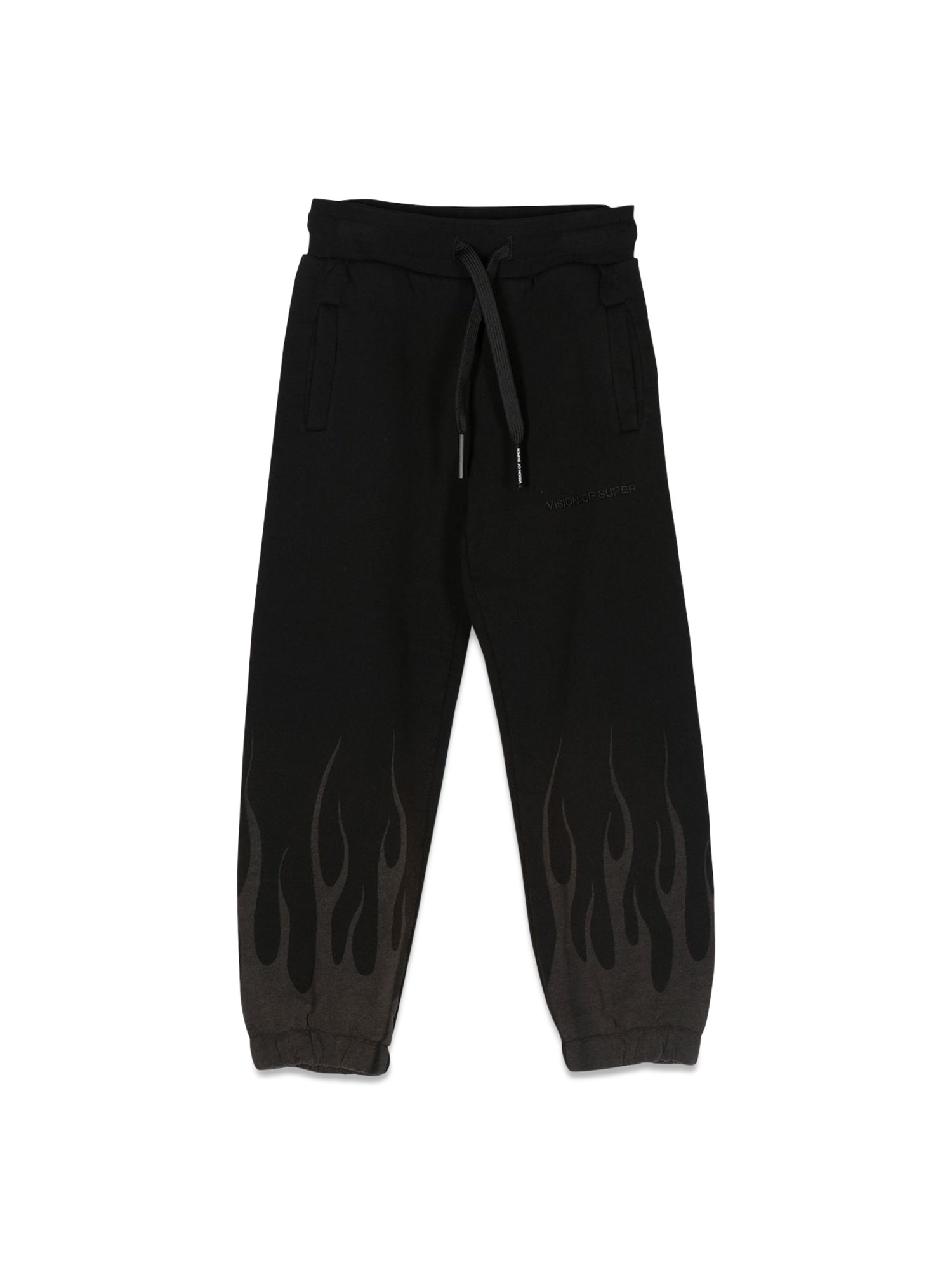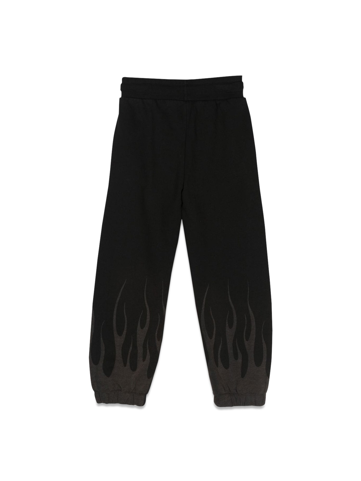 BLACK PANTS WITH RED EMBROIDERED FLAMES