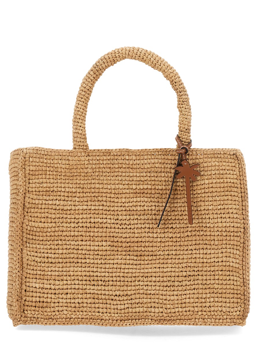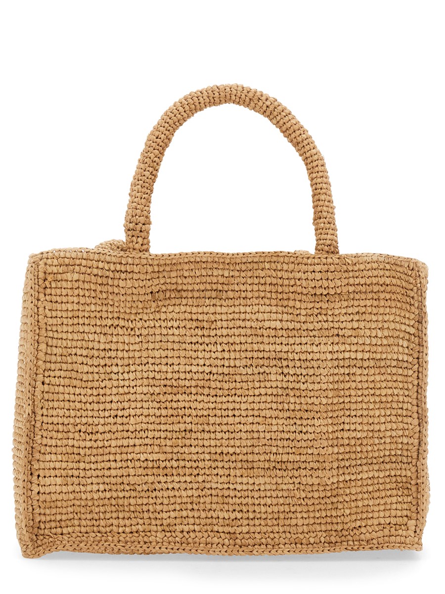 - DOUBLE HANDLES.- REMOVABLE LEATHER LOGO TAG- DIMENSIONS: H 20 CM X W 20 CM X D 10 CM- 100% RAFFIA
