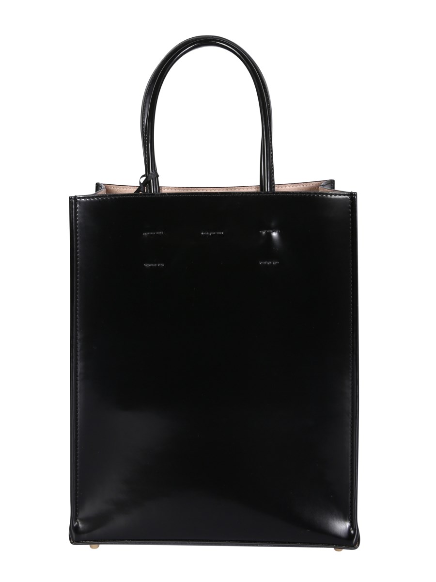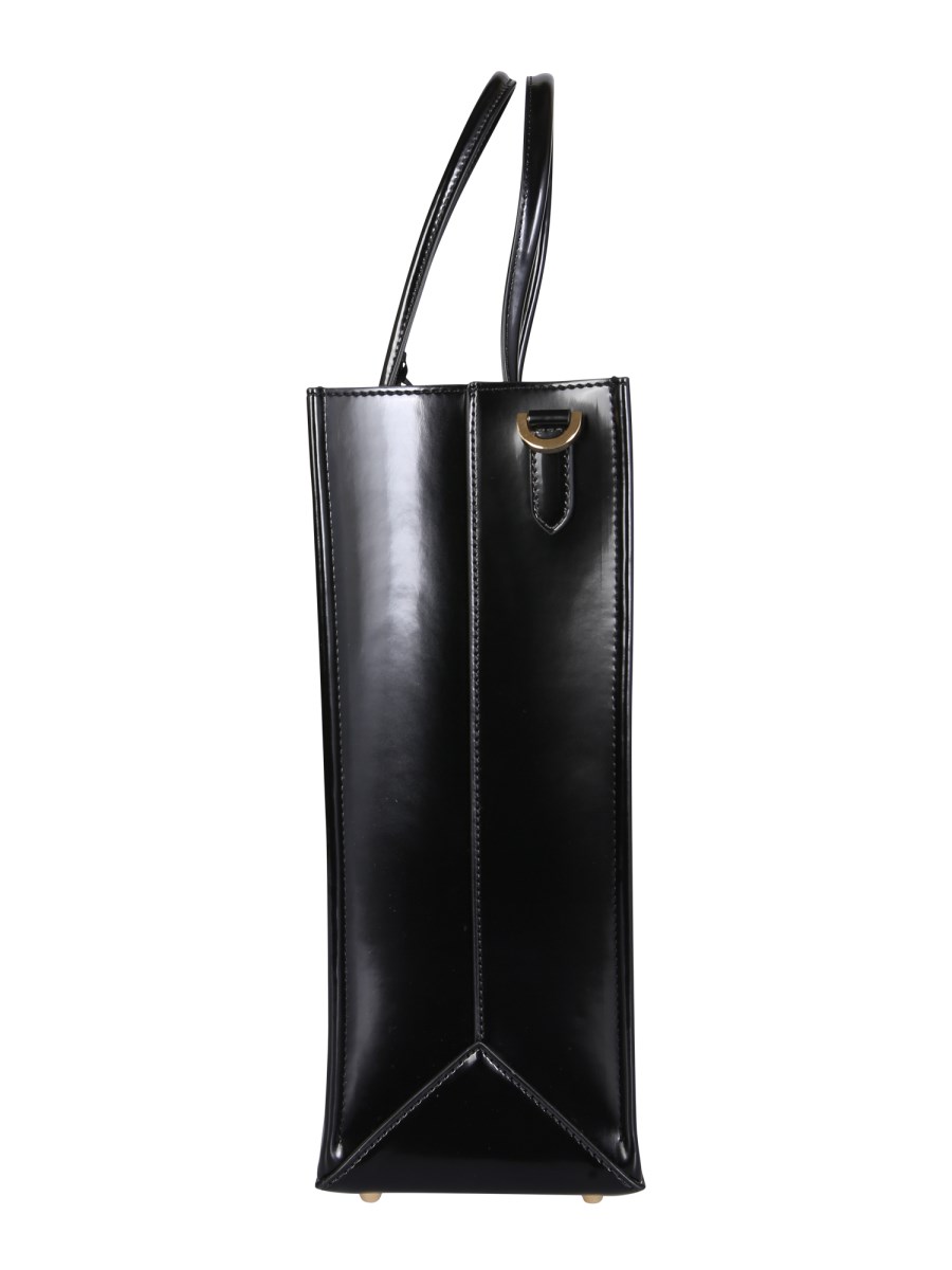 This small leather shopping bag by N°21 is a must-have for any fashionista on the go. The bag is made of 100% leather, the shoulder strap is made of 100% polyester, and the metallic components of 100% brass. The magnetic closure and double handles make it easy to use. The logo is featured on the adjustable tapes shoulder strap and the bag measures 29 cm x 23 cm x 11 cm.
