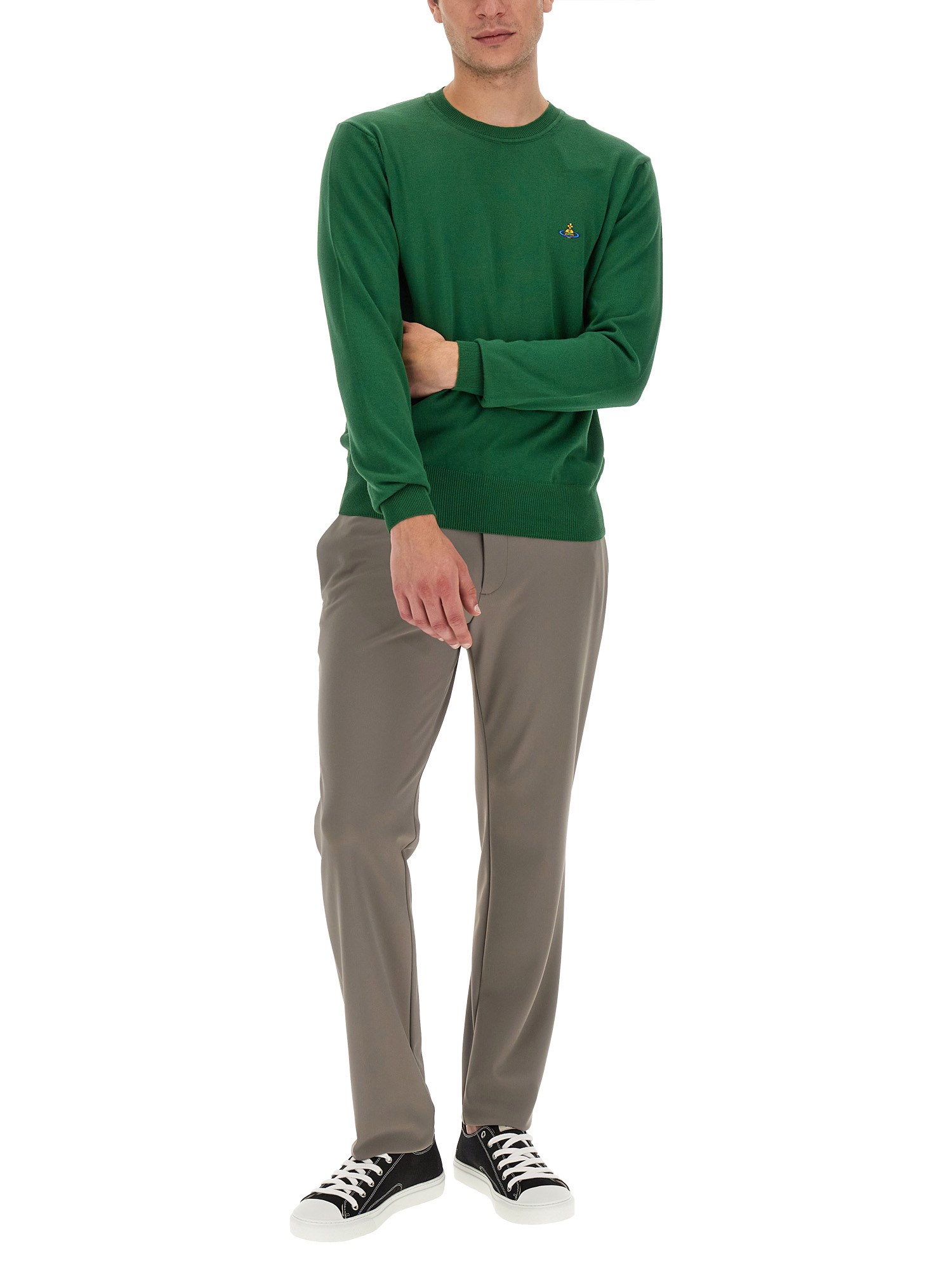 This straightforward and timeless crew neck sweater features organic cotton construction. The sweater has long sleeves that are ribbed and cuffed, and it contains an embroidered orb in a variety of colors on the heart.