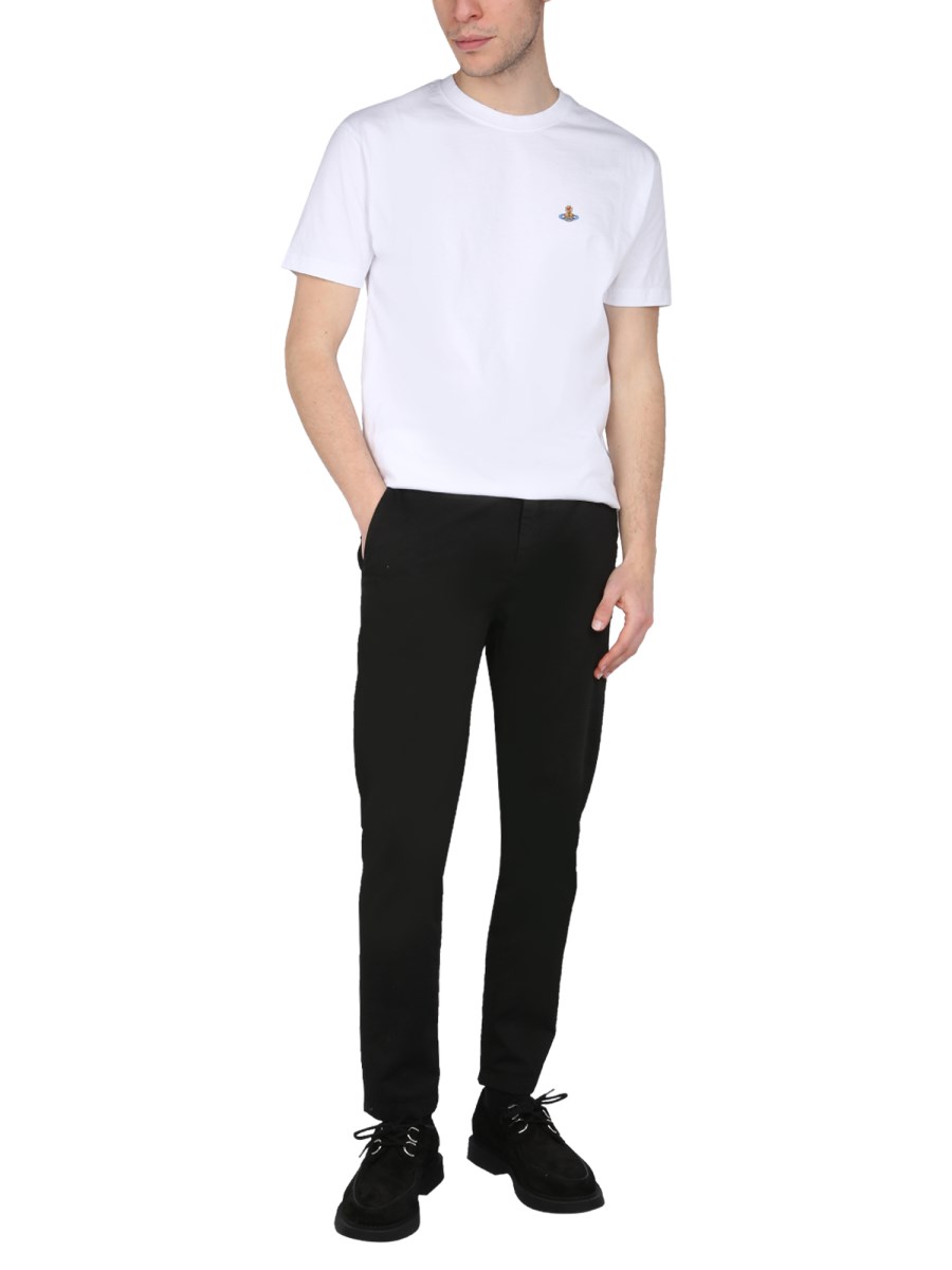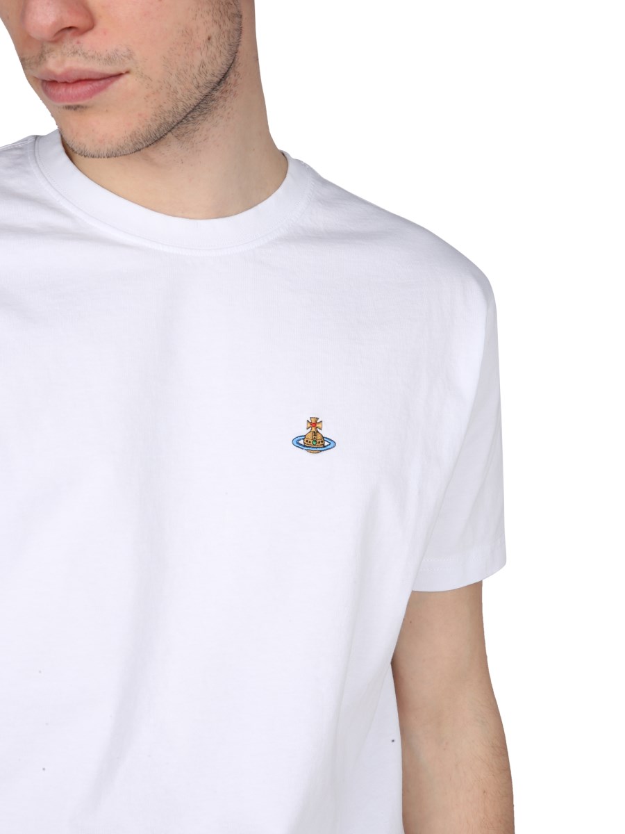 This white T-shirt from Vivienne Westwood is perfect for those days when you need a versatile top that you can wear for work, but also look stylish at the same time. With a unique crew neck and logo embossing, this white T-shirt will be the perfect staple to any closet.