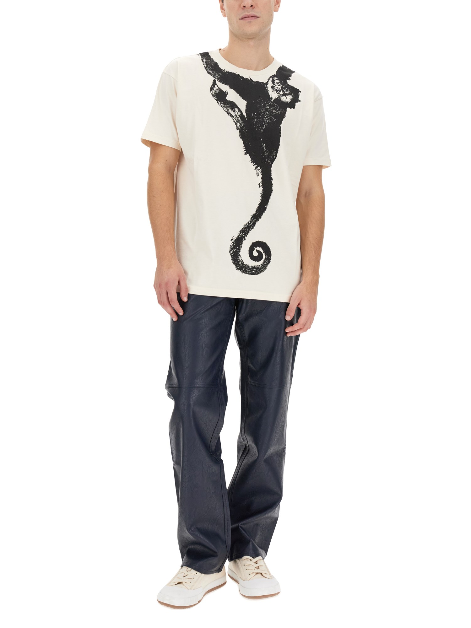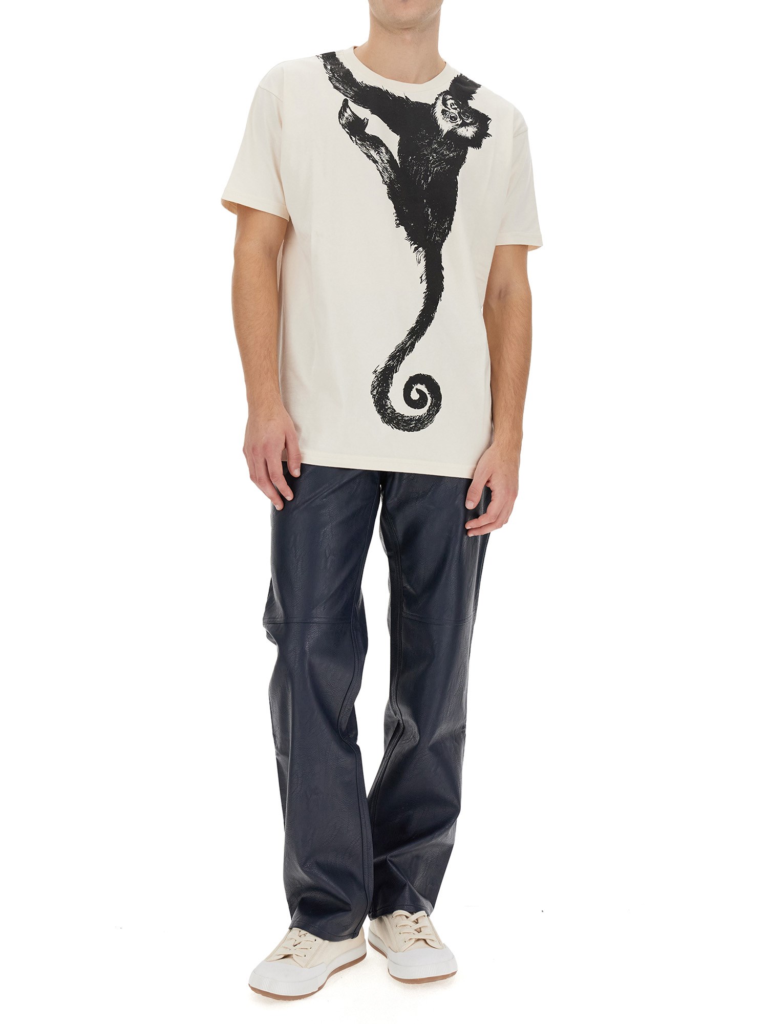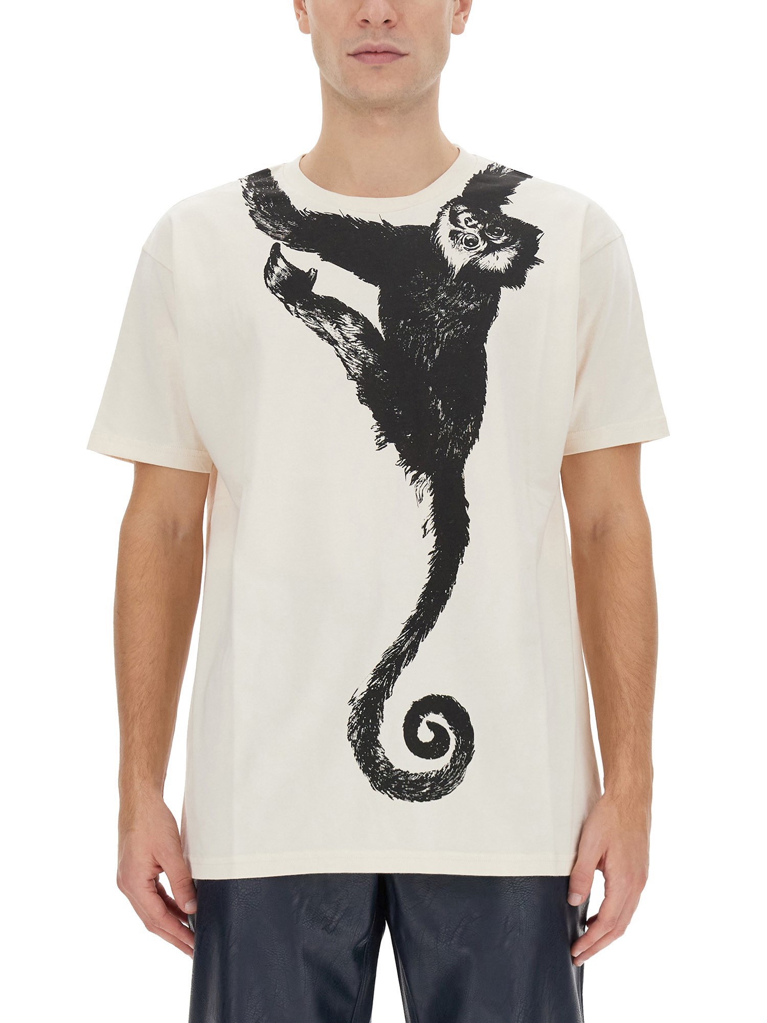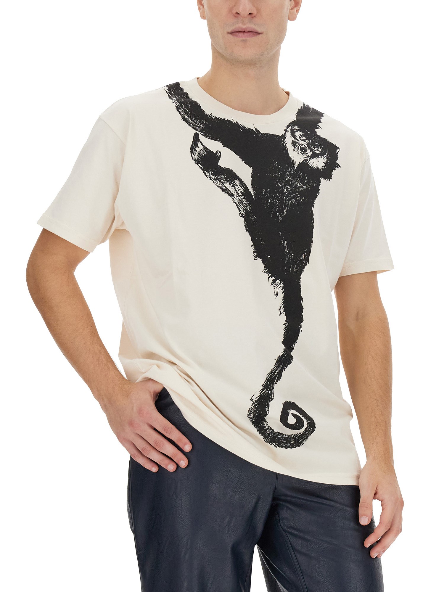 The cozy and playful COTTON MONKEY T-shirt from Vivienne Westwood is an absolute wardrobe staple. Crafted with care from premium quality cotton, this tee is exceptionally soft and comfortable. The iconic Vivienne Westwood monkey design, adorning the front, adds a touch of whimsy to your outfit. Perfect for a casual day out or lounging at home, this lightweight tee effortlessly combines fashion and comfort in one delightful package.